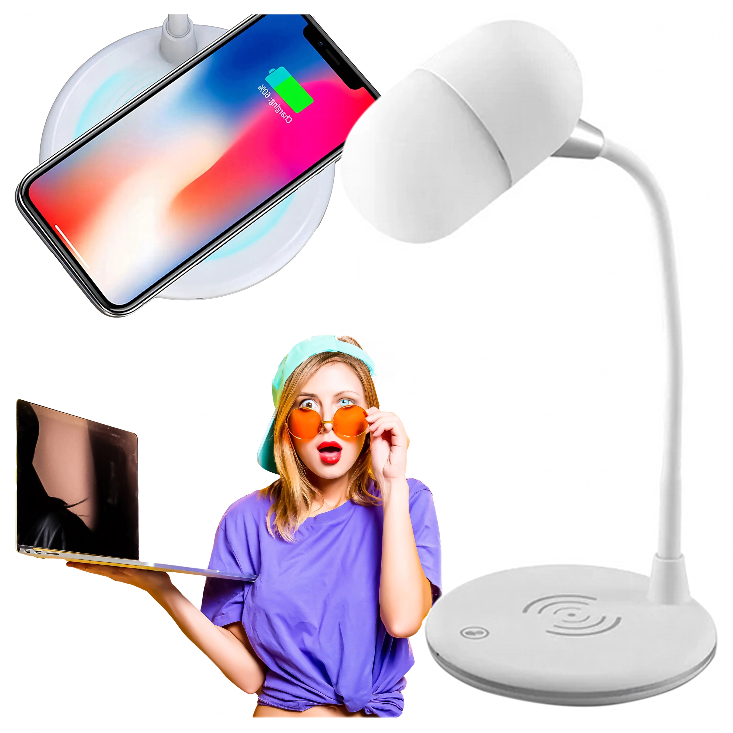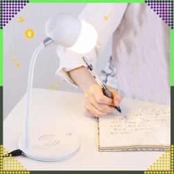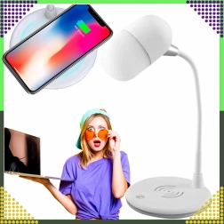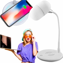 Multifunkčná stolová LED lampička 3 v 1 kombinuje bezdrôtové nabíjanie 5 W, 3 úrovne jasu a Bluetooth reproduktor. Vďaka otočnému ramenu 360° ľahko nasmerujete svetlo tam, kde ho potrebujete. Ideálna na štúdium, prácu aj ako nočná lampička. Farba: biela.