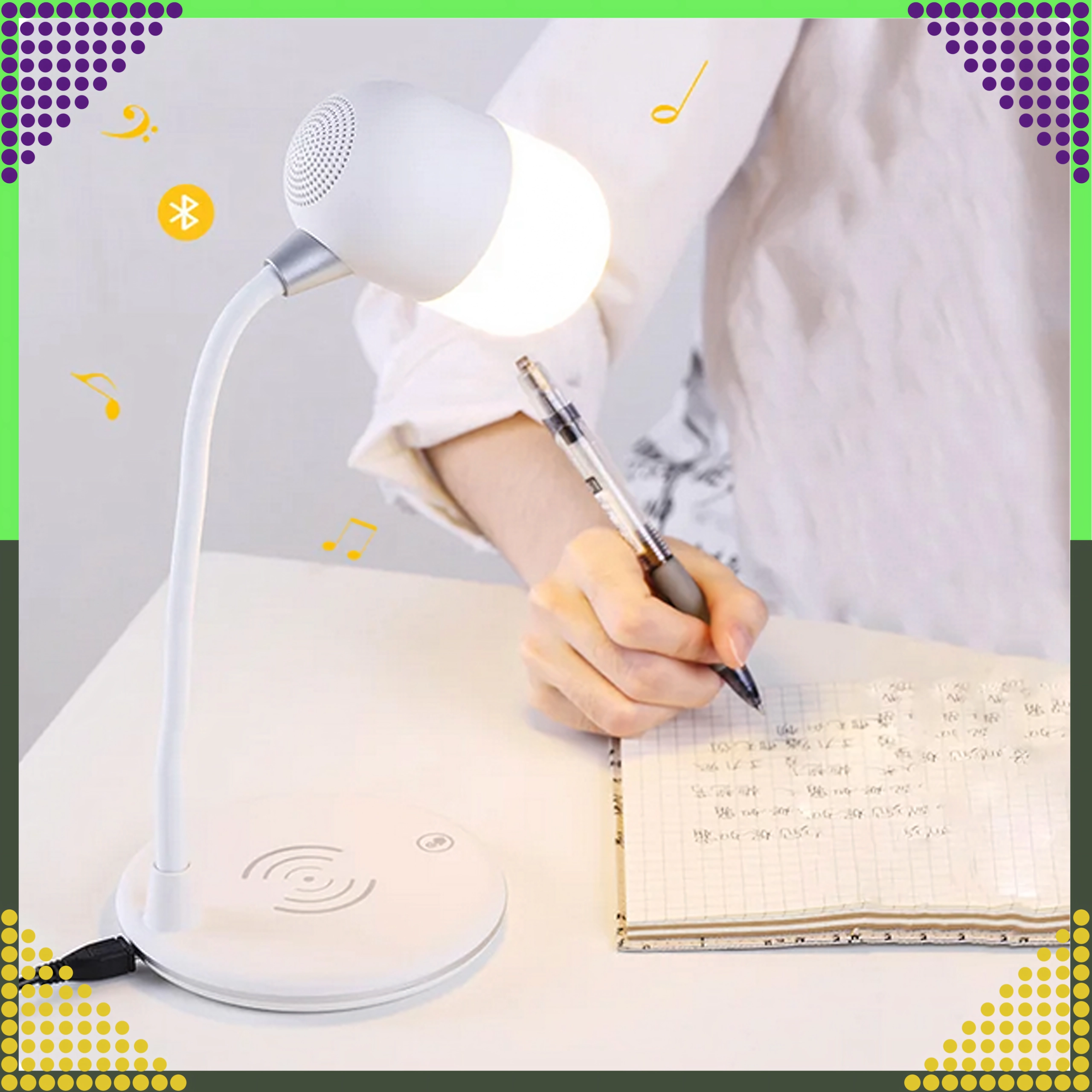 Otočné rameno s rozsahom 360° poskytuje maximálnu flexibilitu – rýchlo nastavíte optimálny uhol osvetlenia bez tieňov. Elegantný, univerzálny dizajn v bielej farbe skvele zapadne do moderných interiérov a zároveň pomôže udržať poriadok na pracovnom stole vďaka funkcii lampičky, nabíjačky a reproduktora v jednom.