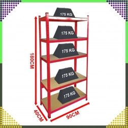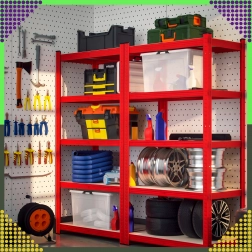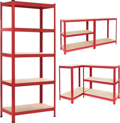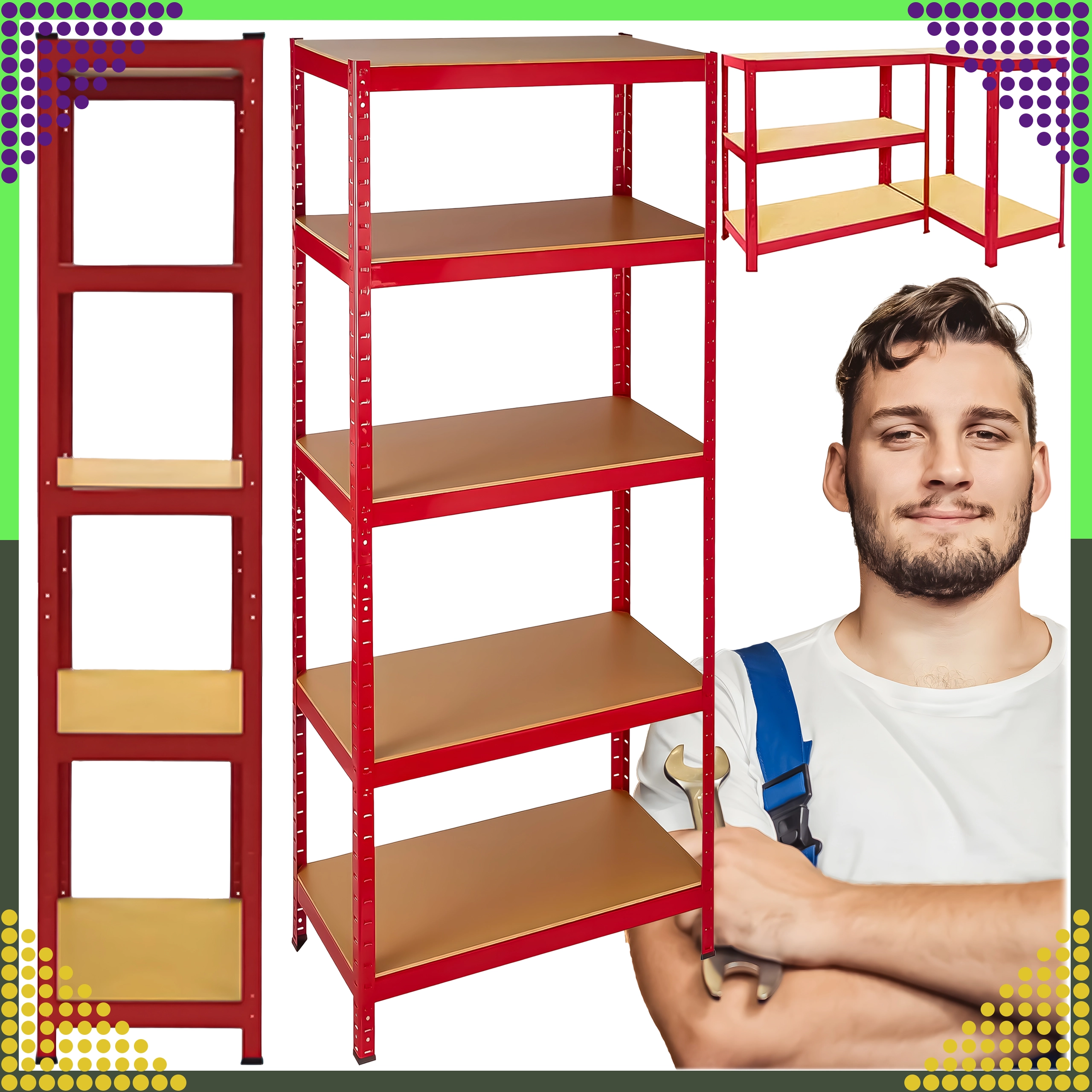 Stabilný oceľový regál v elegantnej červenej farbe je ideálny do garáží, pivníc, dielní, skladov aj domácich archívov. Vďaka nastaviteľným policiam ľahko prispôsobíte výšku úložných úrovní vašim potrebám a efektívne využijete vertikálny priestor.