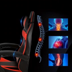 Vysoké operadlo, vankúš pod hlavu a bedrová opierka udržiavajú správne držanie tela, znižujú únavu a zlepšujú komfort pri dlhom sedení.
