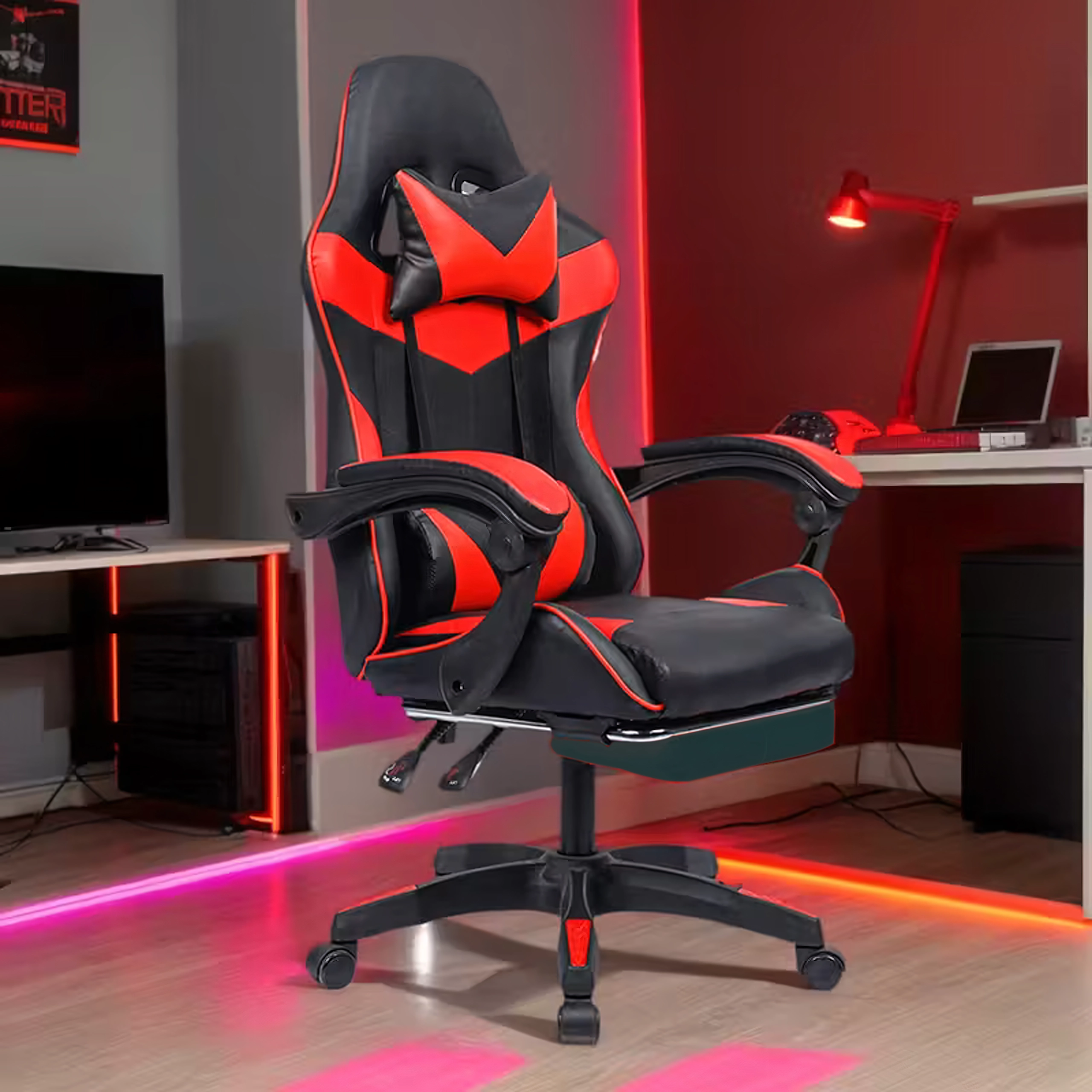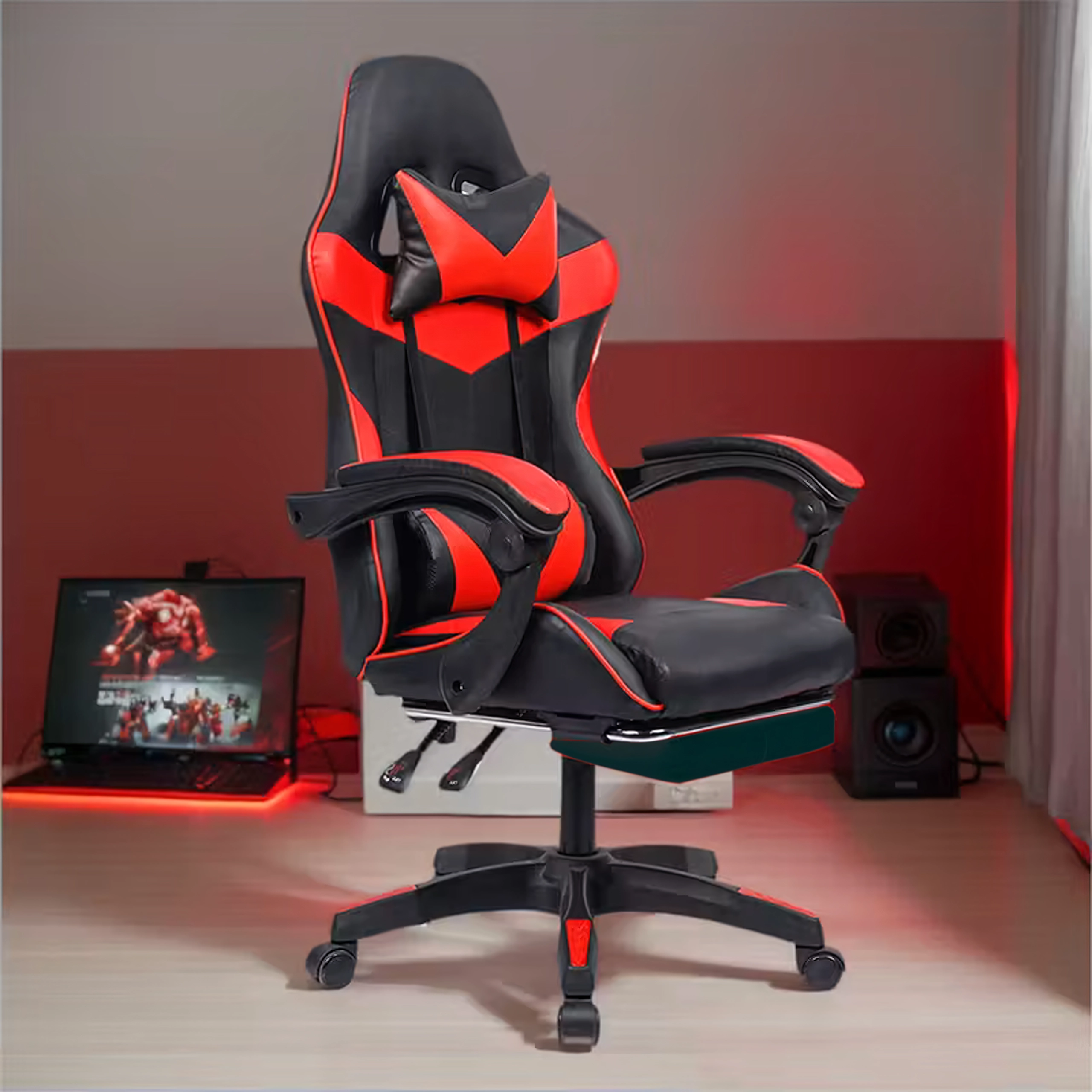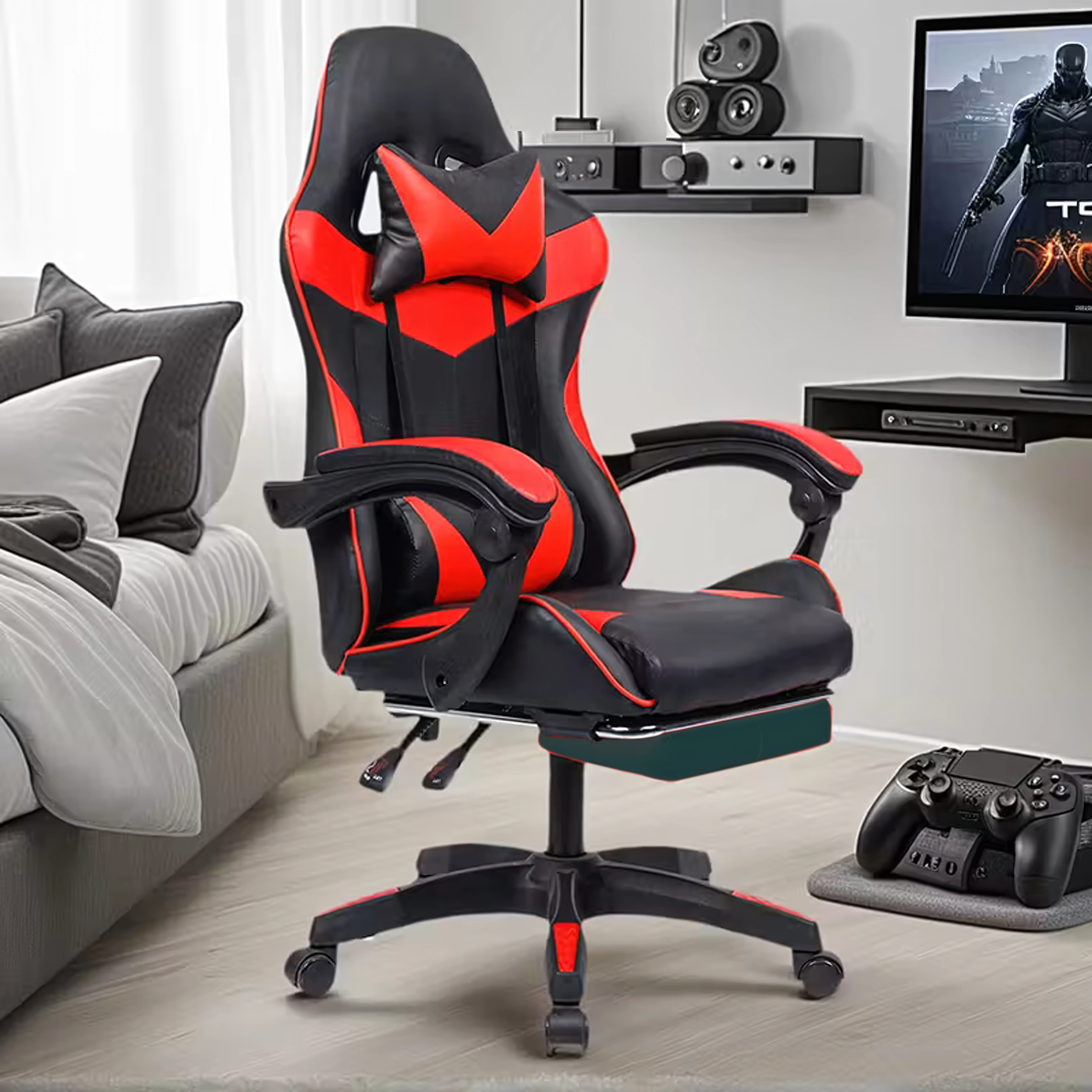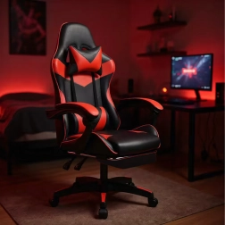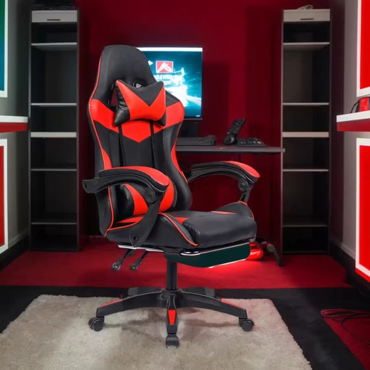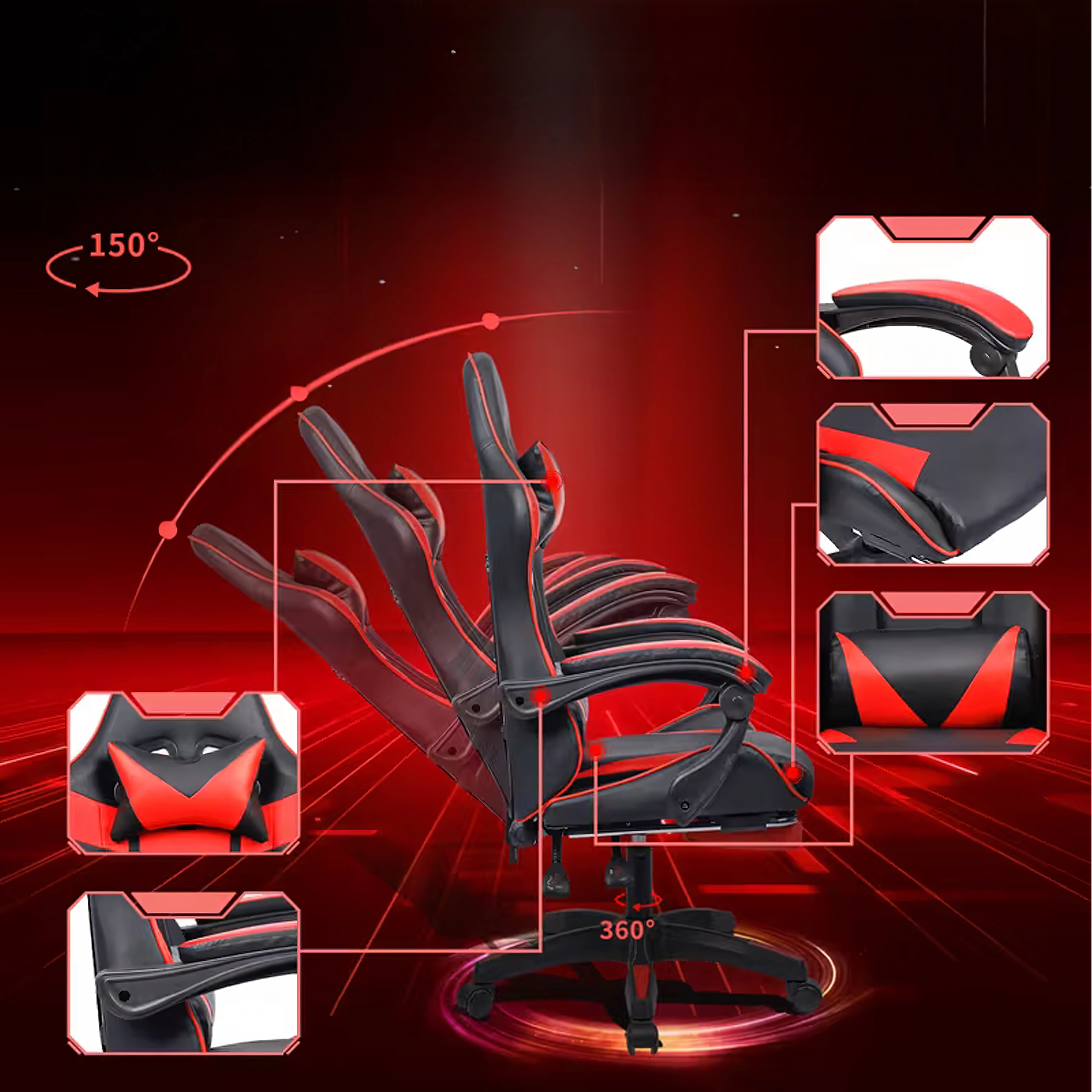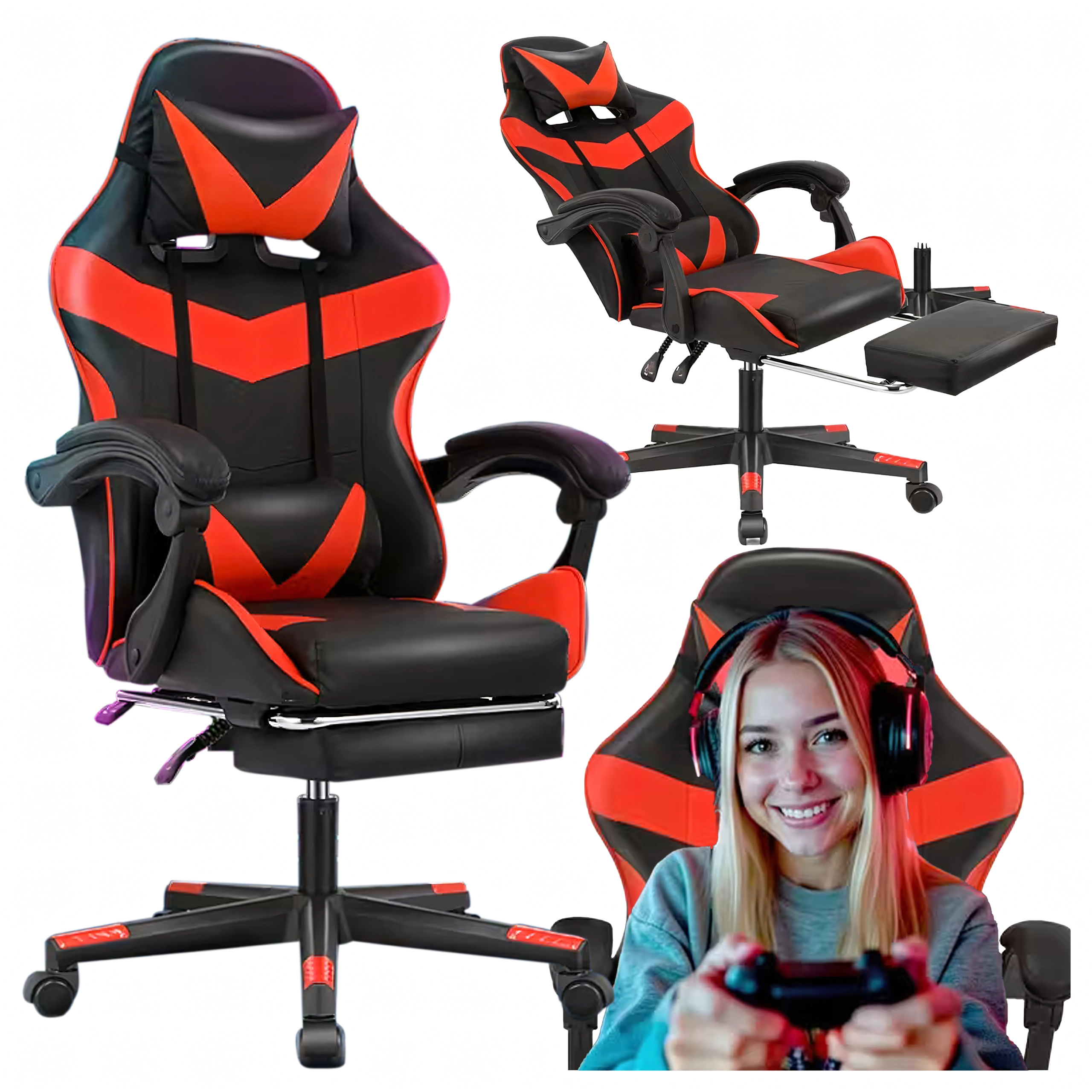 Herné kreslo s podnožkou je navrhnuté pre stabilitu, oporu a príjemné sedenie počas dlhých hodín pri počítači. Vysoké operadlo s opierkou hlavy a bedrovým vankúšom pomáha uľaviť chrbtu, zatiaľ čo plynulé naklápanie operadla a výsuvná podnožka umožňujú rýchlo prejsť z pracovného režimu do relaxu.
