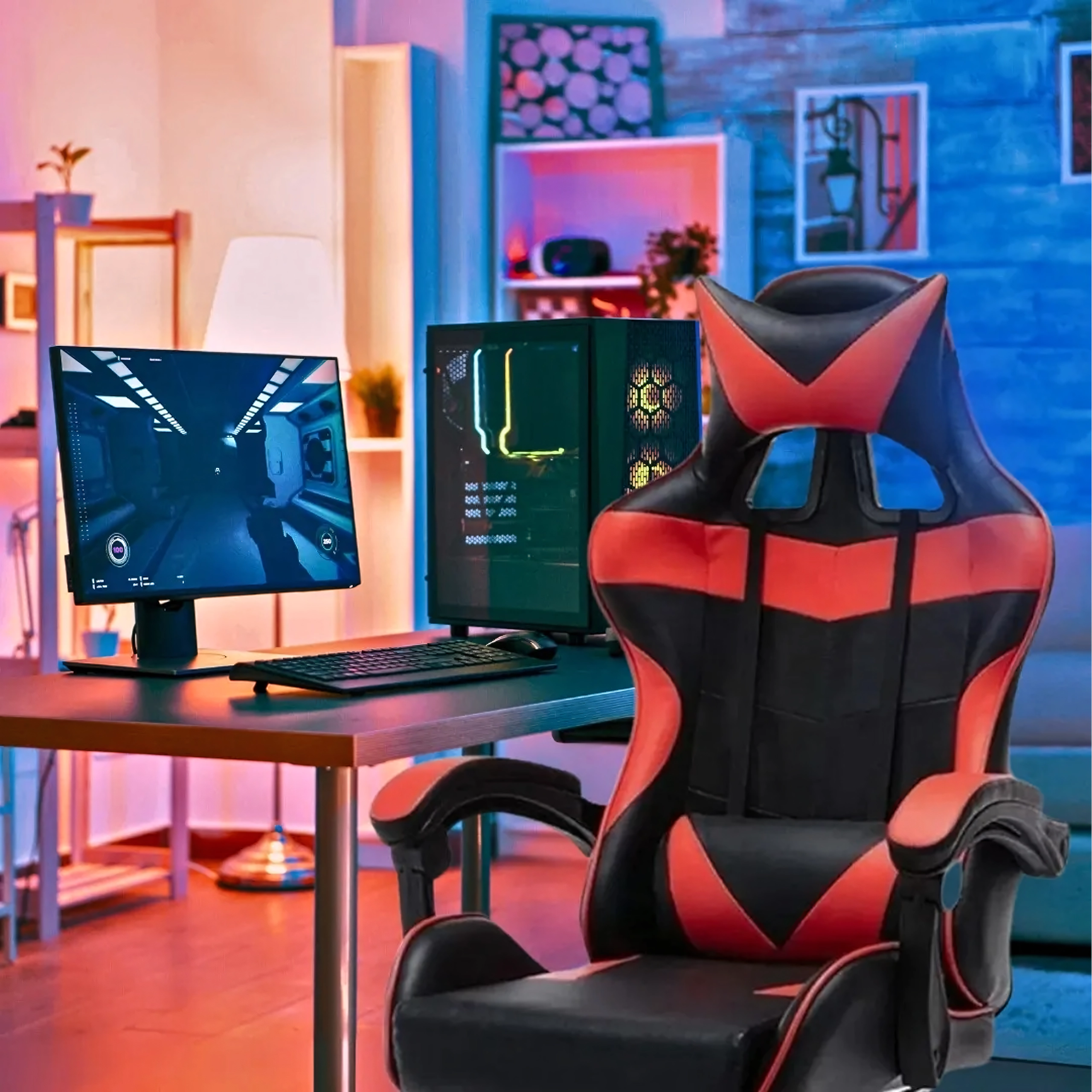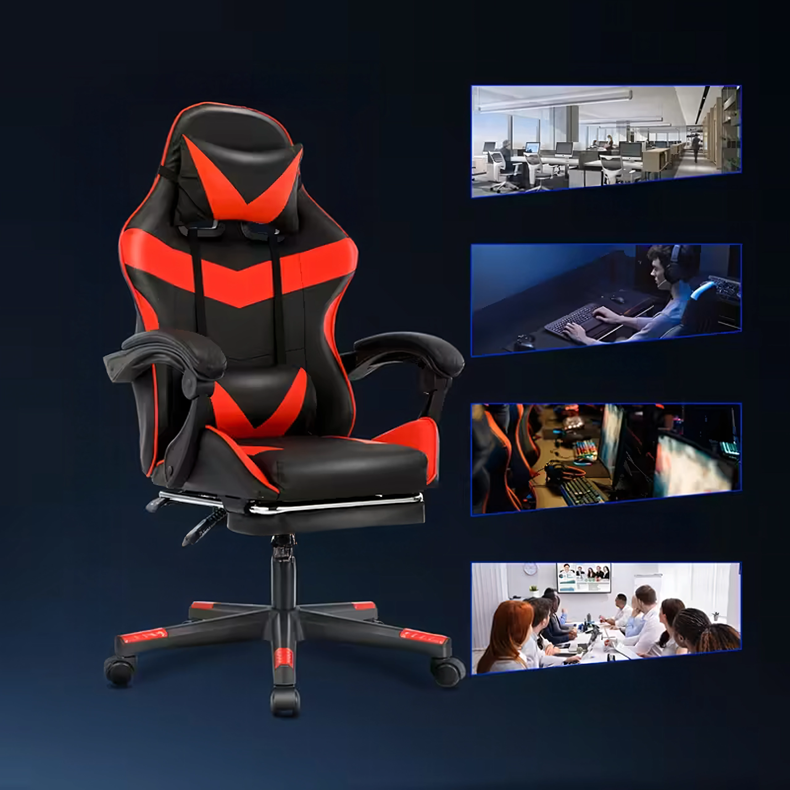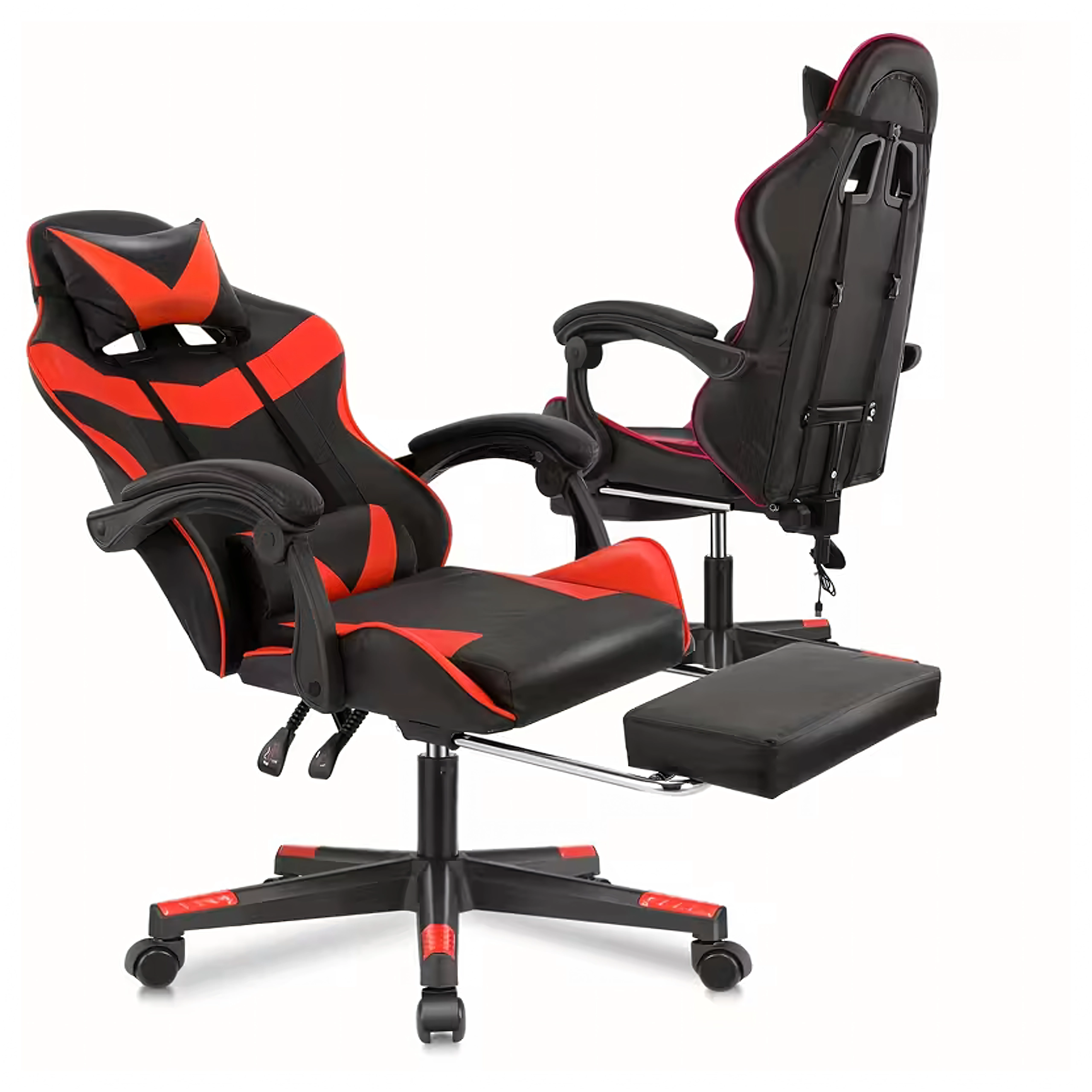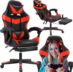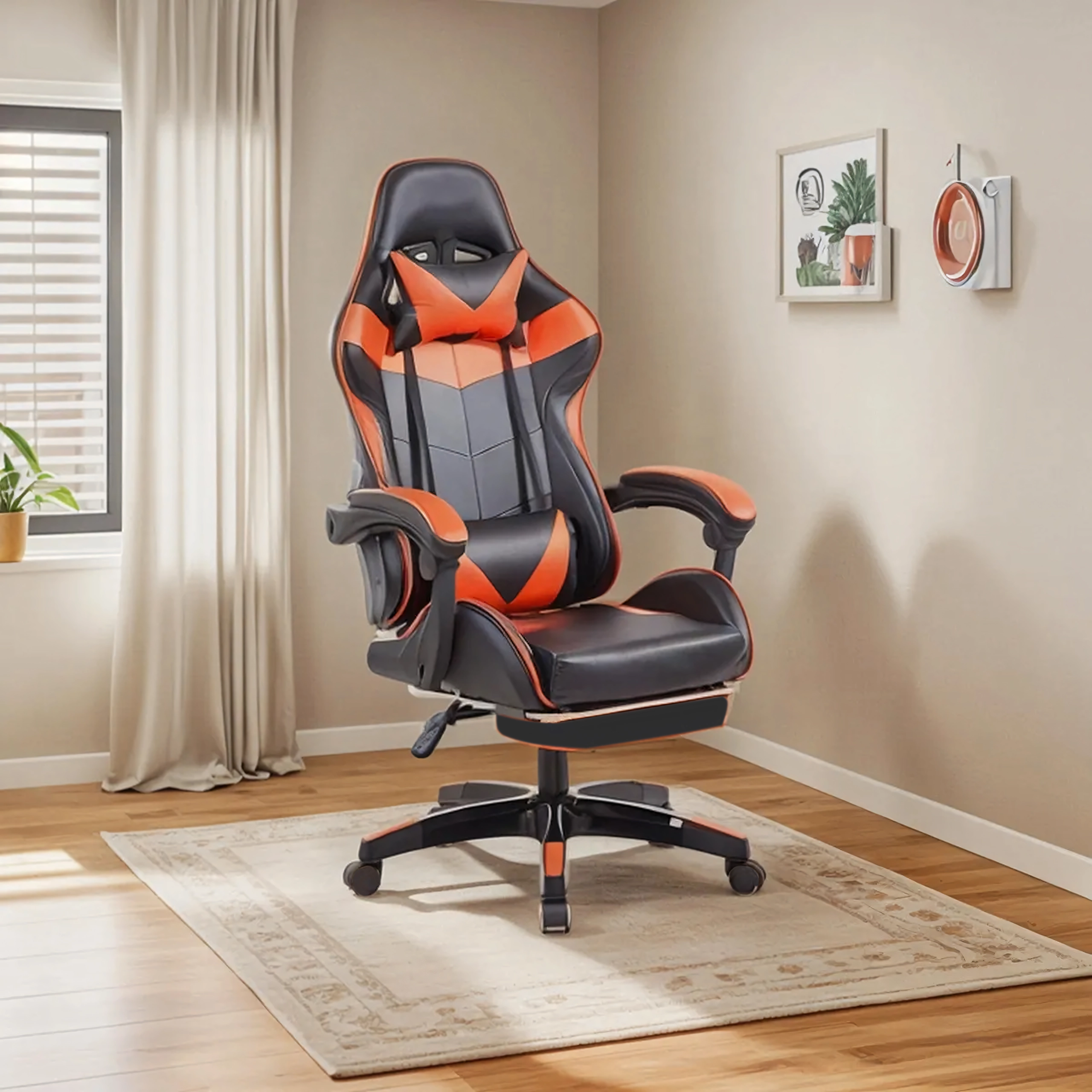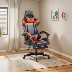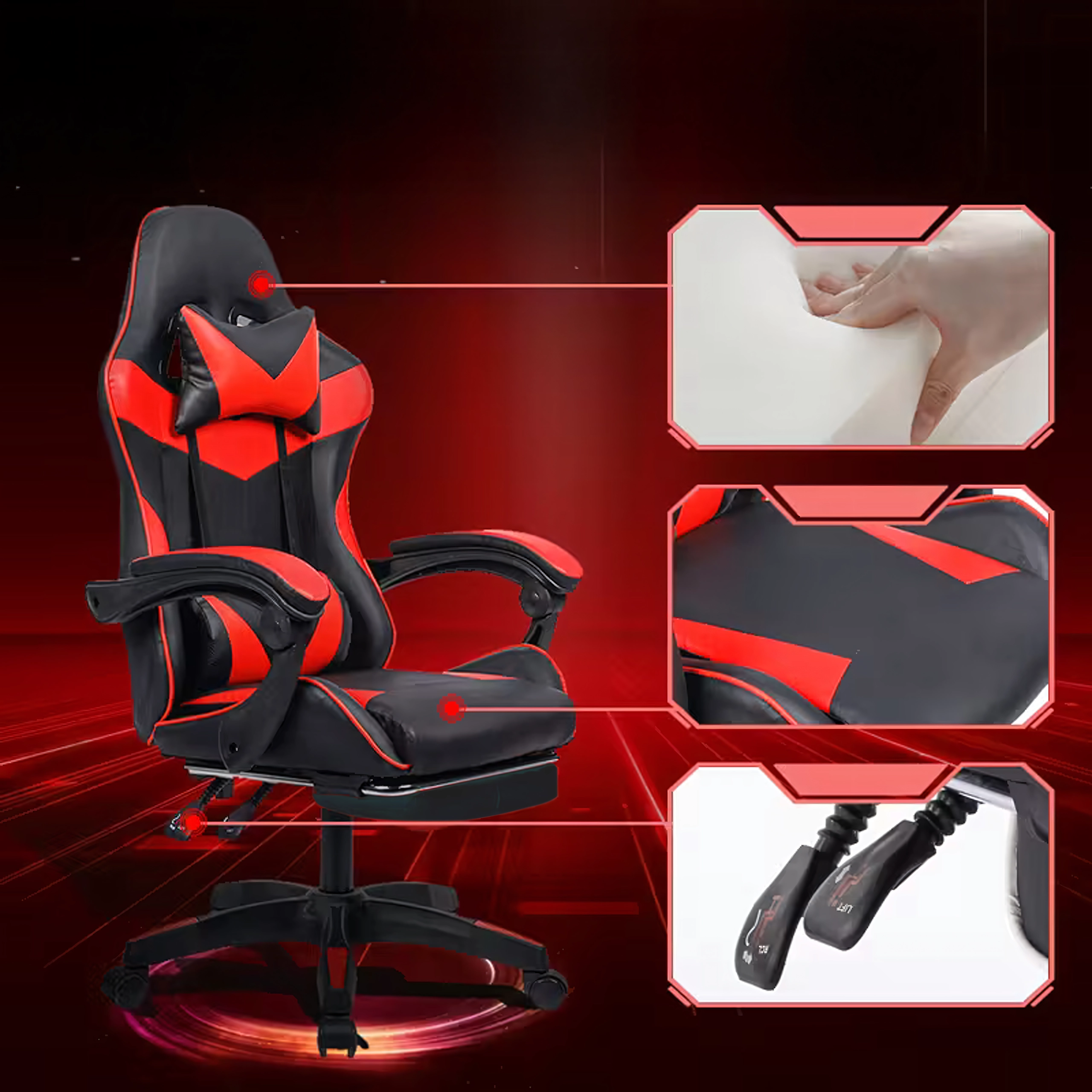Herné kreslo s podnožkou je navrhnuté pre stabilitu, oporu a príjemné sedenie počas dlhých hodín pri počítači. Vysoké operadlo s opierkou hlavy a bedrovým vankúšom pomáha uľaviť chrbtu, zatiaľ čo plynulé naklápanie operadla a výsuvná podnožka umožňujú rýchlo prejsť z pracovného režimu do relaxu.