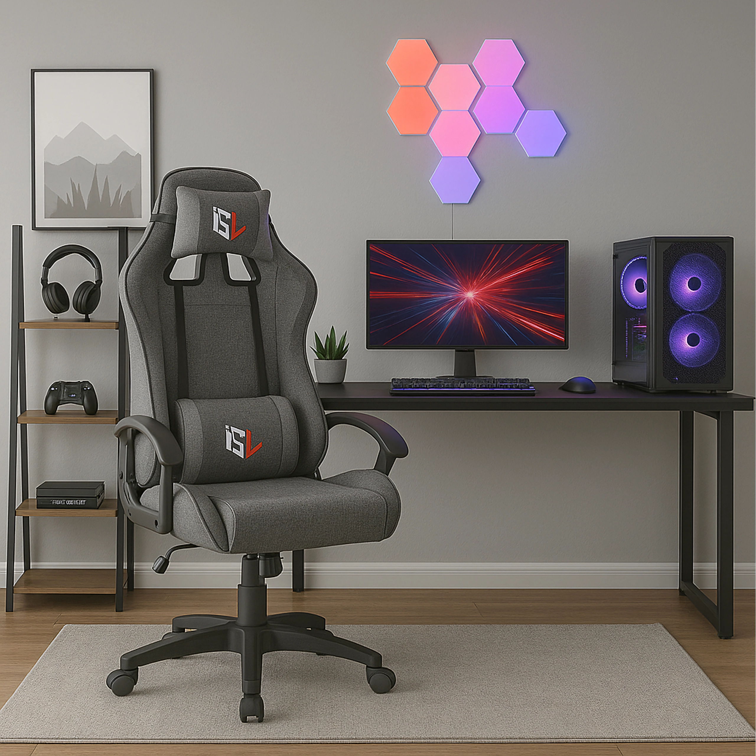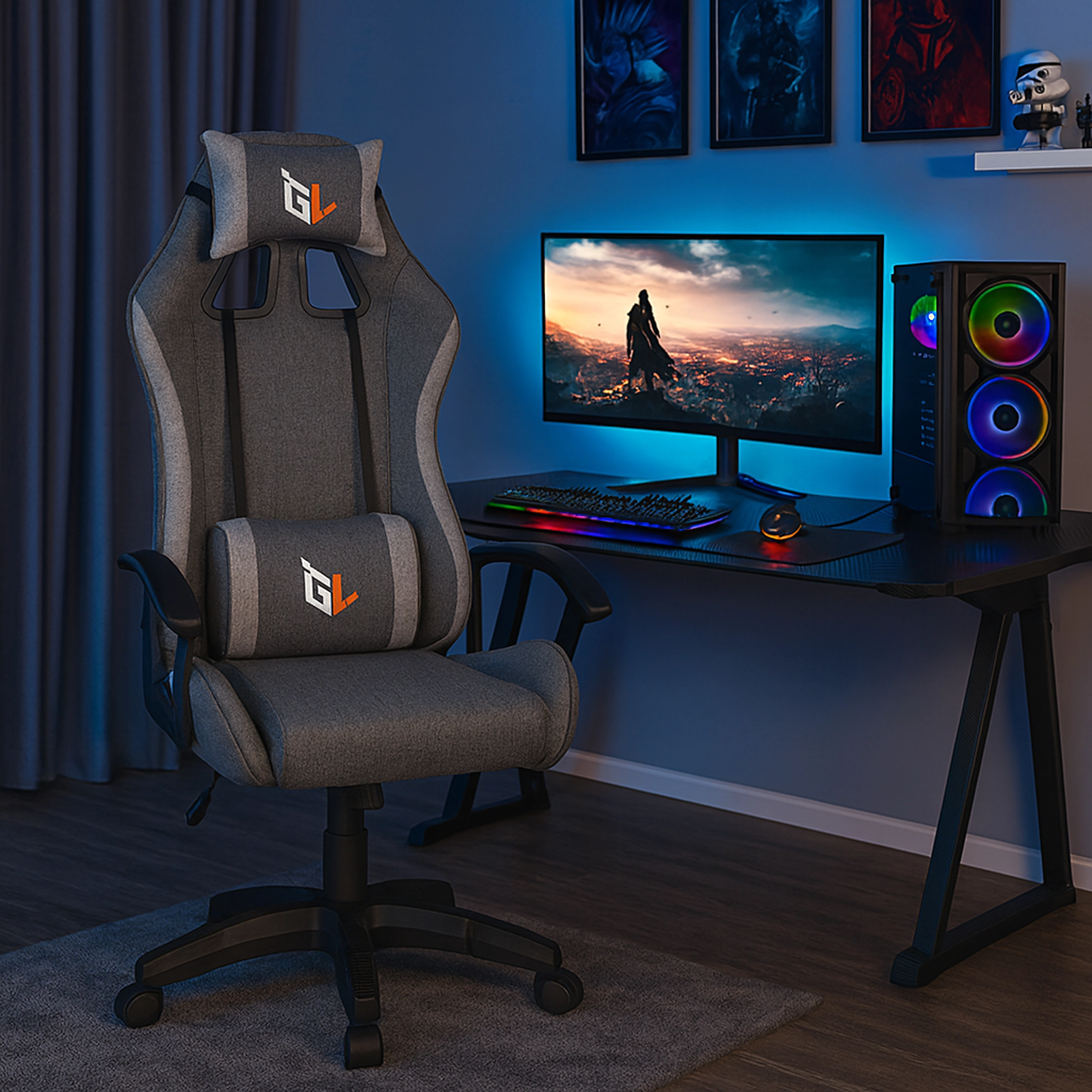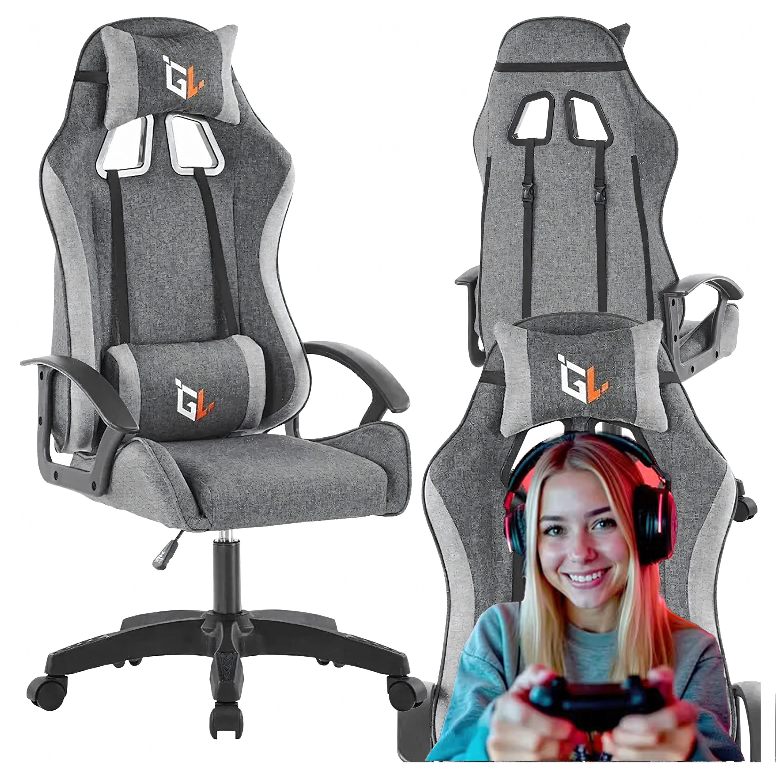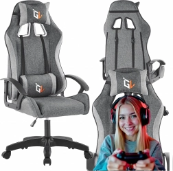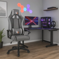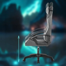 Štýlové a pohodlné herné kreslo na dlhé hodiny pri počítači. Ponúka ergonomický dizajn, výškové nastavenie, podporu bedrovej chrbtice aj vankúš pod hlavu. Odolné textilné čalúnenie, stabilná päťramenná základňa a nosnosť 100 kg zaručia istotu pri hraní, štúdiu aj práci.