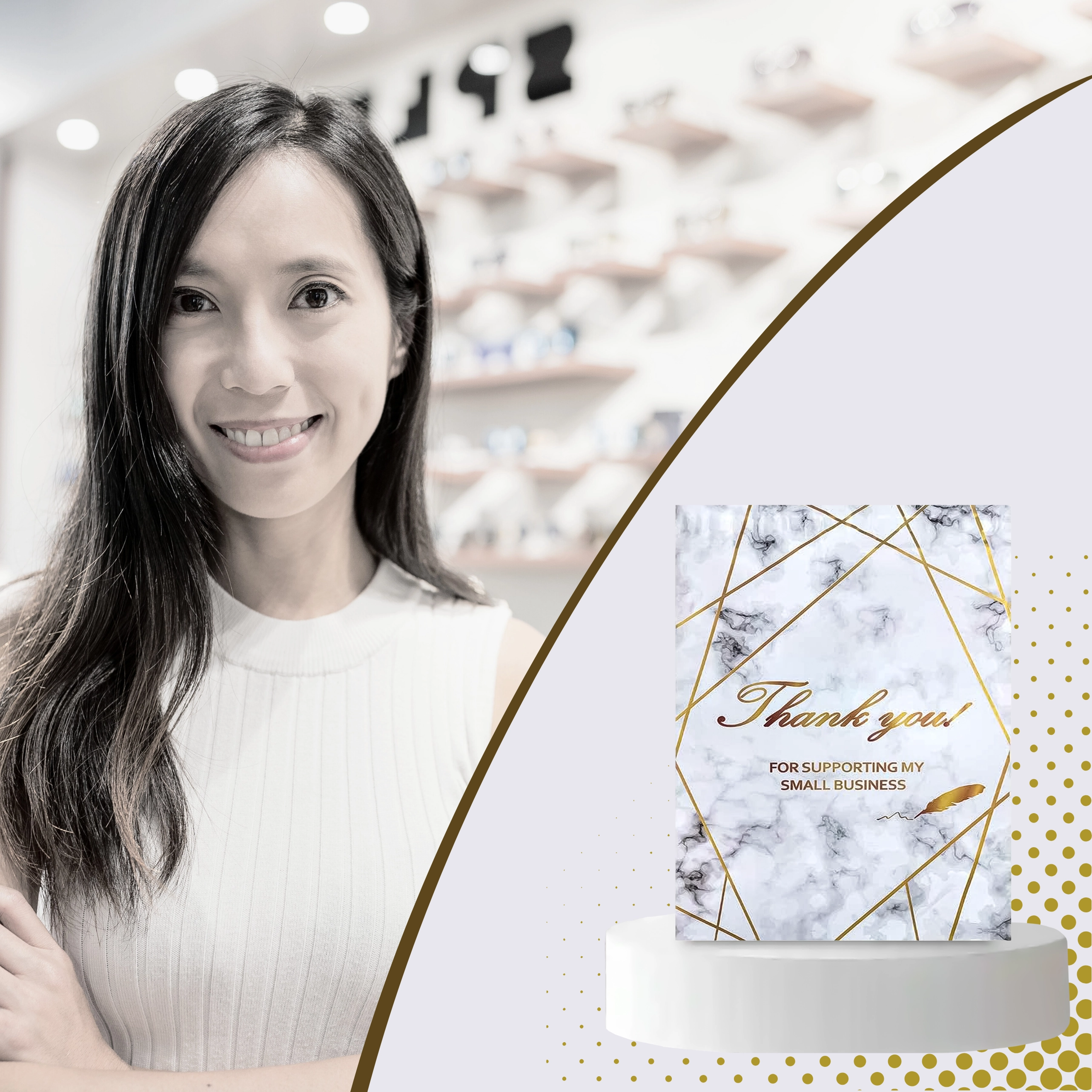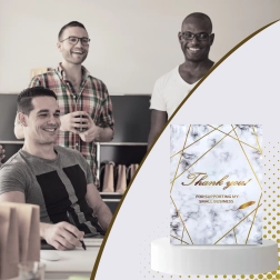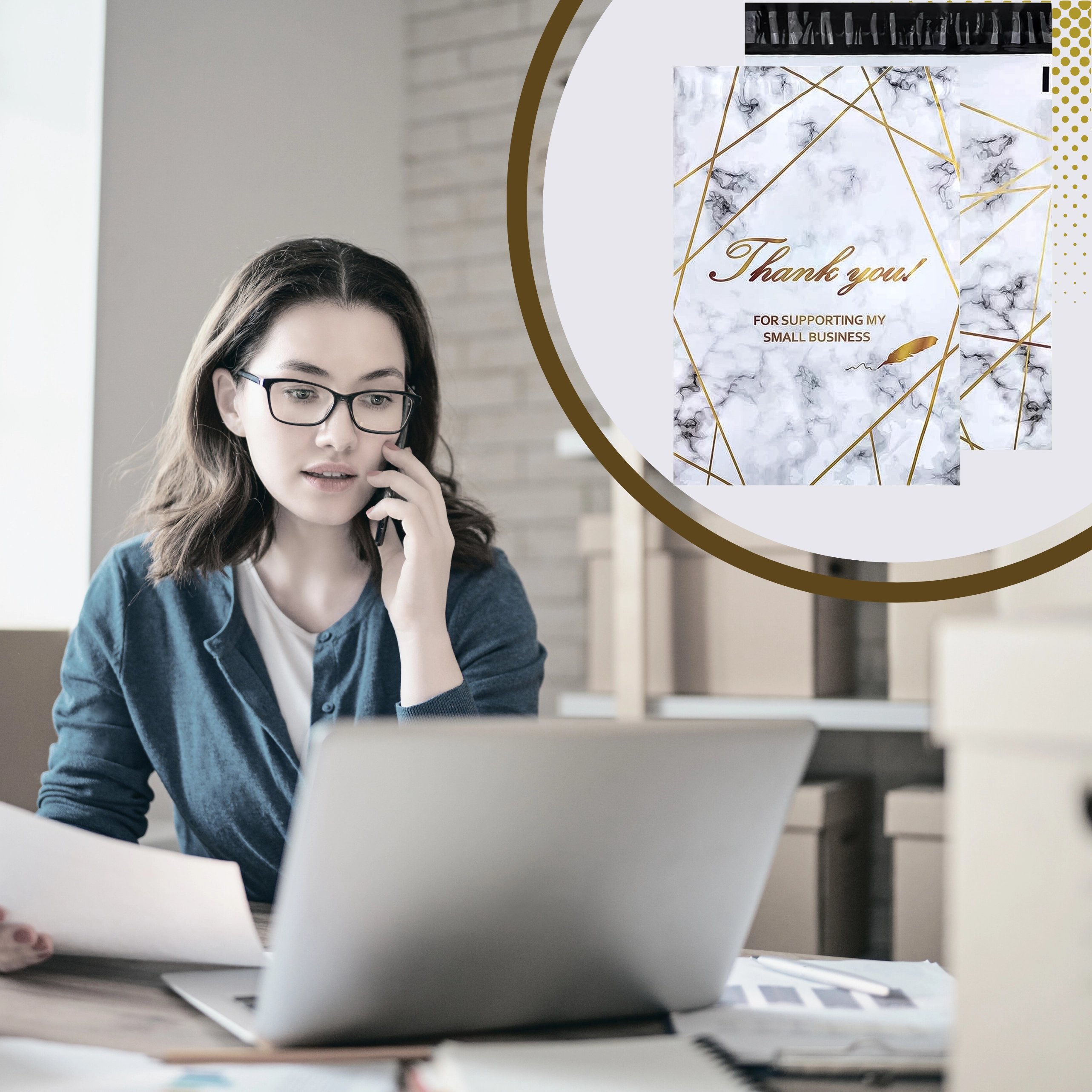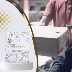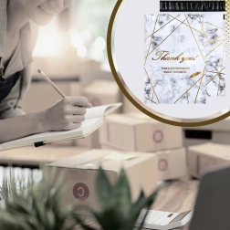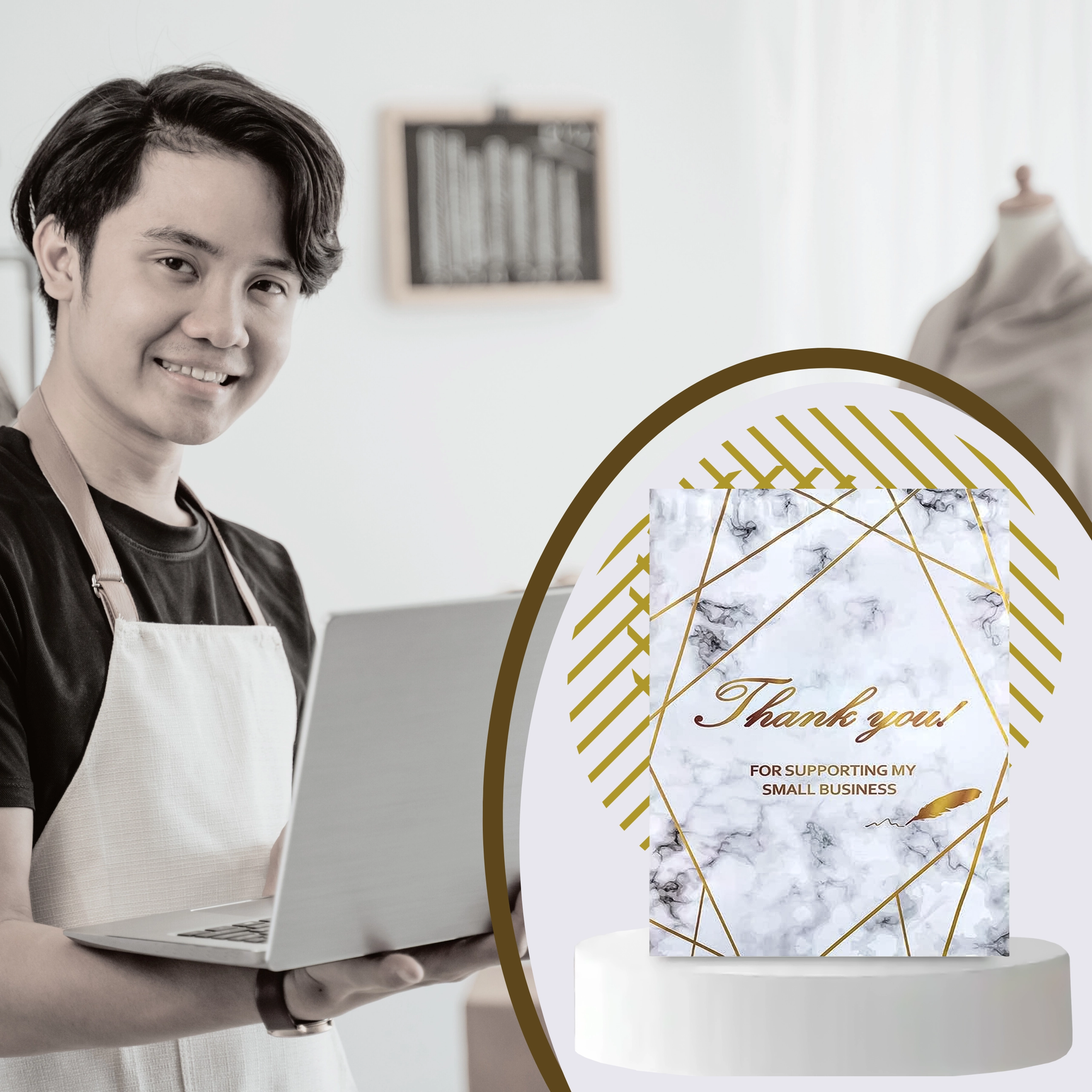 - Reprezentatívny vzhľad: zlatý mramor s potlačou Thank You pre lepší zákaznícky dojem.