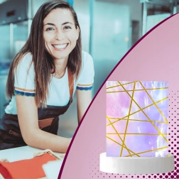 - Reprezentatívny vzhľad – fialovo‑zlatý motív pre profesionálny imidž.