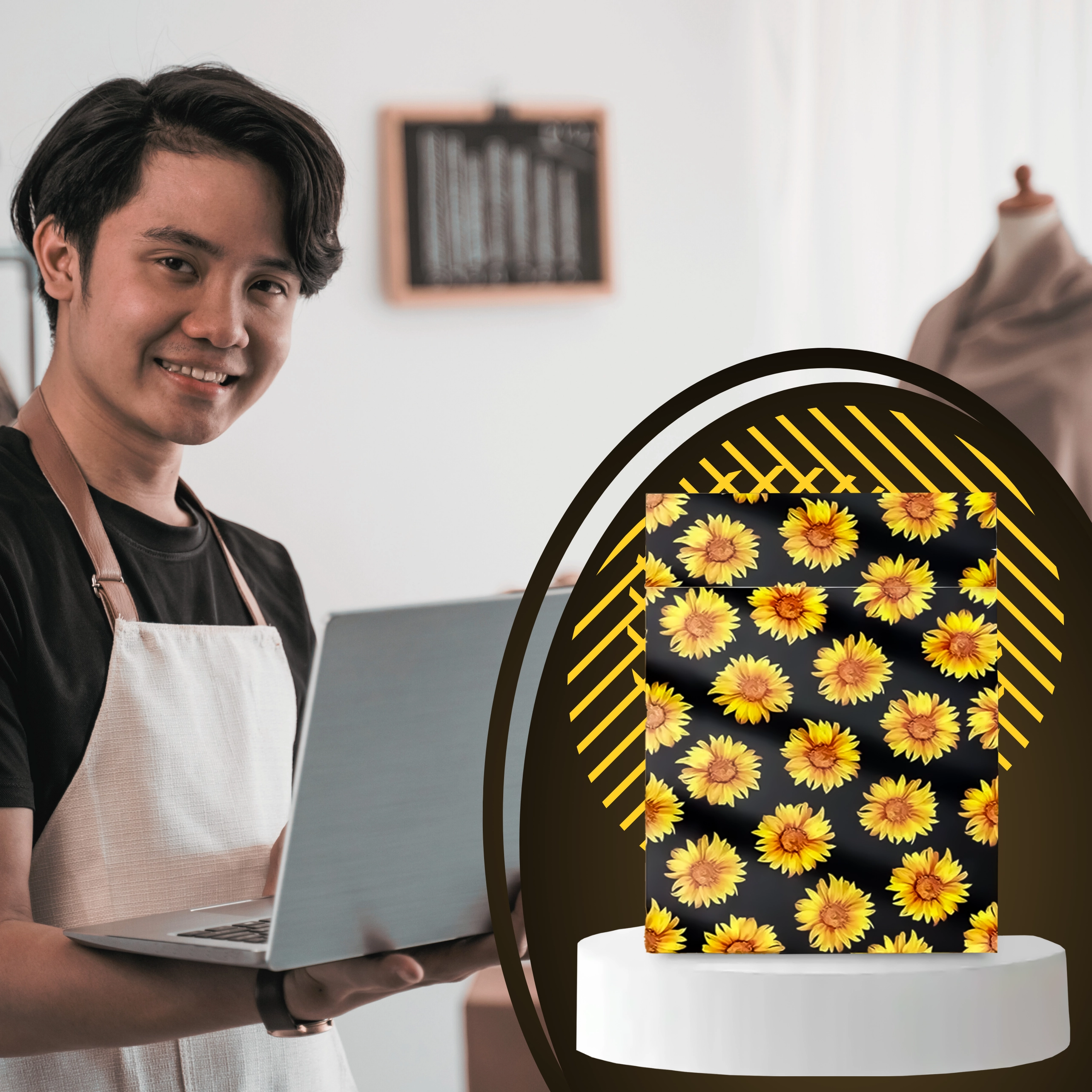Vďaka univerzálnemu formátu 255 × 370 mm sa skvele hodia pre textil, doplnky, tlačoviny aj drobné darčeky. Matne lesklý povrch s motívom slnečníc dodá zásielkam profesionálny a zapamätateľný vzhľad.