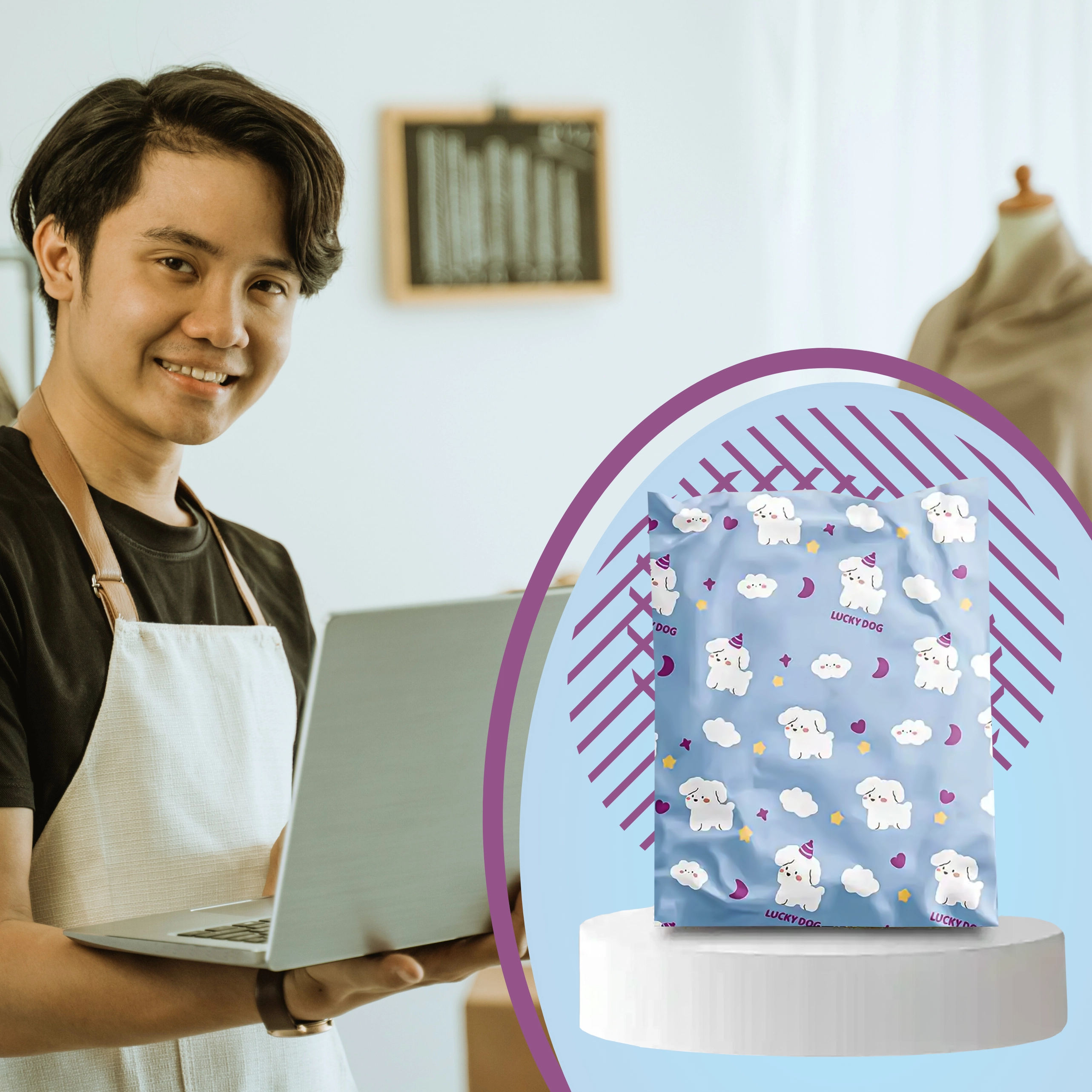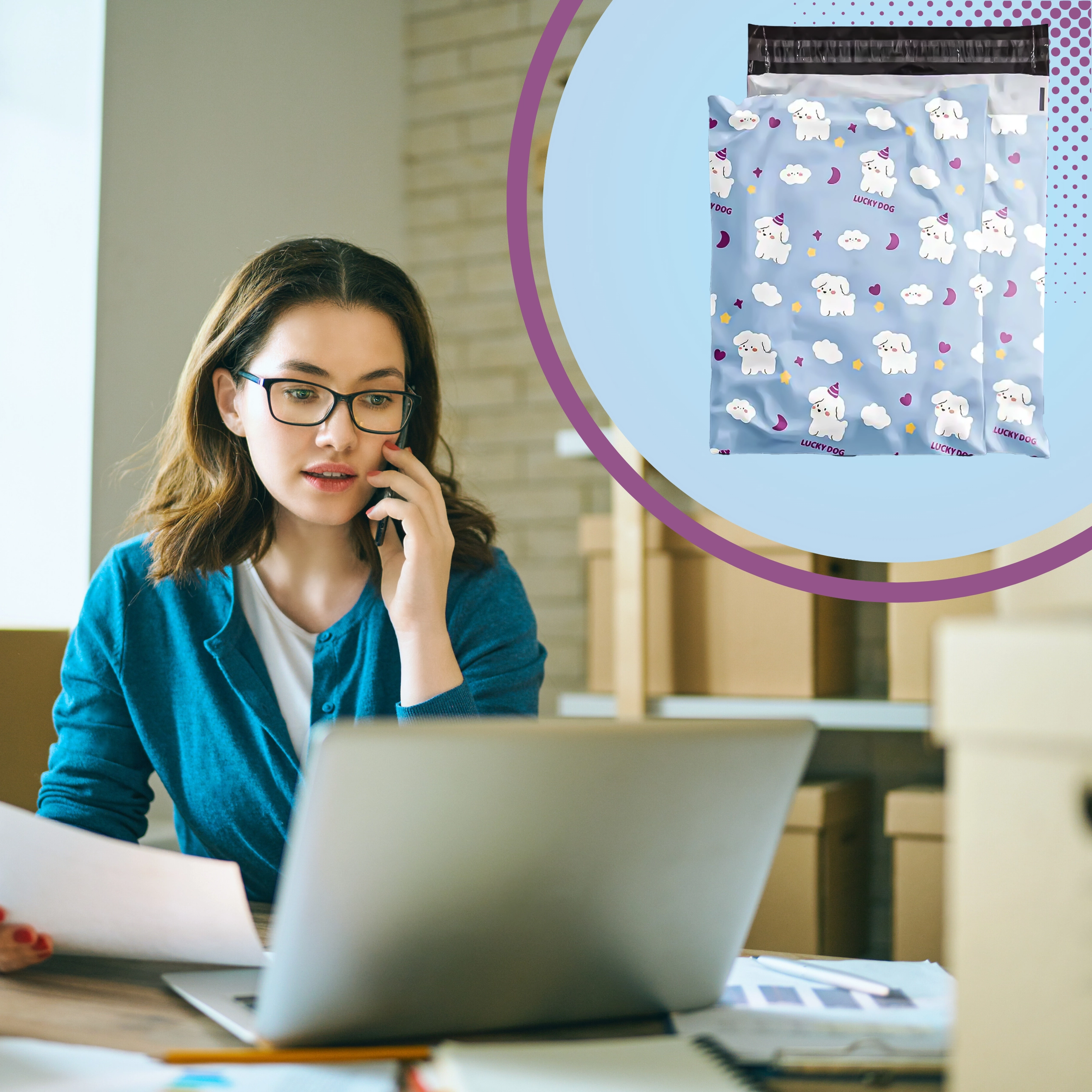 Vďaka odolnému materiálu a nepriehľadnému prevedeniu zostane obsah chránený pred vlhkosťou aj zvedavými pohľadmi. Dekor LUCKY DOG zvýrazní profesionalitu a zapamätateľnosť vašich zásielok.