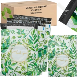 Praktické a odolné kuriérne fóliopakety s rozmerom 310 × 420 mm s potlačou „Thank You“ v balení po 50 ks. Ponúkajú rýchle balenie vďaka samolepiacemu prúžku, bezpečné uzavretie s dôkazom porušenia a spoľahlivú ochranu zásielky pri preprave.
