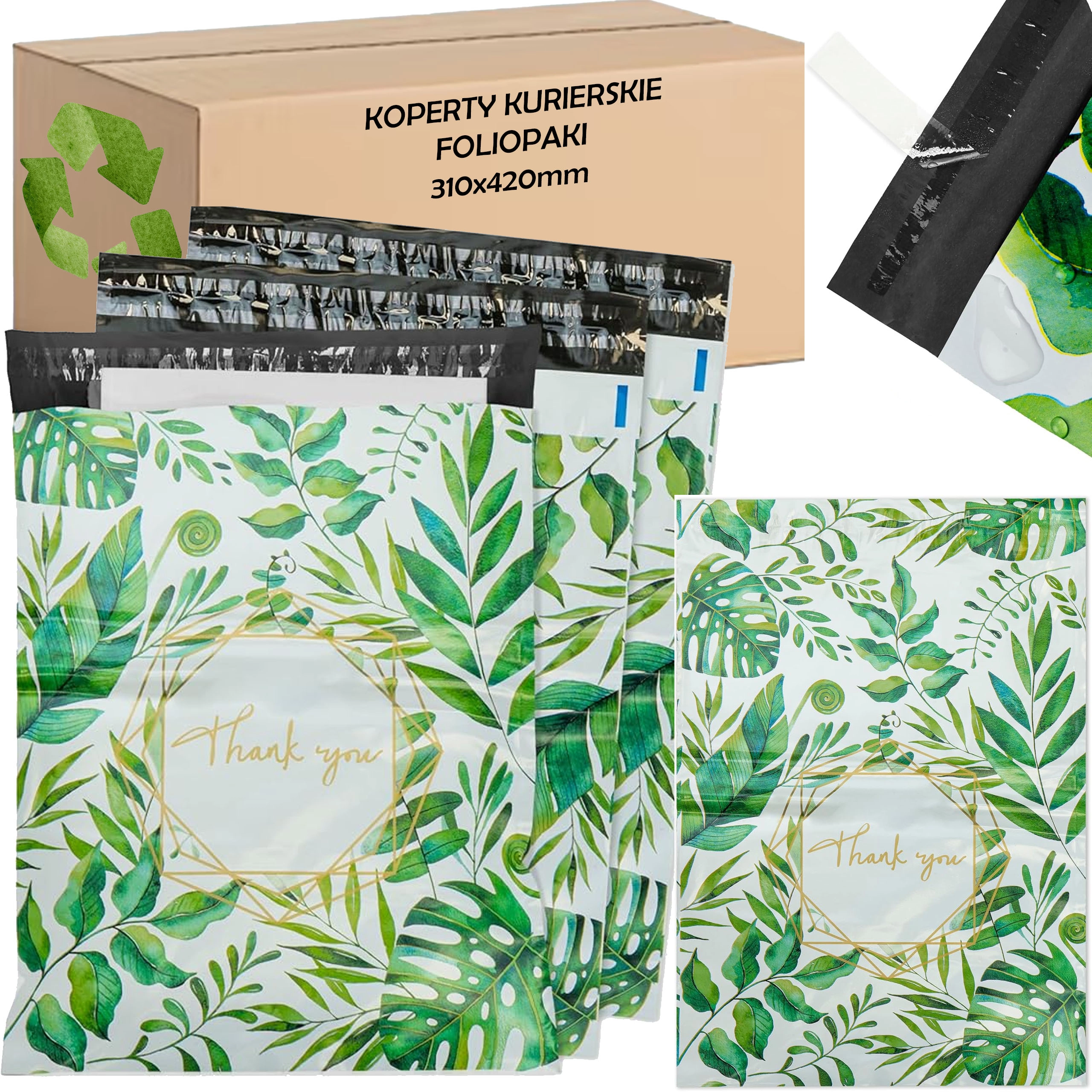 Tieto kuriérne fóliopakety sú ideálne pre e‑shopy a všetkých, ktorí chcú svoje zásielky baliť rýchlo, bezpečne a profesionálne. Rozmer 310 × 420 mm je skvelý pre menšie aj stredne veľké produkty, oblečenie, doplnky či krabice. Elegantný vonkajší vzhľad s nápisom „Thank You“ zanechá u zákazníka pozitívny dojem.