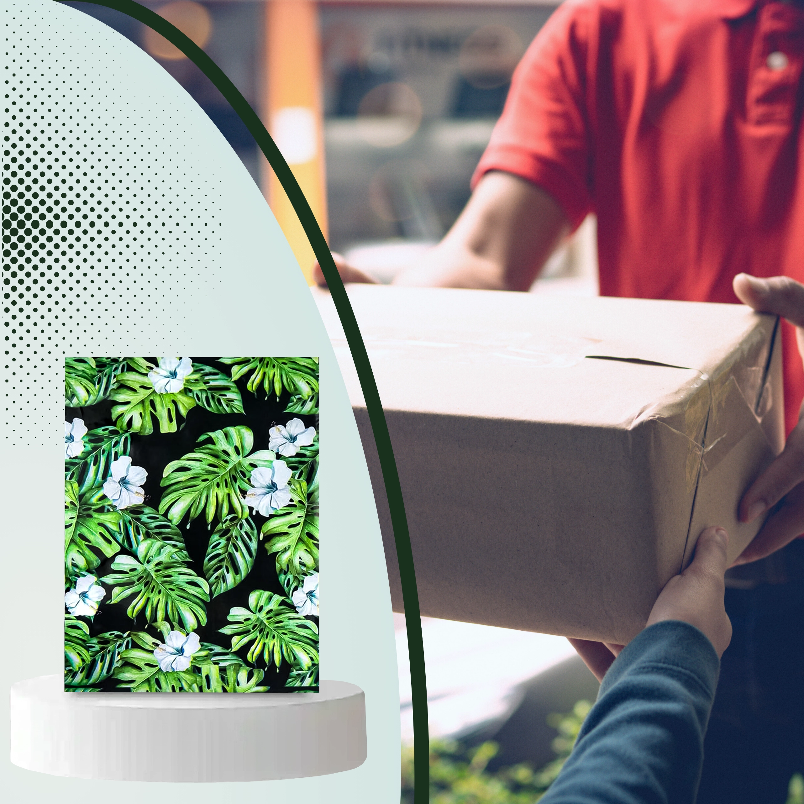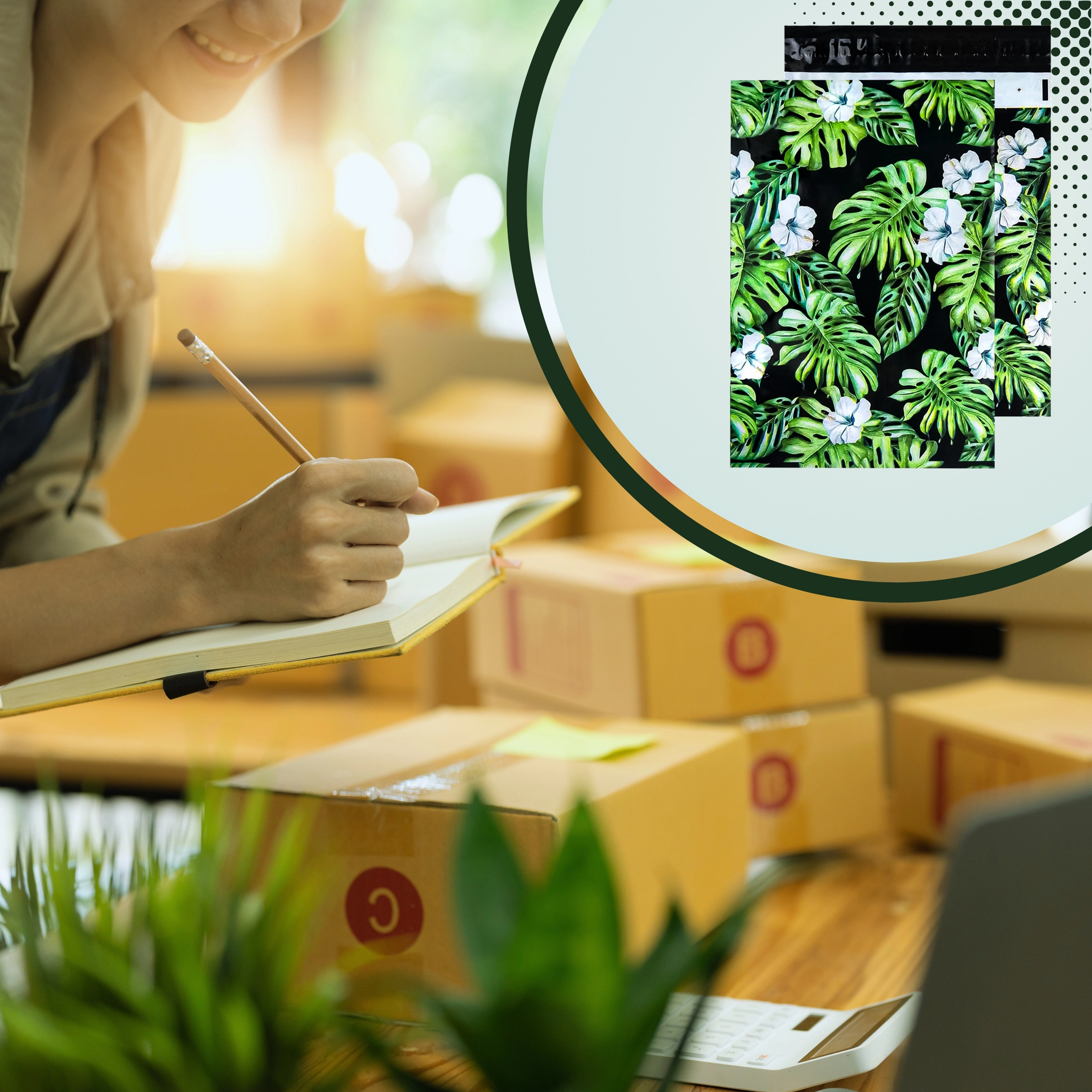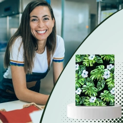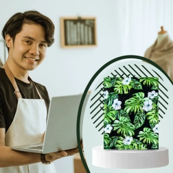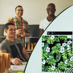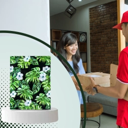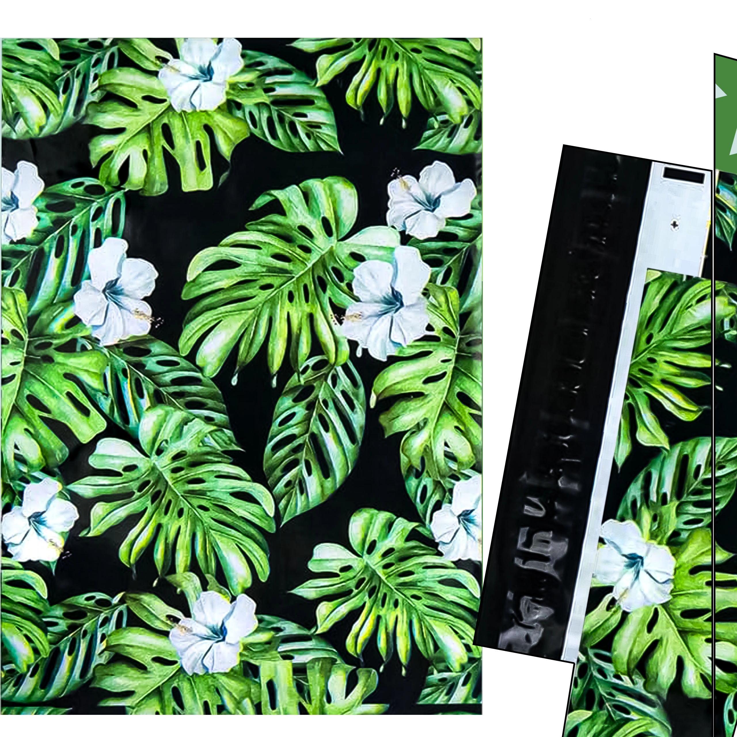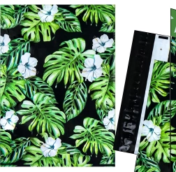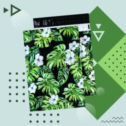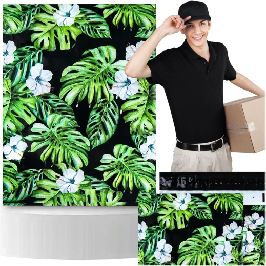 Tlač s motívom listov a kvetov na tmavom podklade dodá vašim zásielkam výrazný vzhľad a posilní brand pri doručení.