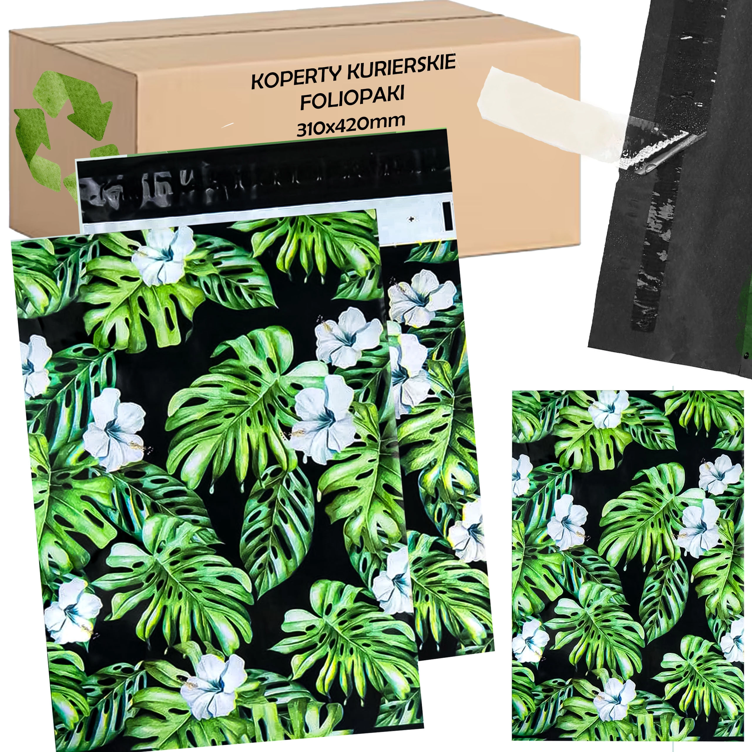 Praktické a odolné fóliopaky pre e‑shop aj domáce zásielky v rozmere 310 × 420 mm. Ponúkajú samolepiace uzatváranie, vodoodolnú ochranu a štýlový tropický dizajn pre bezpečné a reprezentatívne balenie produktov. Balenie obsahuje 50 kusov.