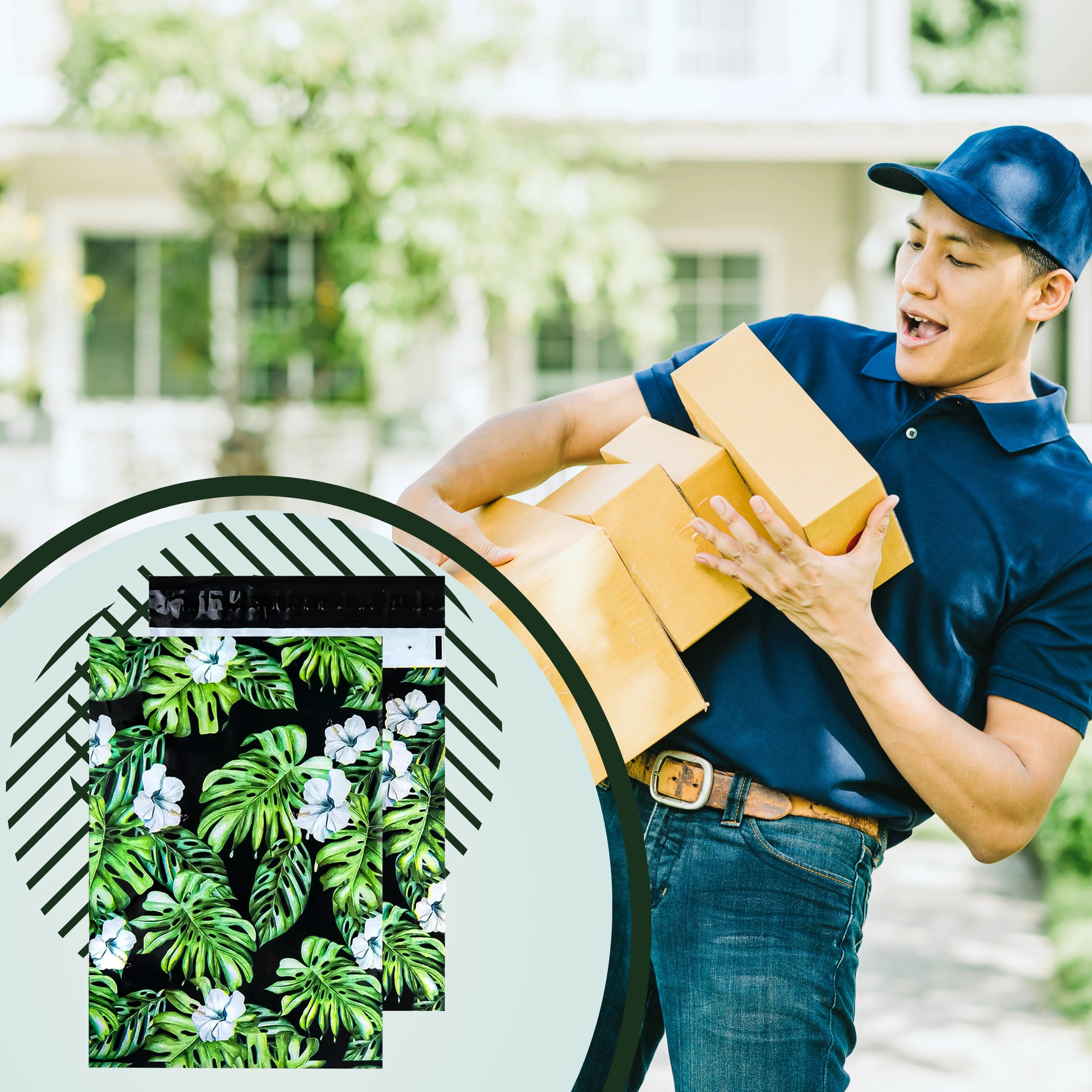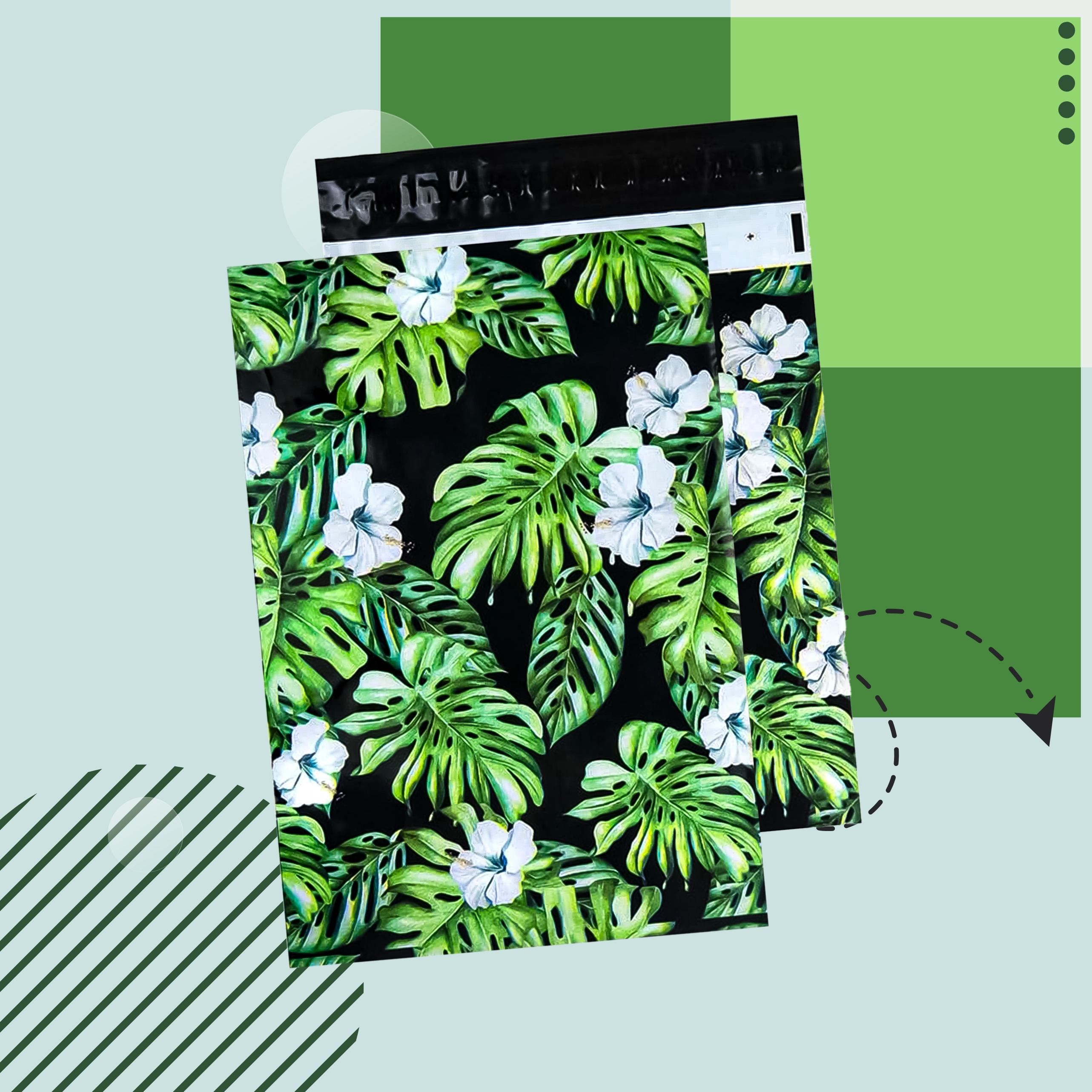 Ideálne pre e‑shopy aj súkromných odosielateľov: oblečenie, textil, krabičky, darčeky či ďalšie ľahšie produkty. Atraktívna tropická potlač podčiarkne branding a vytvorí profesionálny dojem pri doručení.