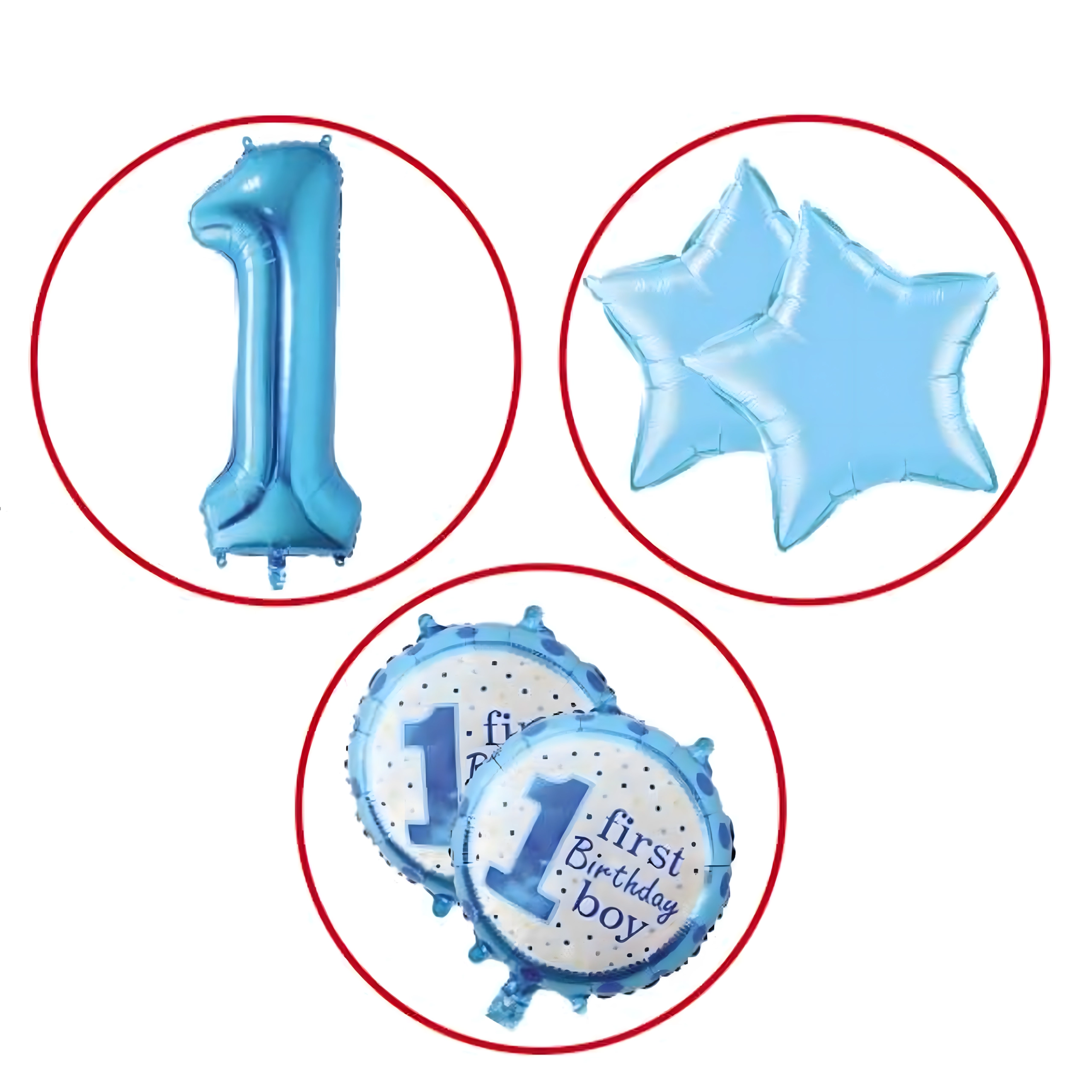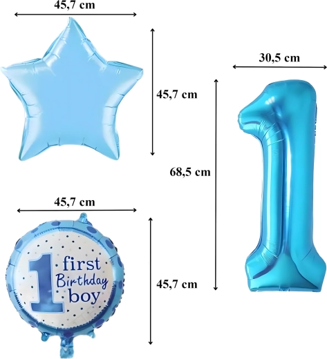Balóny možno nafúknuť vzduchom alebo héliom (podľa typu). Farby a motívy sú navrhnuté špeciálne pre prvé narodeniny chlapca.