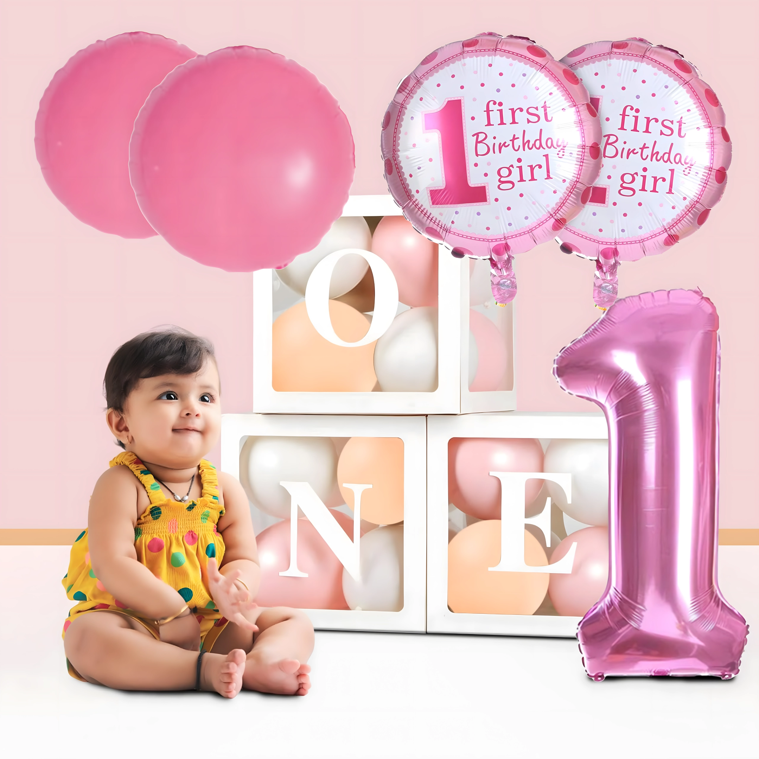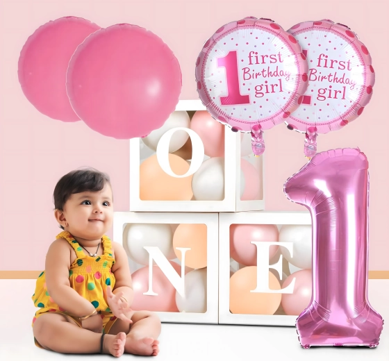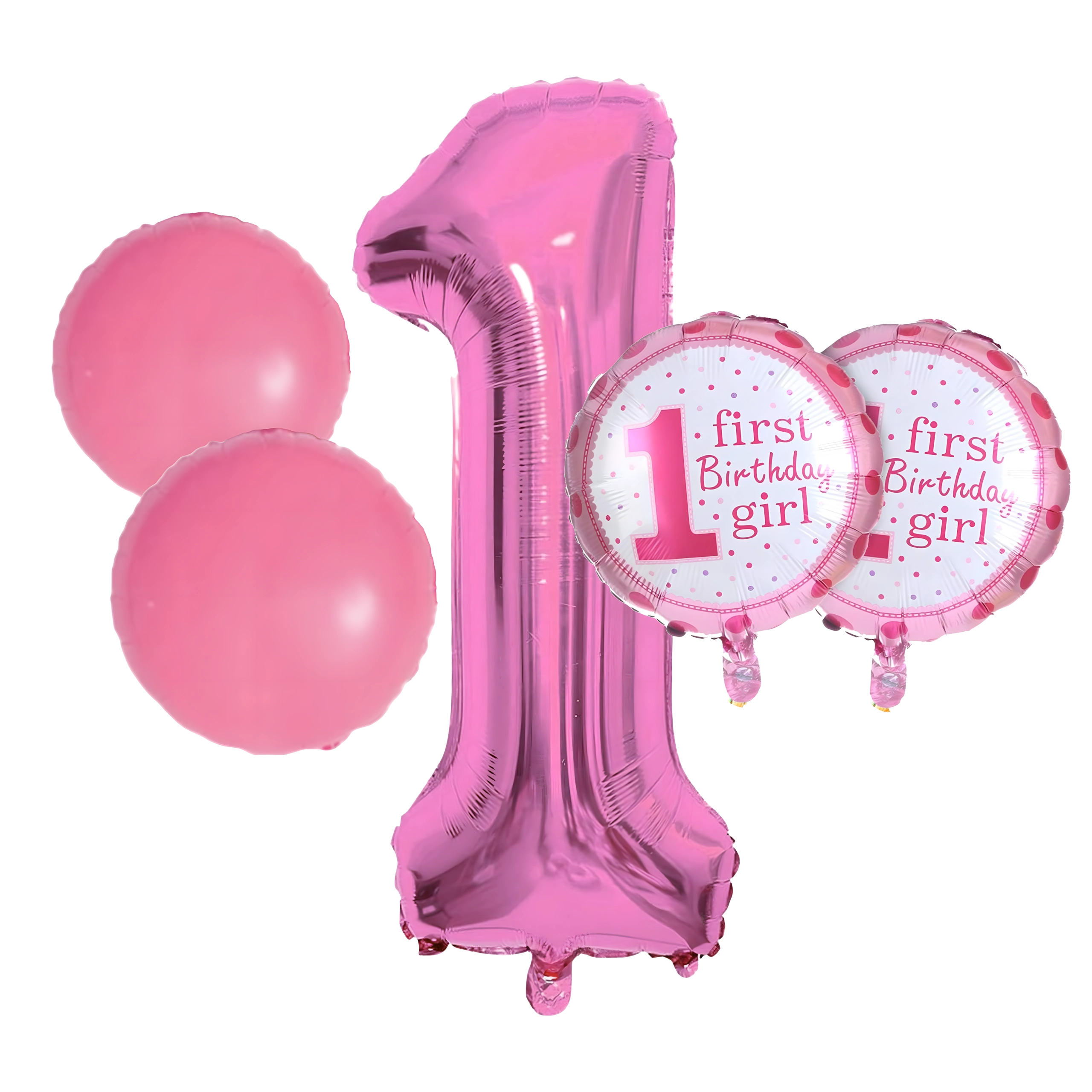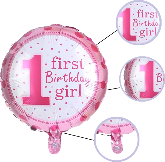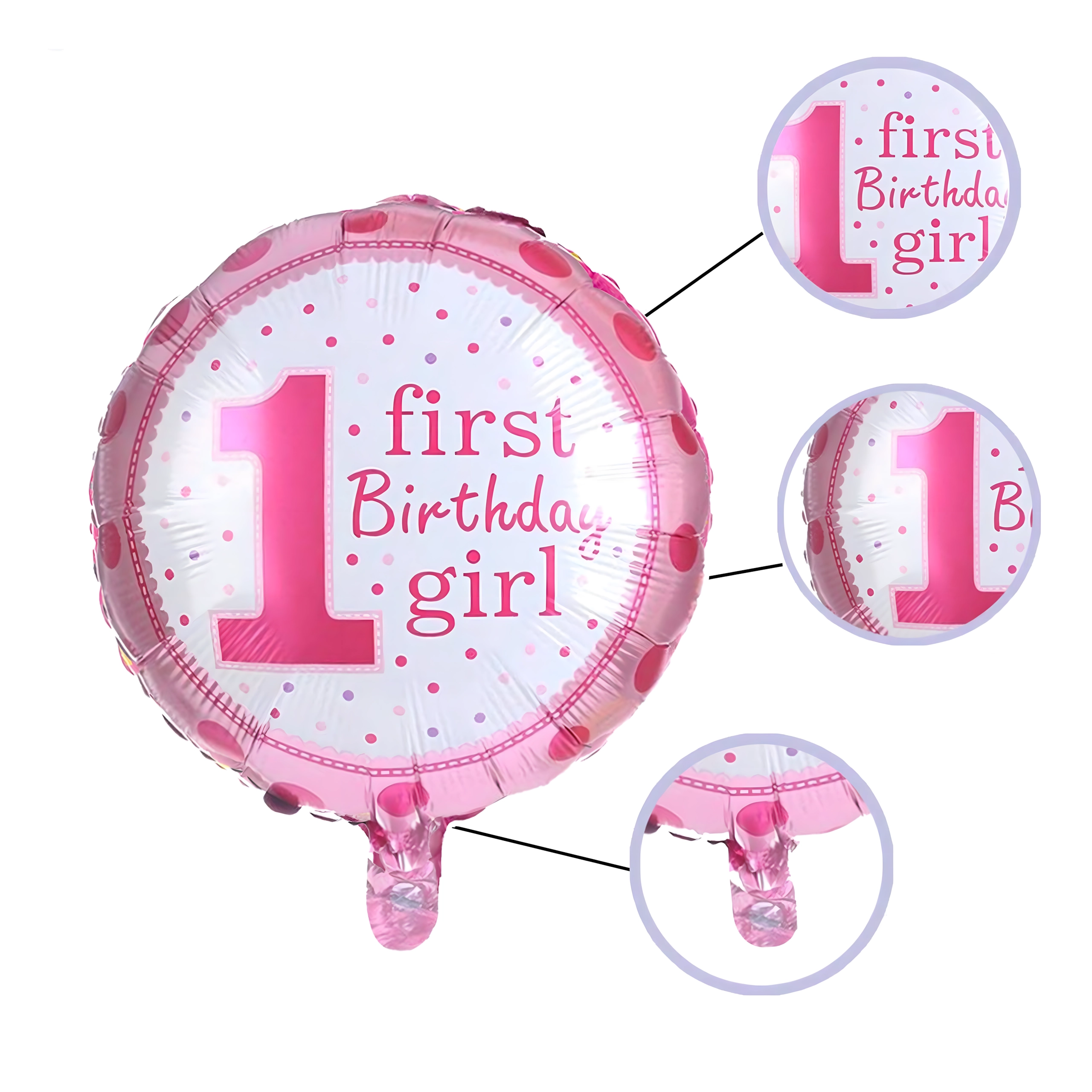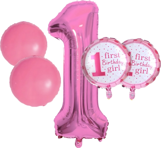 Štýlová sada balónikov na oslavu 1. narodenín dievčatka. Obsahuje motív čísla 1, hviezdičky a nápisy „First Birthday Girl“ pre fotografické momentky, výzdobu párty aj dekoráciu detskej izbičky. Jednoduché nafukovanie a krásne zladené farby vytvoria očarujúcu atmosféru prvej oslavy.
