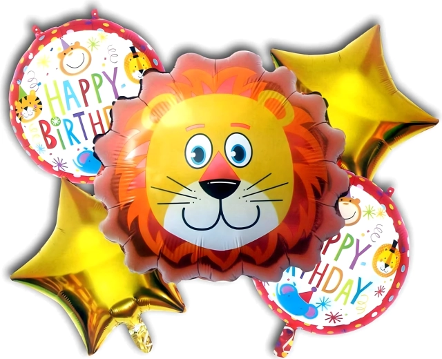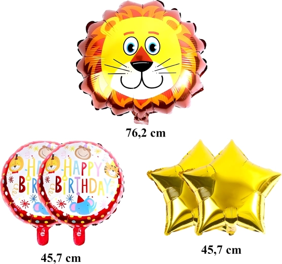 - 1× balónik lev, 2× balónik s nápisom HAPPY BIRTHDAY, 2× zlatá hviezda