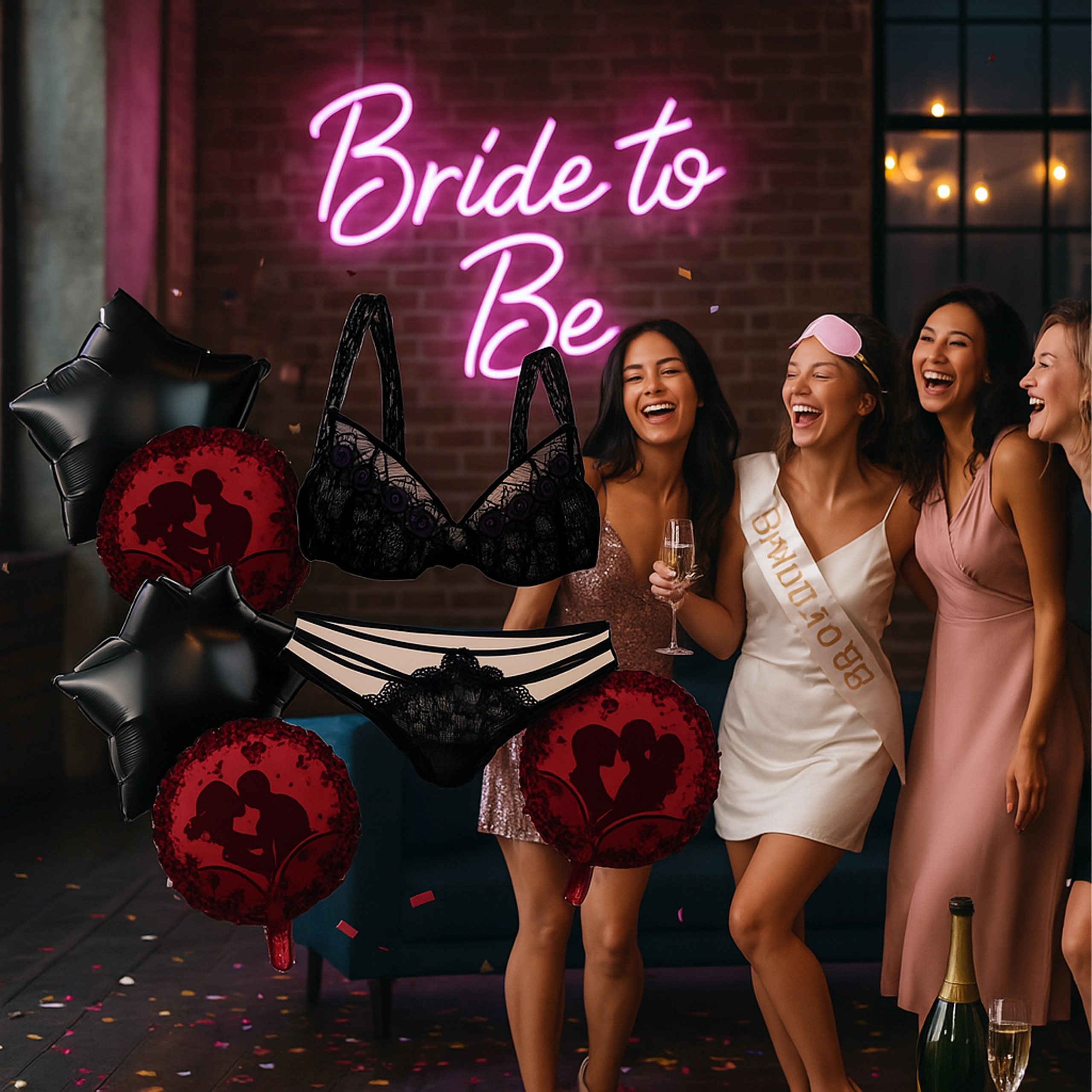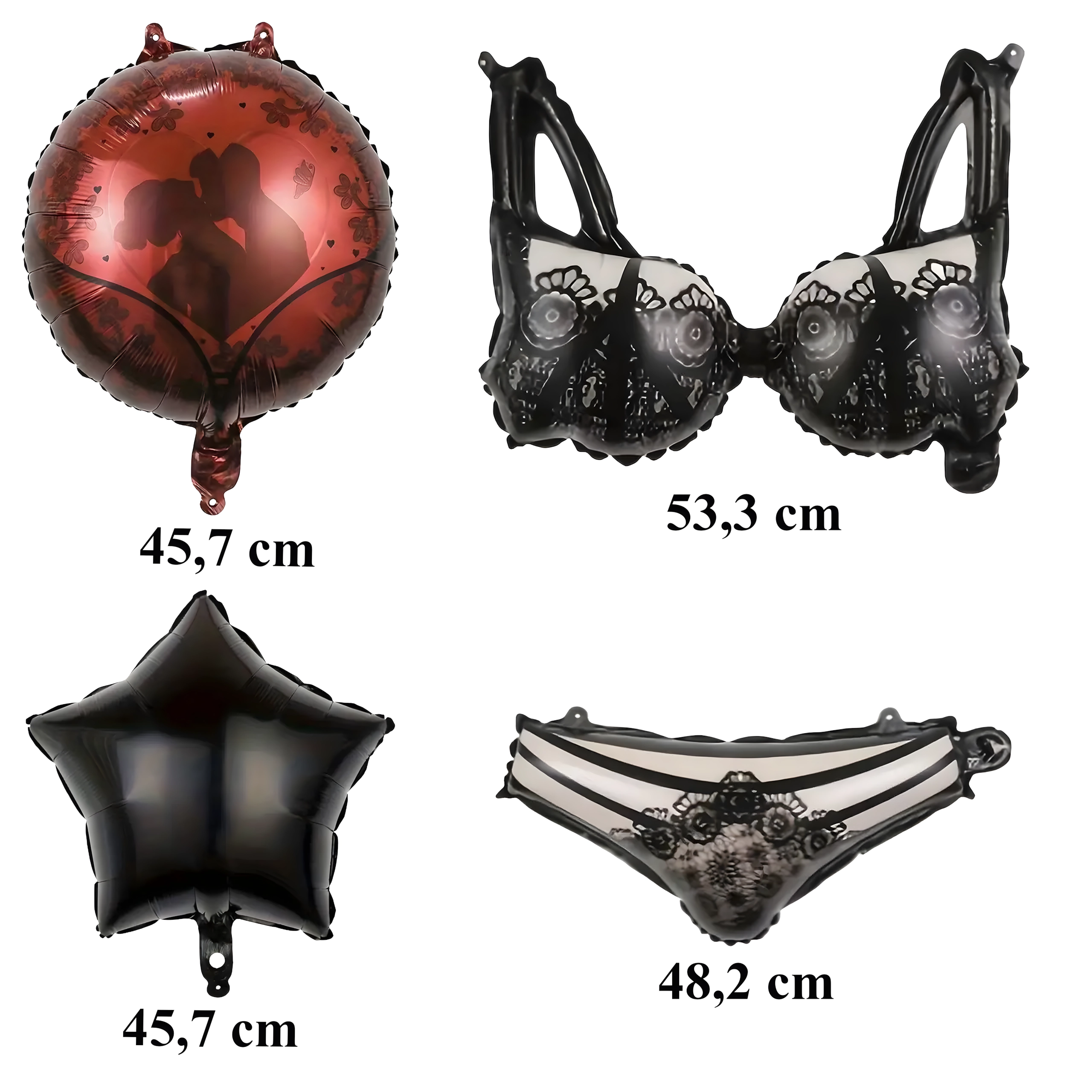 Veselá sada balónikov na rozlúčku so slobodou v motíve dámskej bielizne rozžiari každú párty. Obsahuje balónik v tvare podprsenky (53,3 cm), balónik v tvare nohavičiek (48,2 cm), 2 okrúhle balóniky a 2 balóniky s potlačou. Ideálne ako dekorácia k fotokútiku a na párty Bride‑to‑Be.