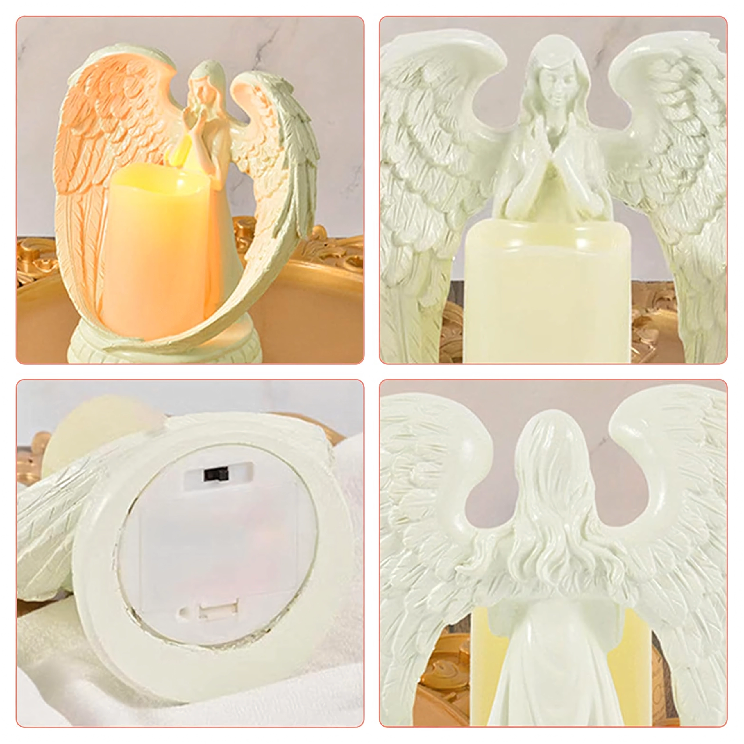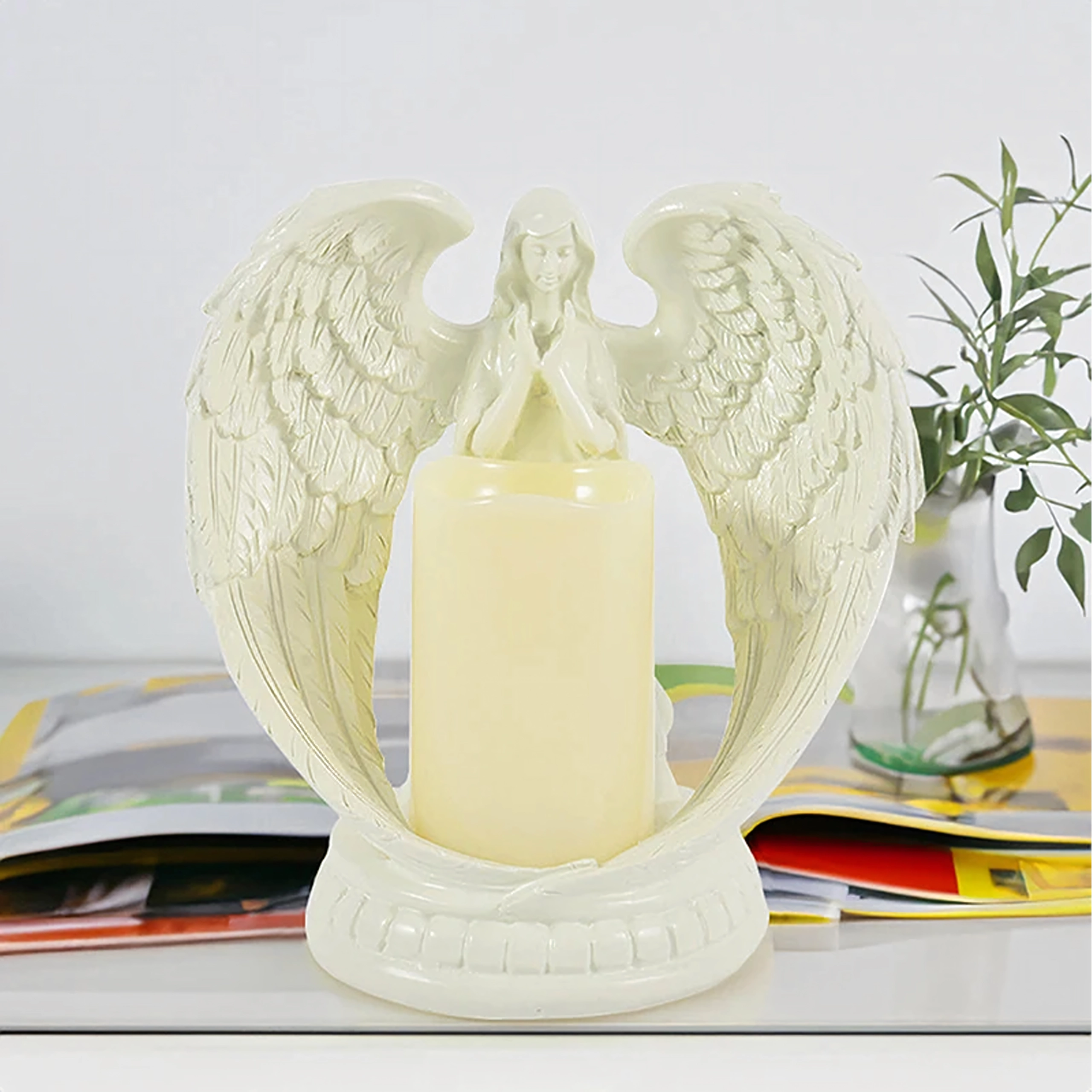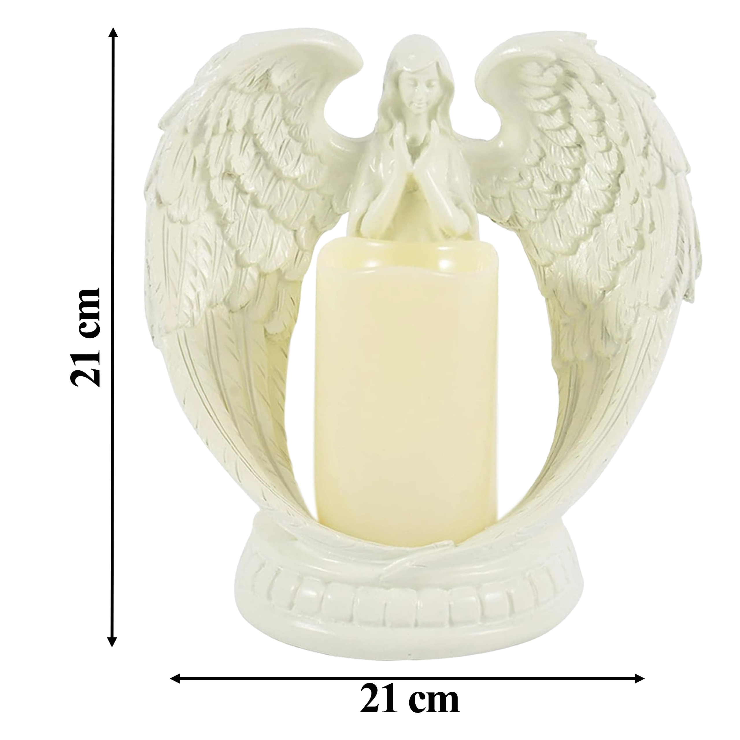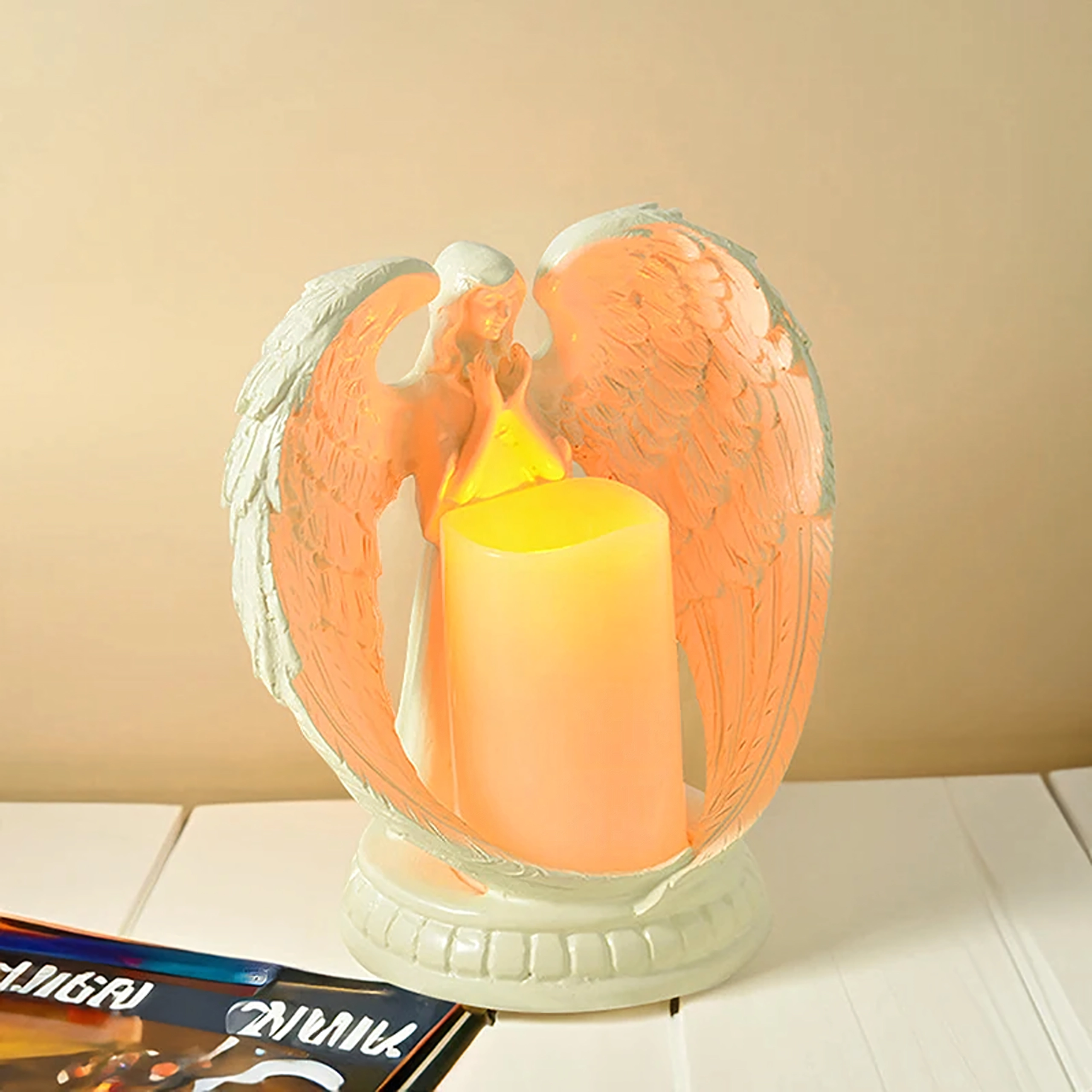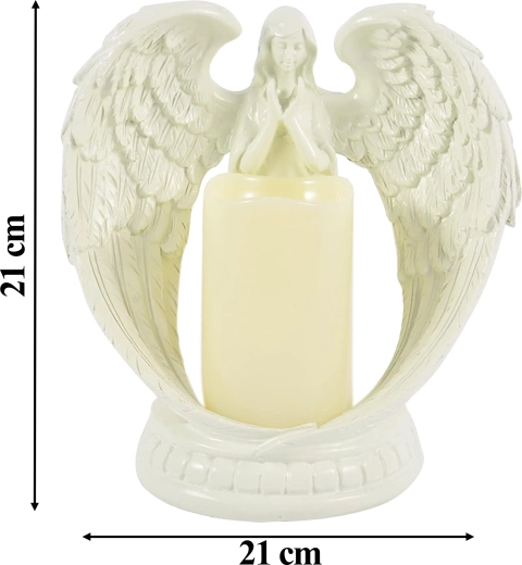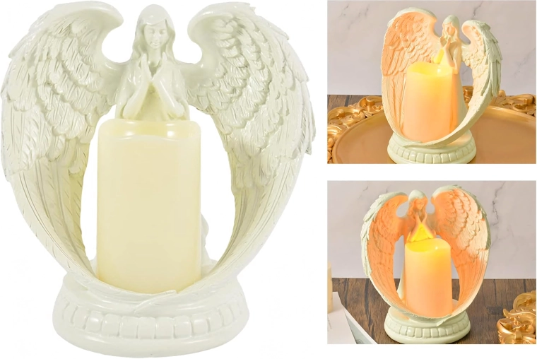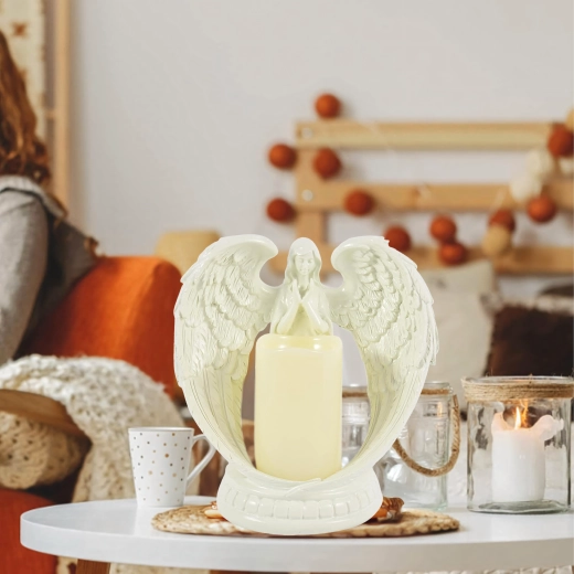 Elegantný dekoratívny anjel so sviečkou s realistickým svetlom LED. Vyrobený z leštenej živice, symbolizuje pokoj, spomienku a požehnanie. Ideálny do interiéru, na náboženské obrady, na hrob aj ako výnimočný darček.
