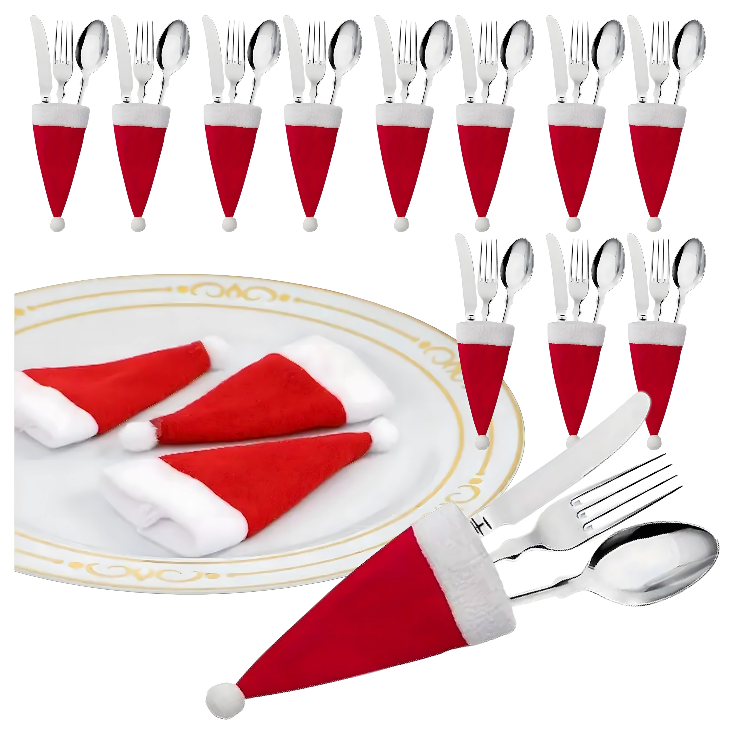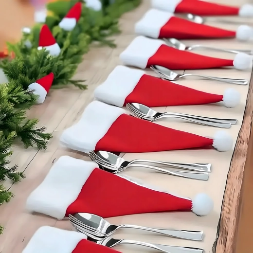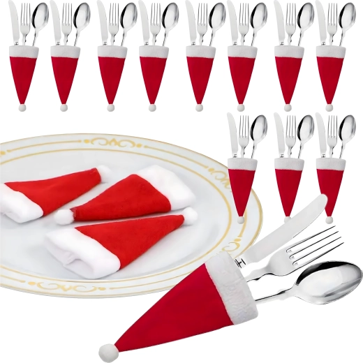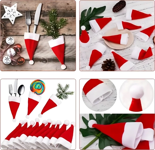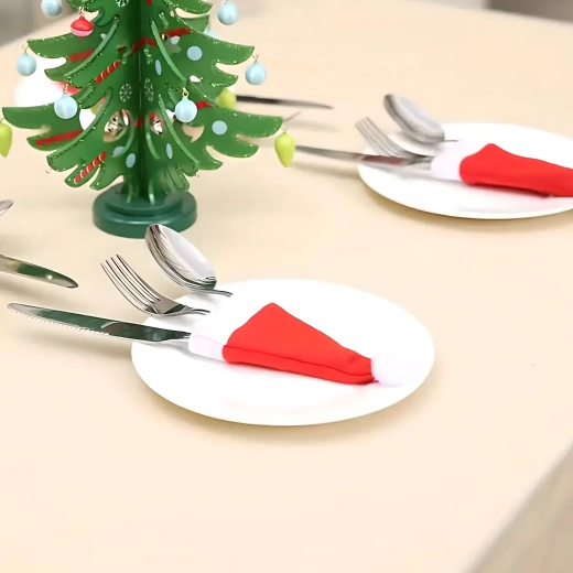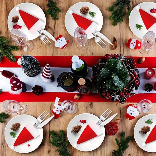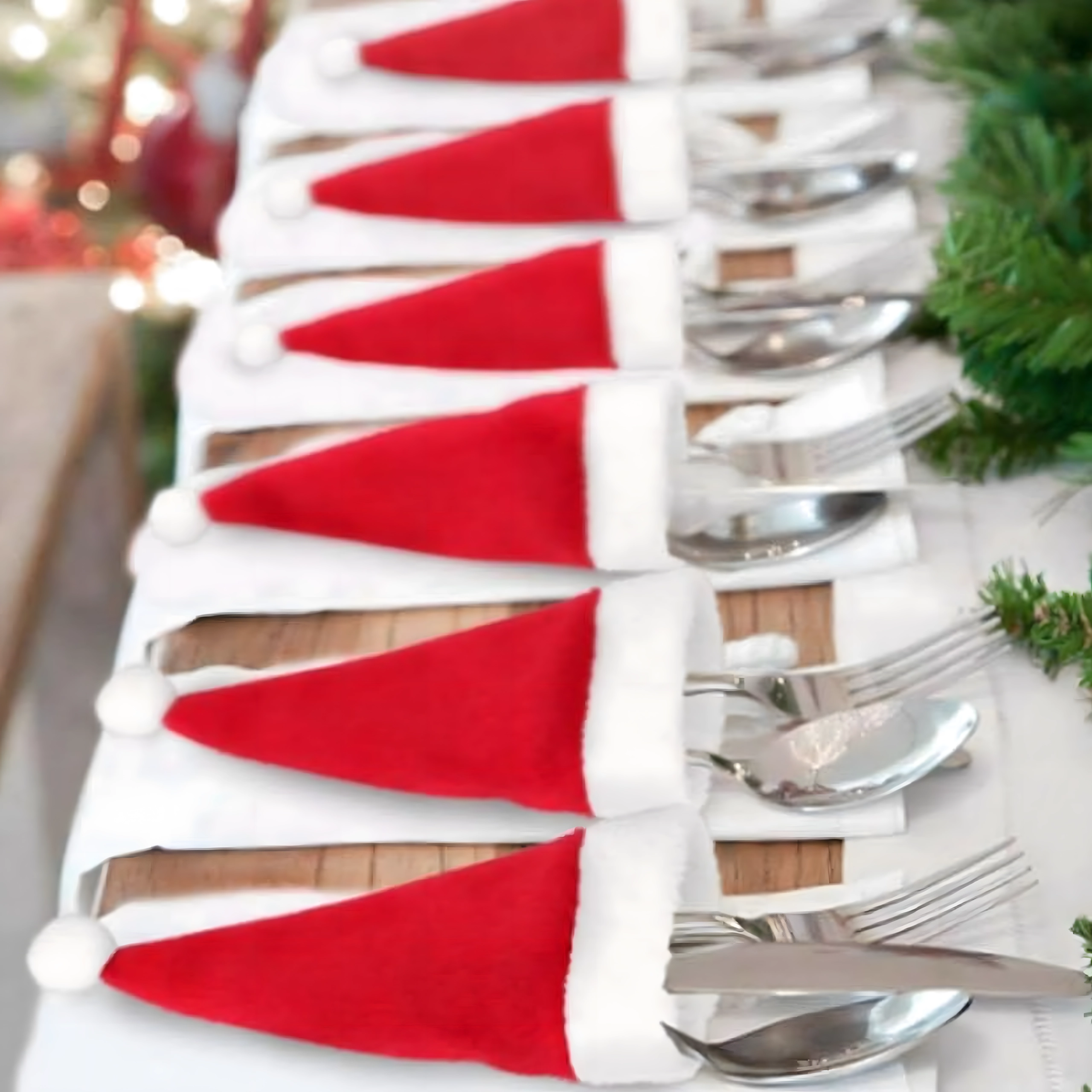 Vytvorte si doma sviatočnú náladu s roztomilými čiapočkami SANTA, ktoré elegantne usporiadajú príbory a zároveň ozdobia každý tanier. Mäkký textilný materiál je príjemný na dotyk, vrecúška sú odolné a jednoducho sa udržiavajú praním.