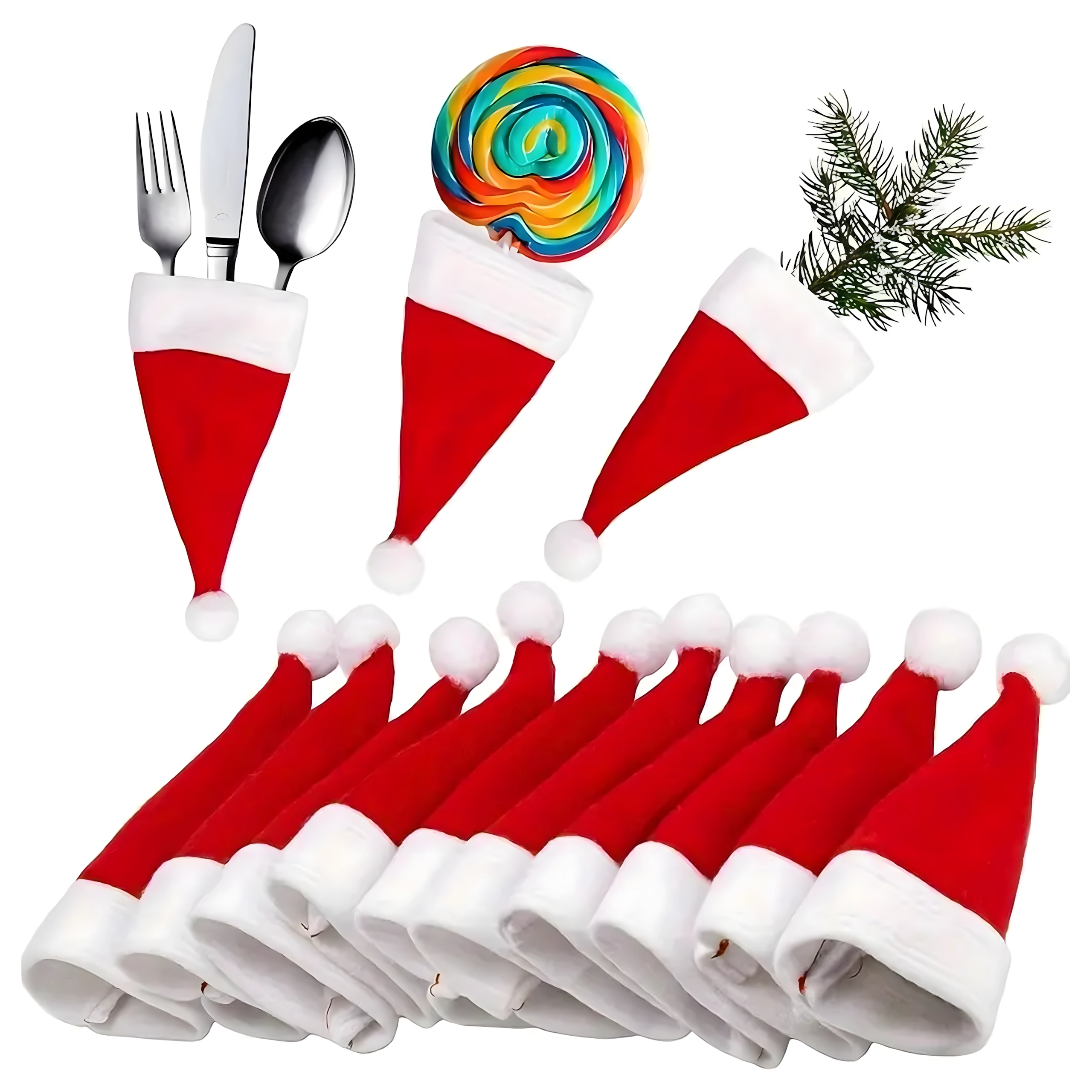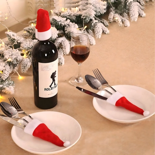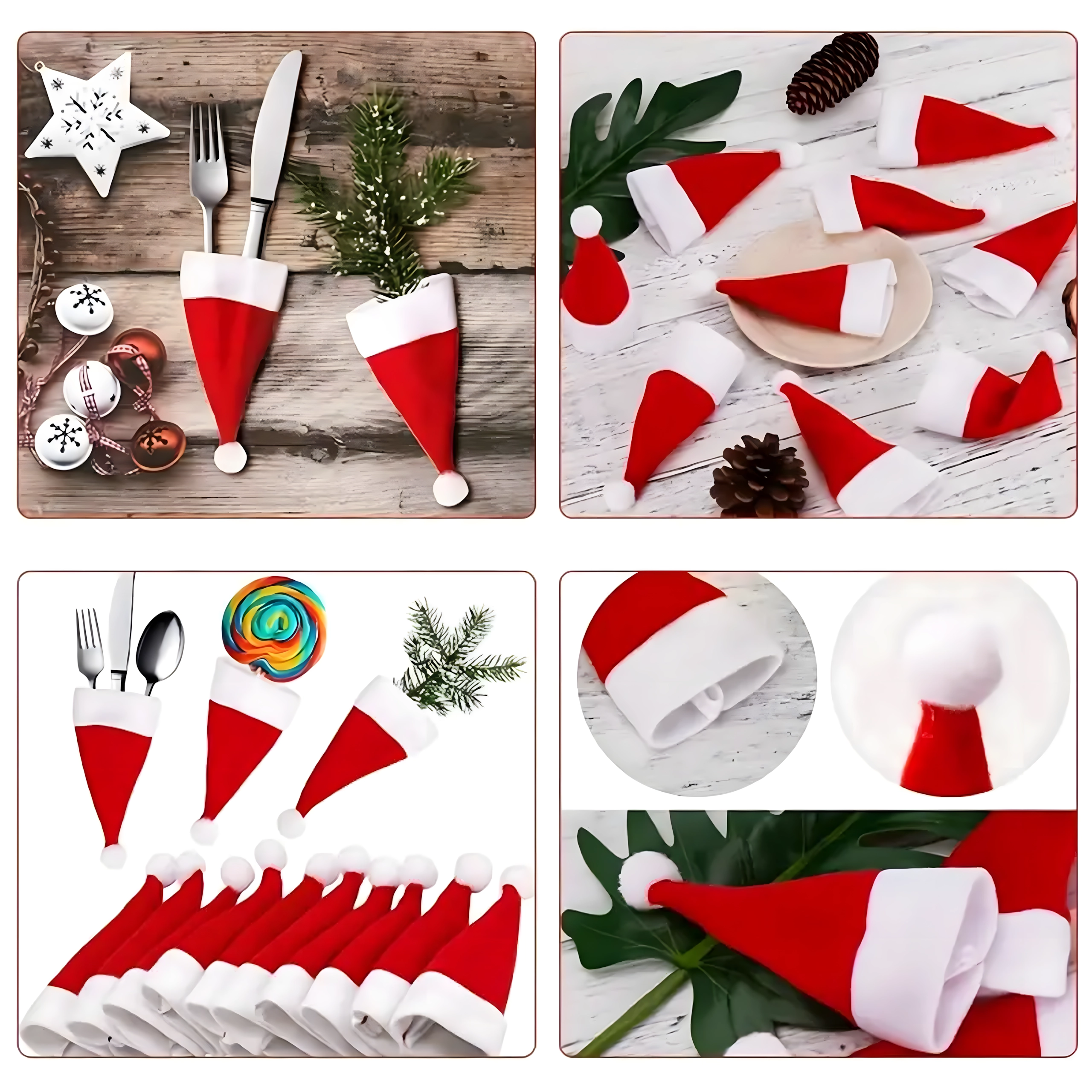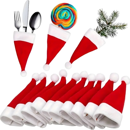 Vytvorte si doma sviatočnú náladu s roztomilými čiapočkami SANTA, ktoré elegantne usporiadajú príbory a zároveň ozdobia každý tanier. Mäkký textilný materiál je príjemný na dotyk, vrecúška sú odolné a jednoducho sa udržiavajú praním.