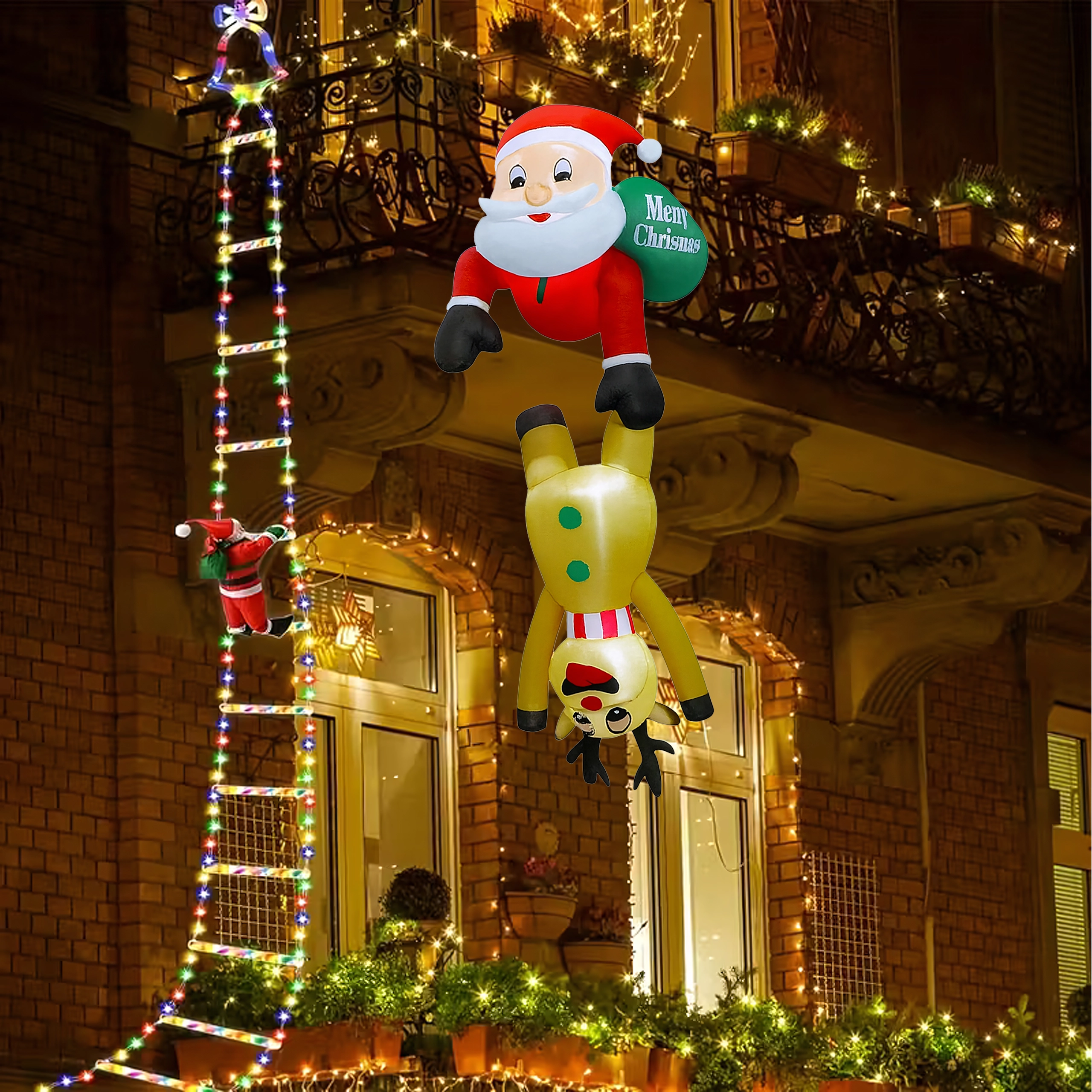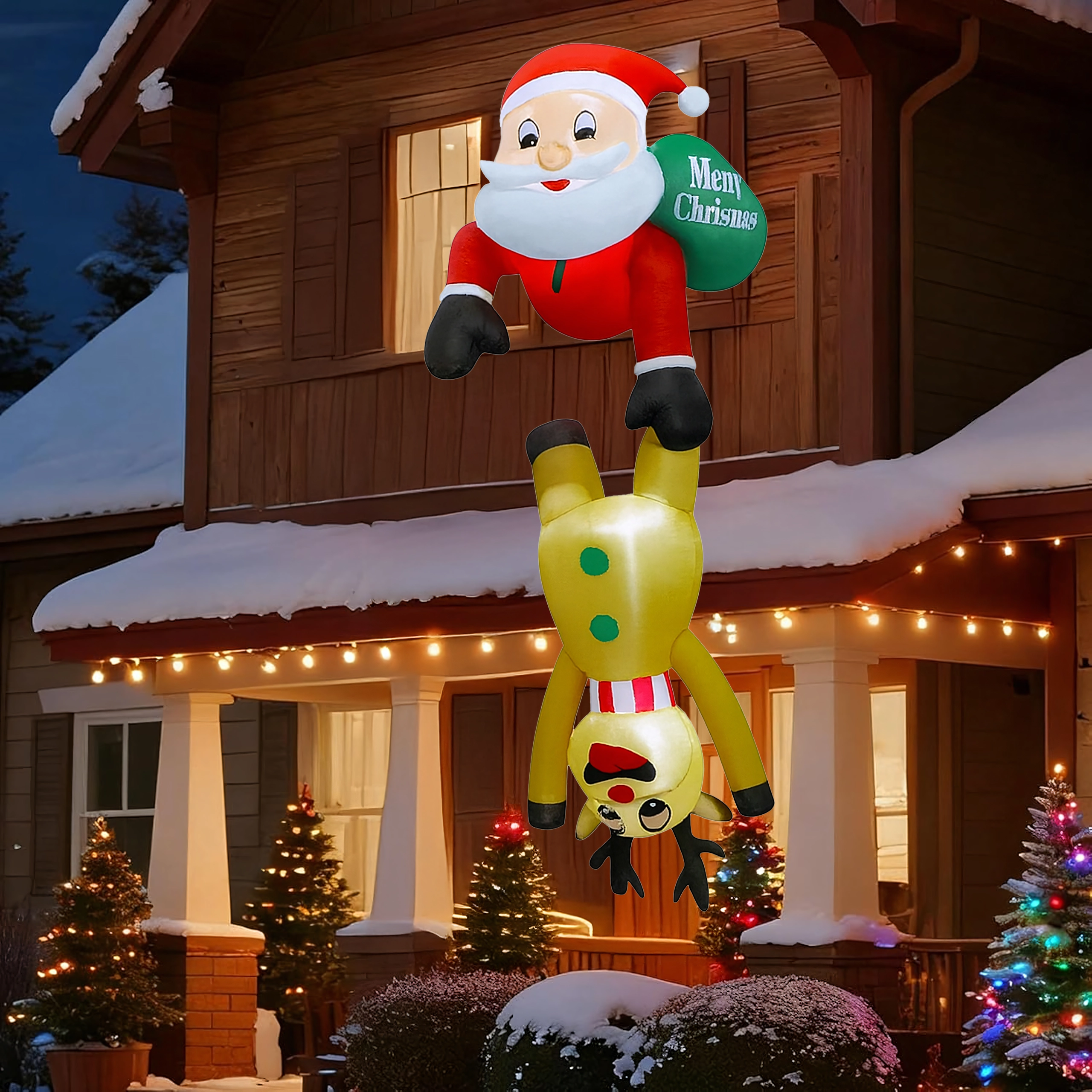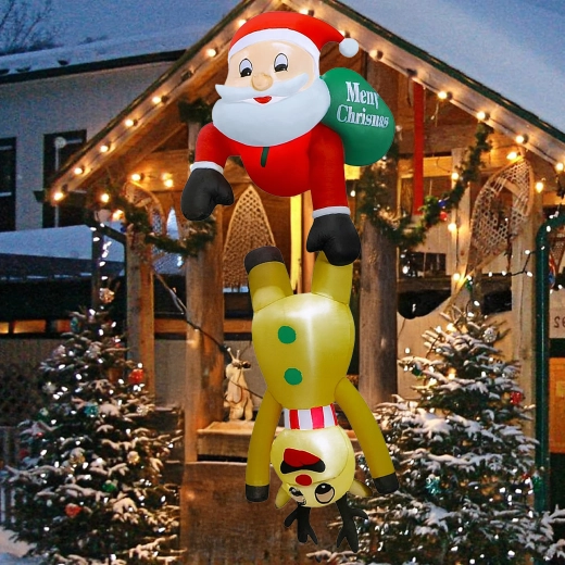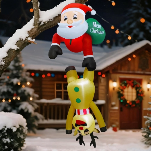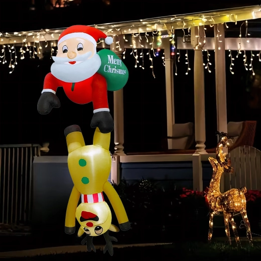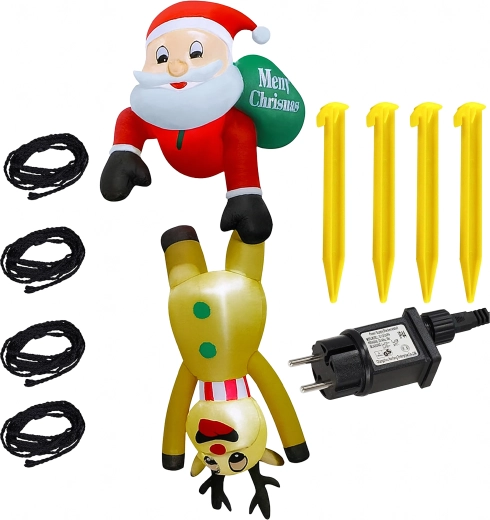 Táto originálna vianočná dekorácia priťahuje pozornosť svojím nápaditým motívom Mikuláša „visiaceho“ na sobovi a vytvára príjemnú, sviatočnú atmosféru. LED osvetlenie zabezpečuje efektný vzhľad aj počas tmavých zimných večerov, zatiaľ čo pevný polyester odolá vrtochom počasia.
