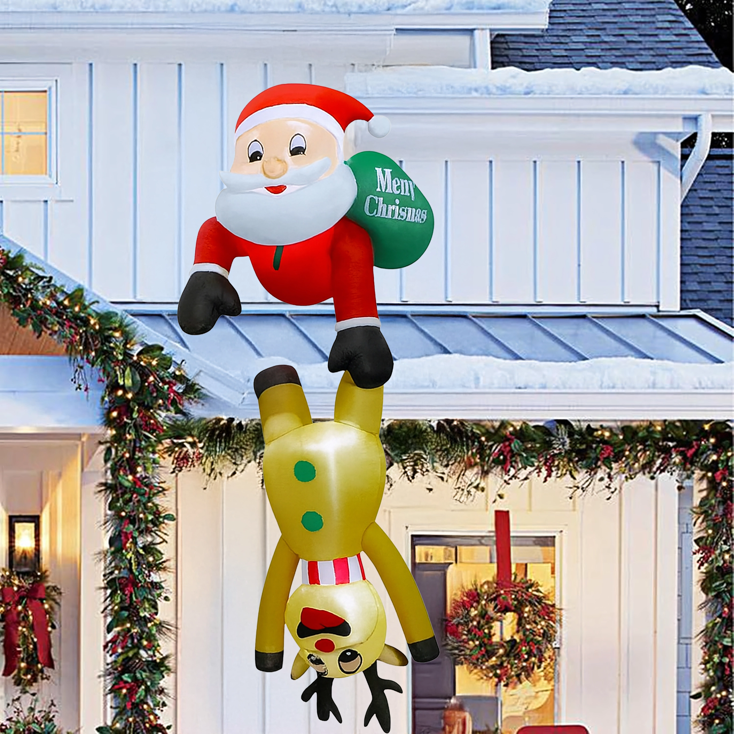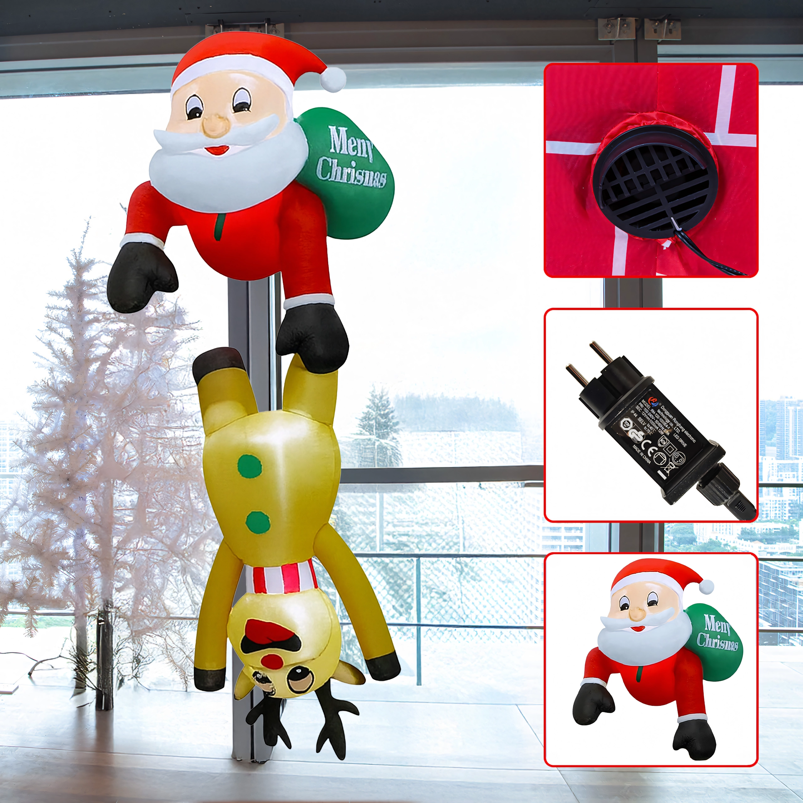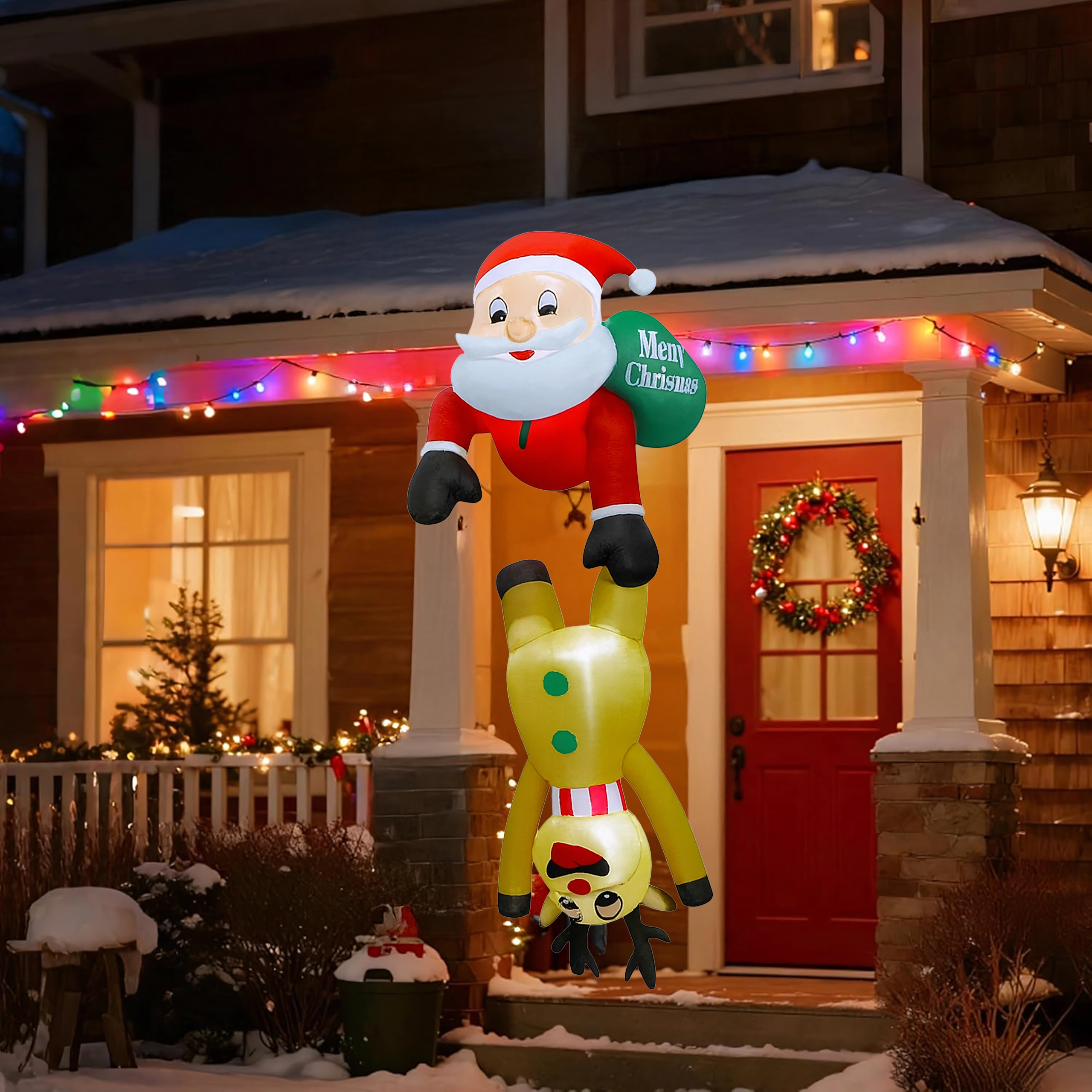 Táto originálna vianočná dekorácia priťahuje pozornosť svojím nápaditým motívom Mikuláša „visiaceho“ na sobovi a vytvára príjemnú, sviatočnú atmosféru. LED osvetlenie zabezpečuje efektný vzhľad aj počas tmavých zimných večerov, zatiaľ čo pevný polyester odolá vrtochom počasia.