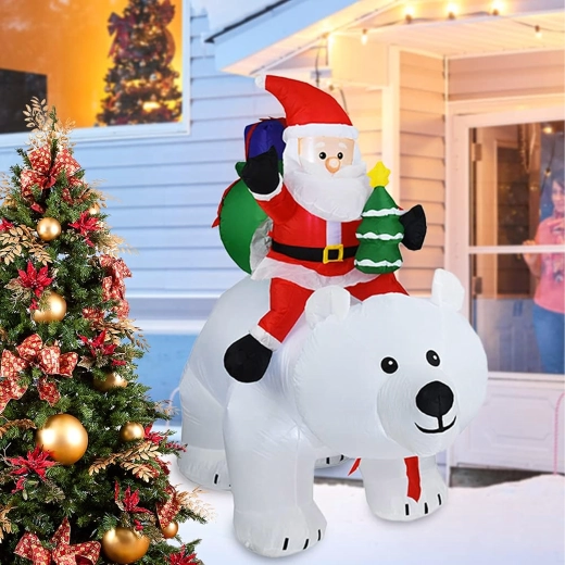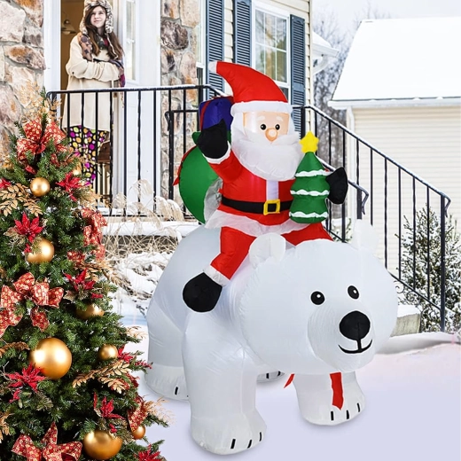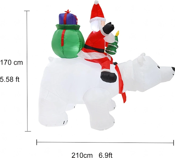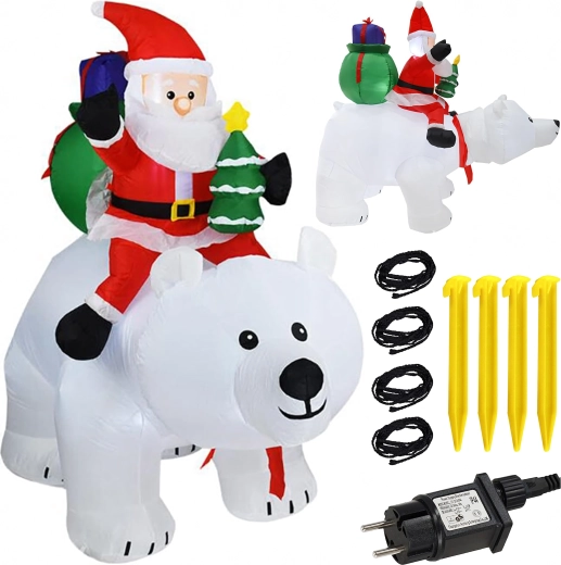 Vytvorte kúzelnú sviatočnú kulisu s pôsobivou nafukovacou dekoráciou vysokou 210 cm. Vďaka LED osvetleniu vynikne za súmraku aj v noci, zatiaľ čo tichý ventilátor zaistí rýchle a pohodlné sprevádzkovanie. Pevný materiál s vodeodolnou úpravou je ideálny do záhrady, na terasu aj do interiéru.