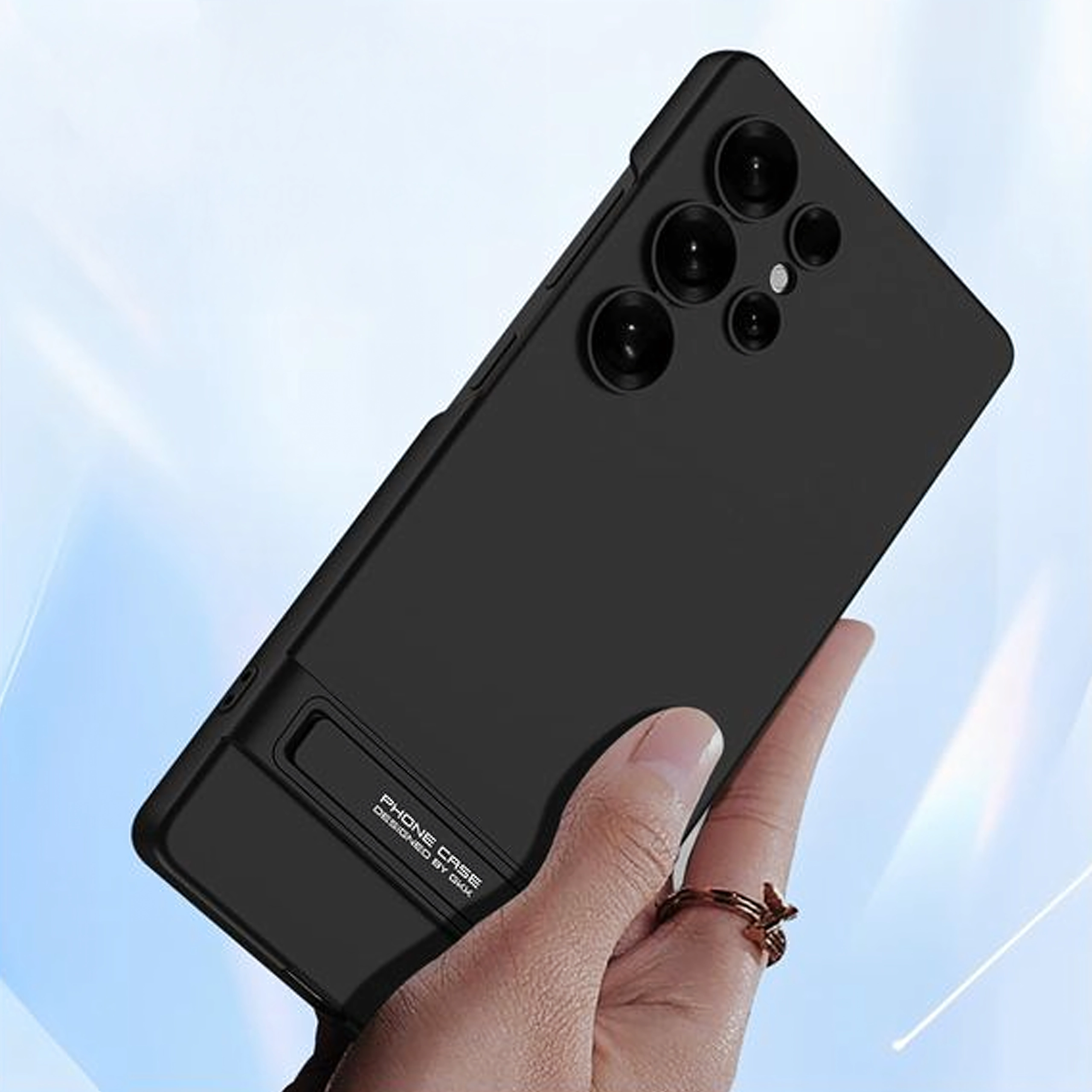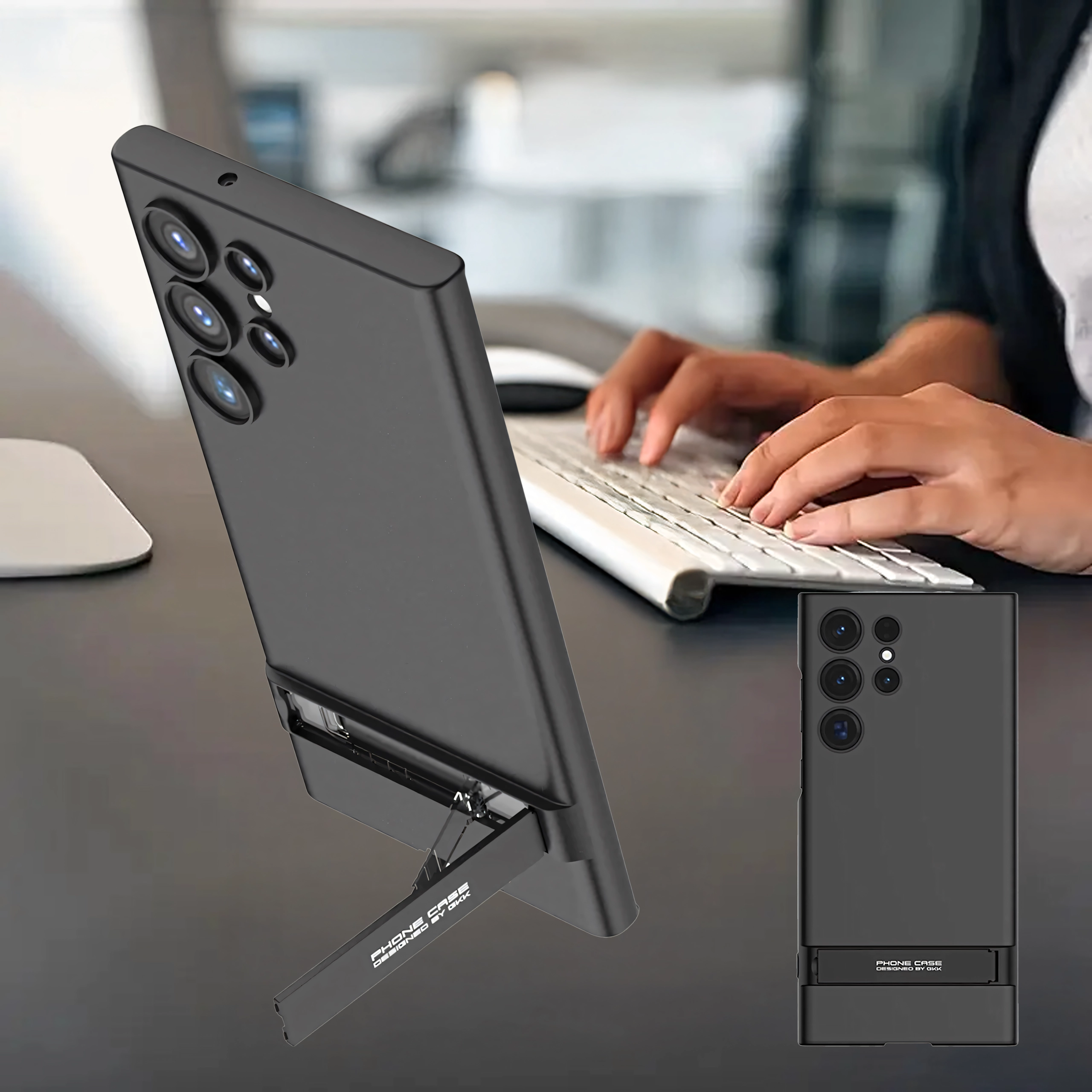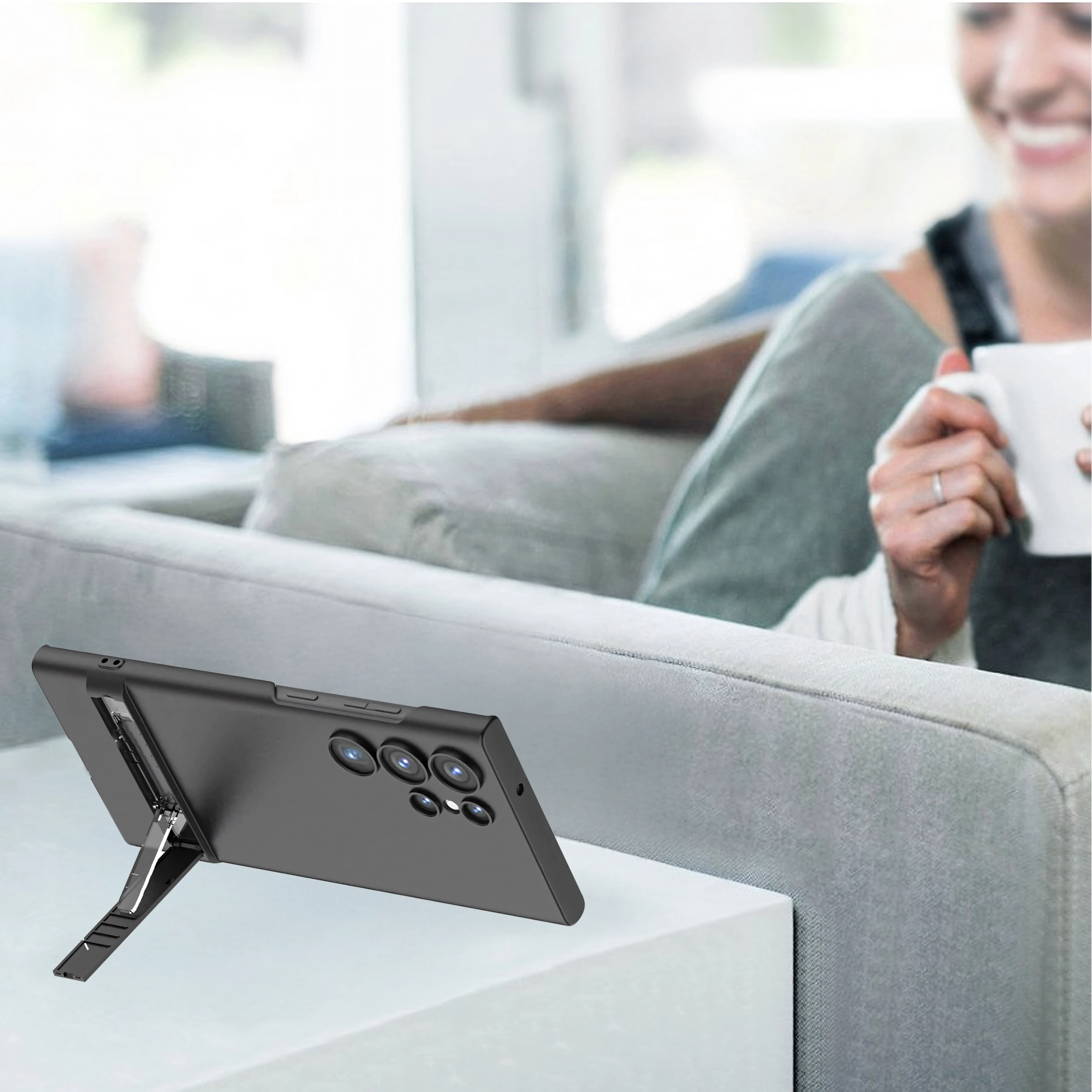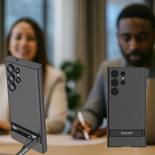 Integrovaný stojan umožňuje pohodlné sledovanie obsahu na šírku aj na výšku, ideálne pre filmy, hry alebo videohovory. Presné výrezy zabezpečujú ľahký prístup ku všetkým portom a tlačidlám, takže telefón môžete používať bez obmedzení.