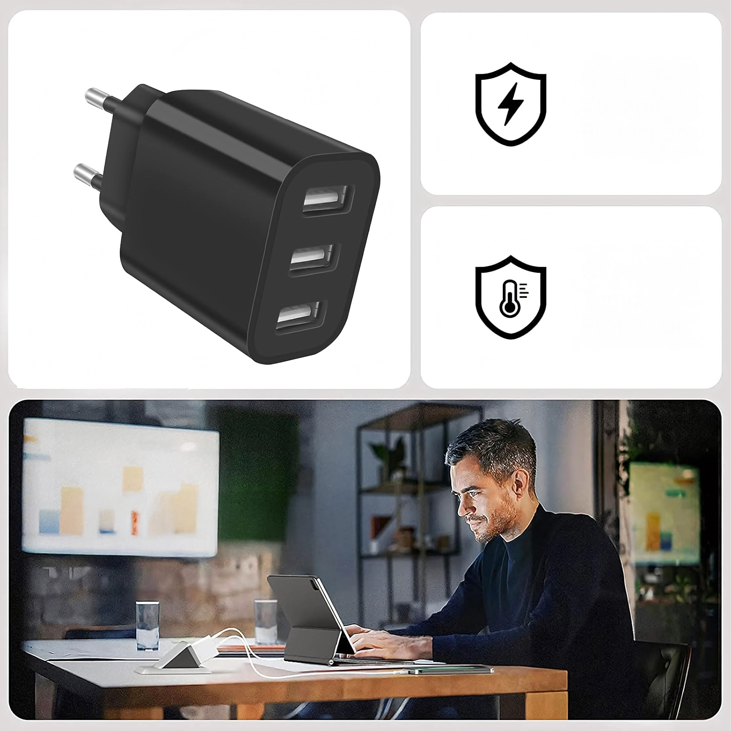 Táto univerzálna nabíjačka v tvare kompaktnej kocky zaujme jednoduchým dizajnom, spoľahlivým výkonom a bezpečnou prevádzkou. Nabíjajte pohodlne telefóny, slúchadlá, powerbanky či ďalšiu drobnú elektroniku z jedného zdroja.