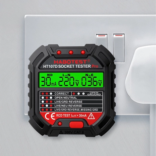 HABOTEST HT107D je praktický nástroj na rýchlu kontrolu sieťových zásuviek. Vďaka jasnému LCD displeju poskytuje prehľadné informácie o stave zapojenia a napätí, takže okamžite zistíte, či je zásuvka bezpečná na použitie. Integrovaný test RCD umožní overiť funkčnosť prúdového chrániča a zvýšiť ochranu pred úrazom elektrickým prúdom.