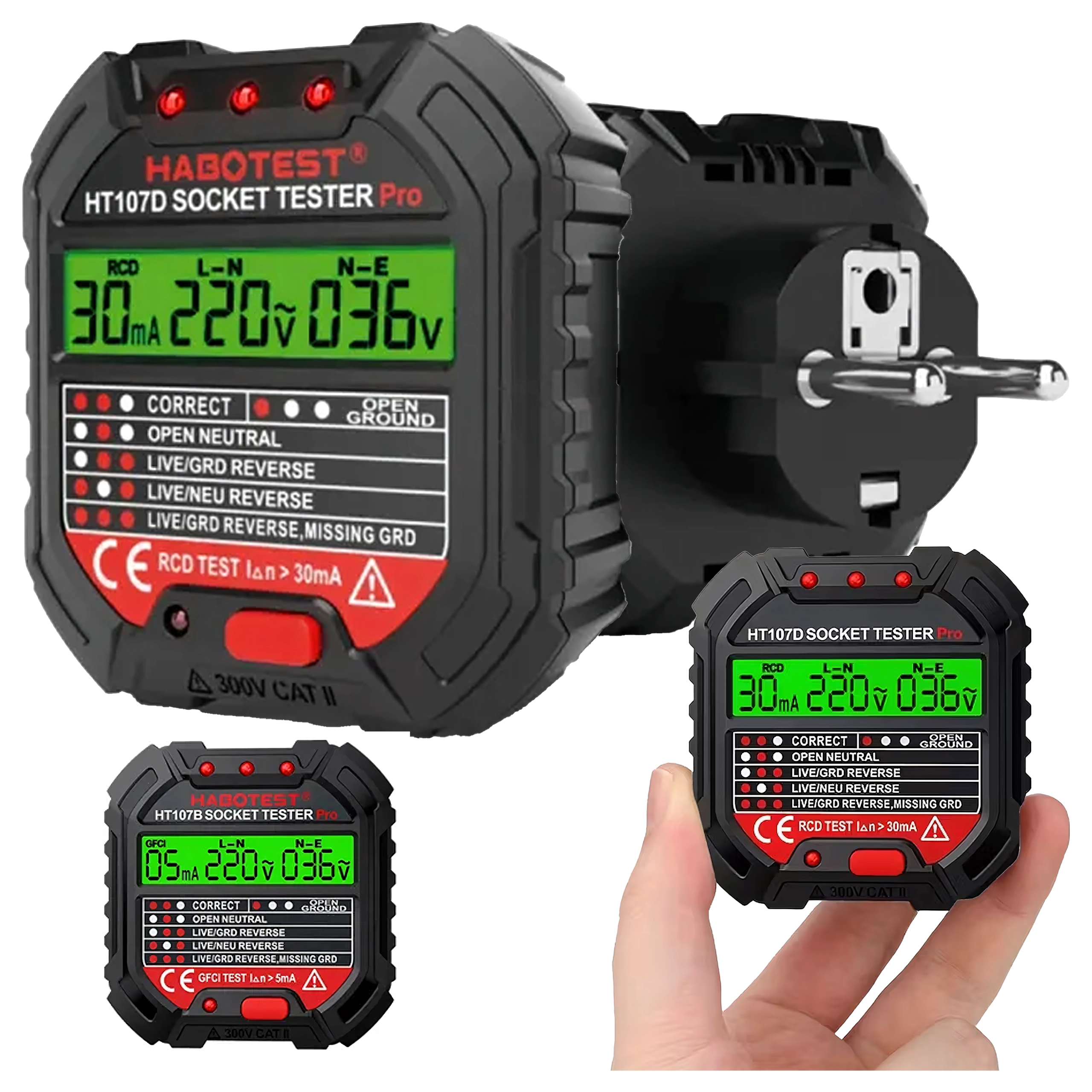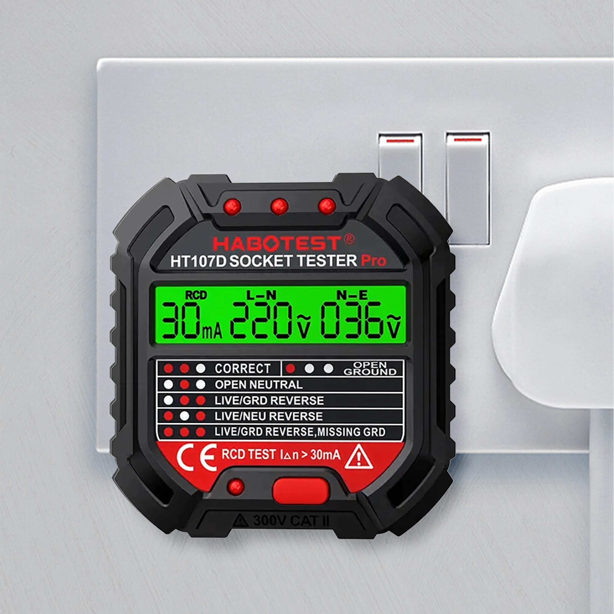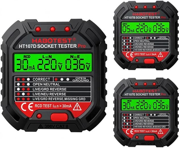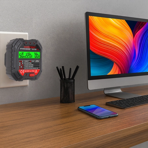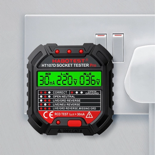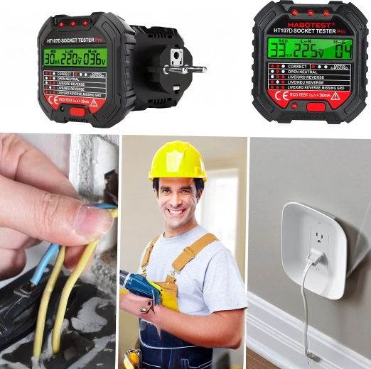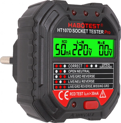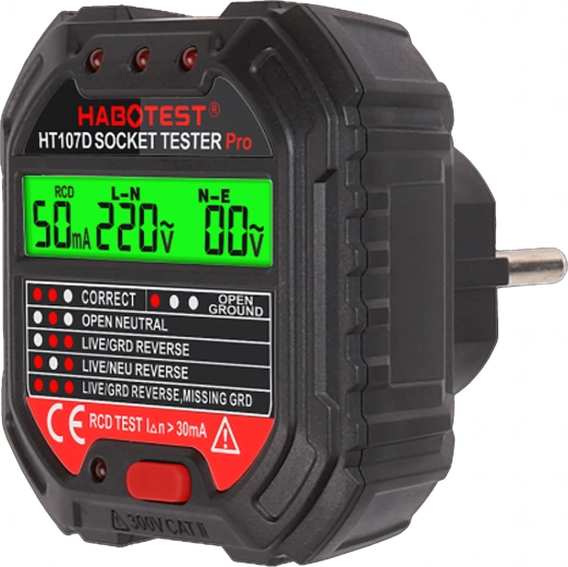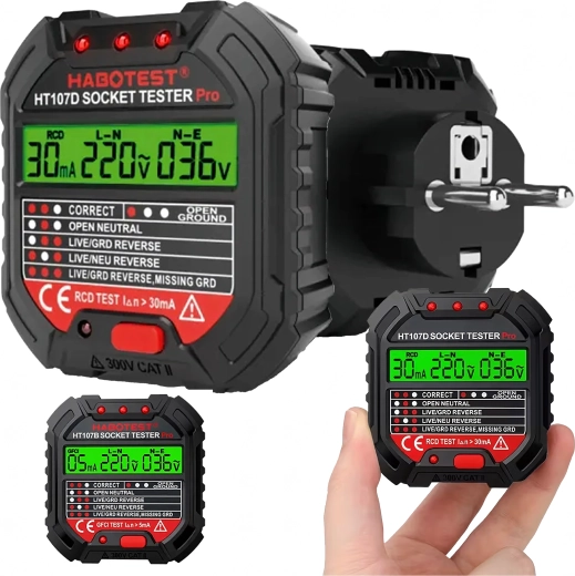 Zaistite si bezpečnosť doma, v kancelárii aj dielni vďaka šikovnému testeru napätia HABOTEST HT107D. Tento kompaktný a veľmi funkčný tester zásuviek s LCD displejom rýchlo odhalí chyby v elektroinštalácii a pomôže predísť poruchám a nákladným opravám. Podporuje tiež test RCD (prúdového chrániča) na overenie správnej ochrany obvodu.