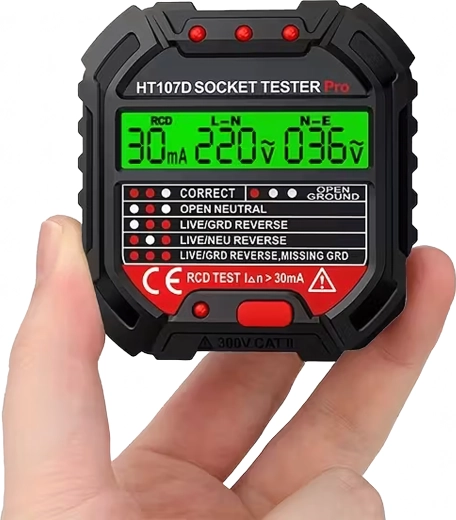 Tester je ideálny pre elektrikárov, údržbu aj domáce použitie. Jeho používanie je rýchle a intuitívne – stačí ho zapojiť do zásuvky a sledovať indikáciu na displeji. Ušetrí čas pri hľadaní chýb, ako je zlé uzemnenie, nesprávne zapojený fázový a nulový vodič alebo absencia ochranného vodiča.