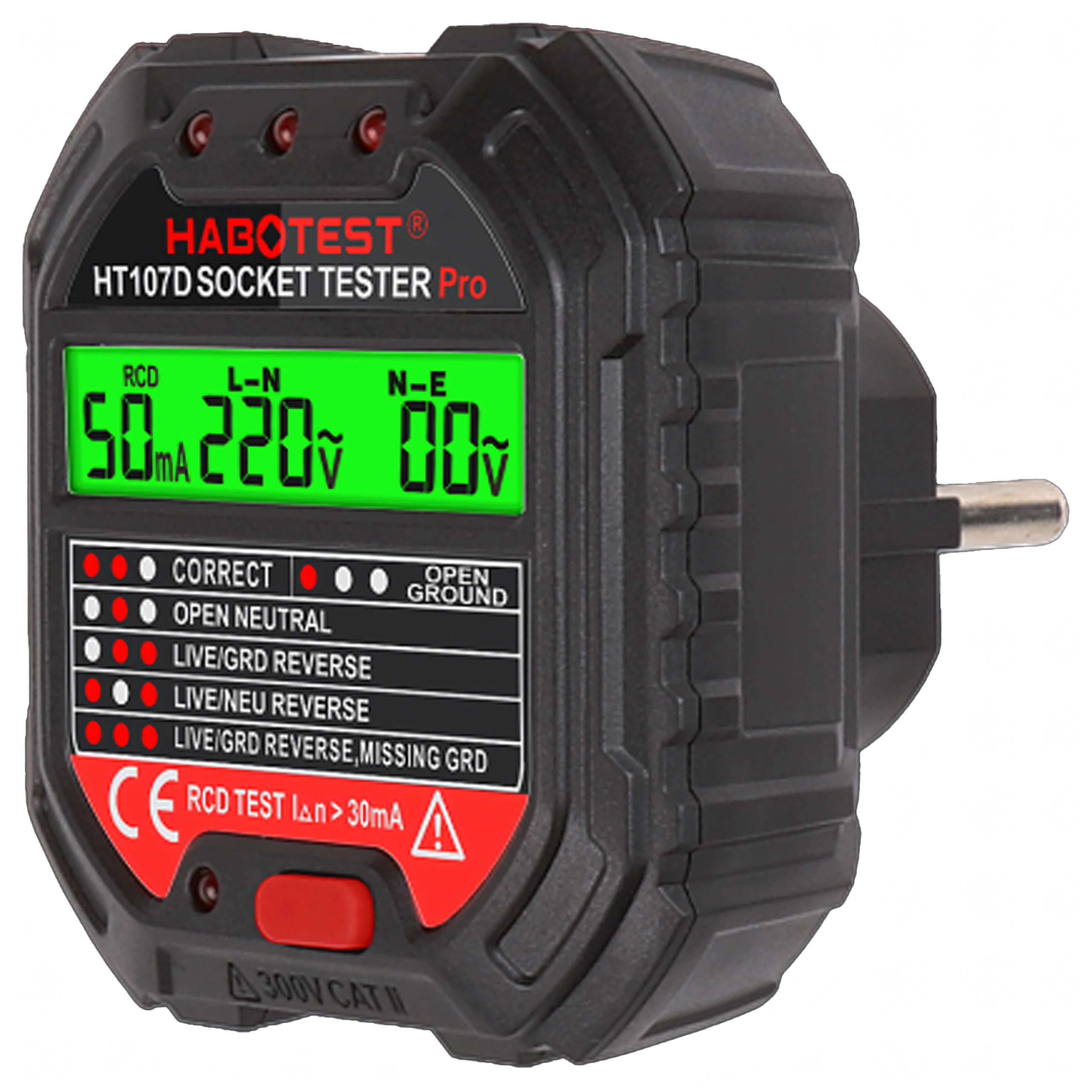 Tester napätia zásuvky s LCD a testom RCD HABOTEST HT107D