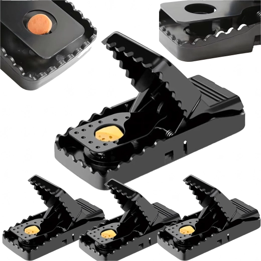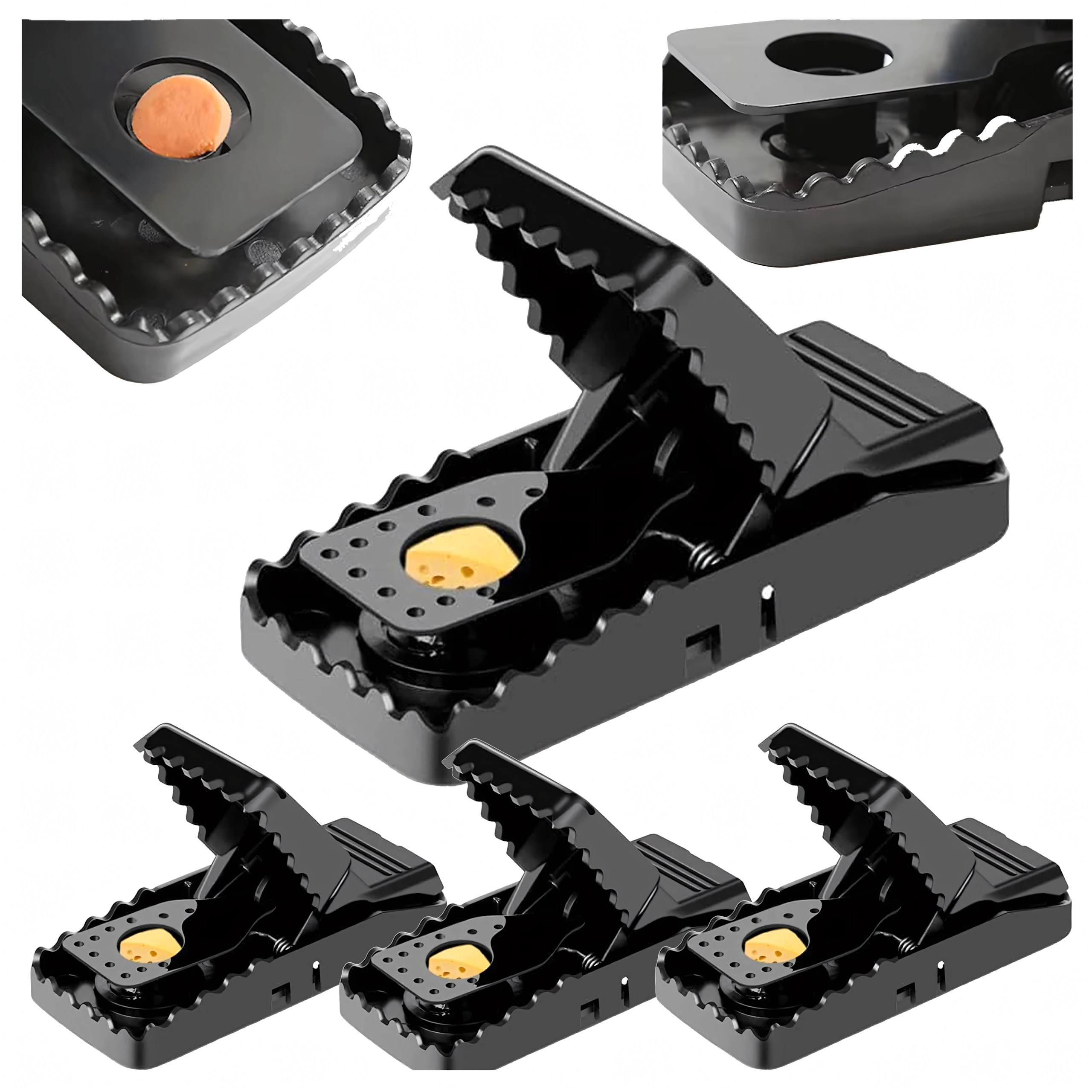 Praktická sada 4 pascí na myši a potkany z odolného plastu na rýchle a hygienické hubenie hlodavcov v domácnosti. Pasca má silnú pružinu, jednoduché nastavenie pomocou páčky a integrovaný zásobník na návnadu na bezpečné a efektívne použitie v kuchyni, špajzi, garáži či pivnici.