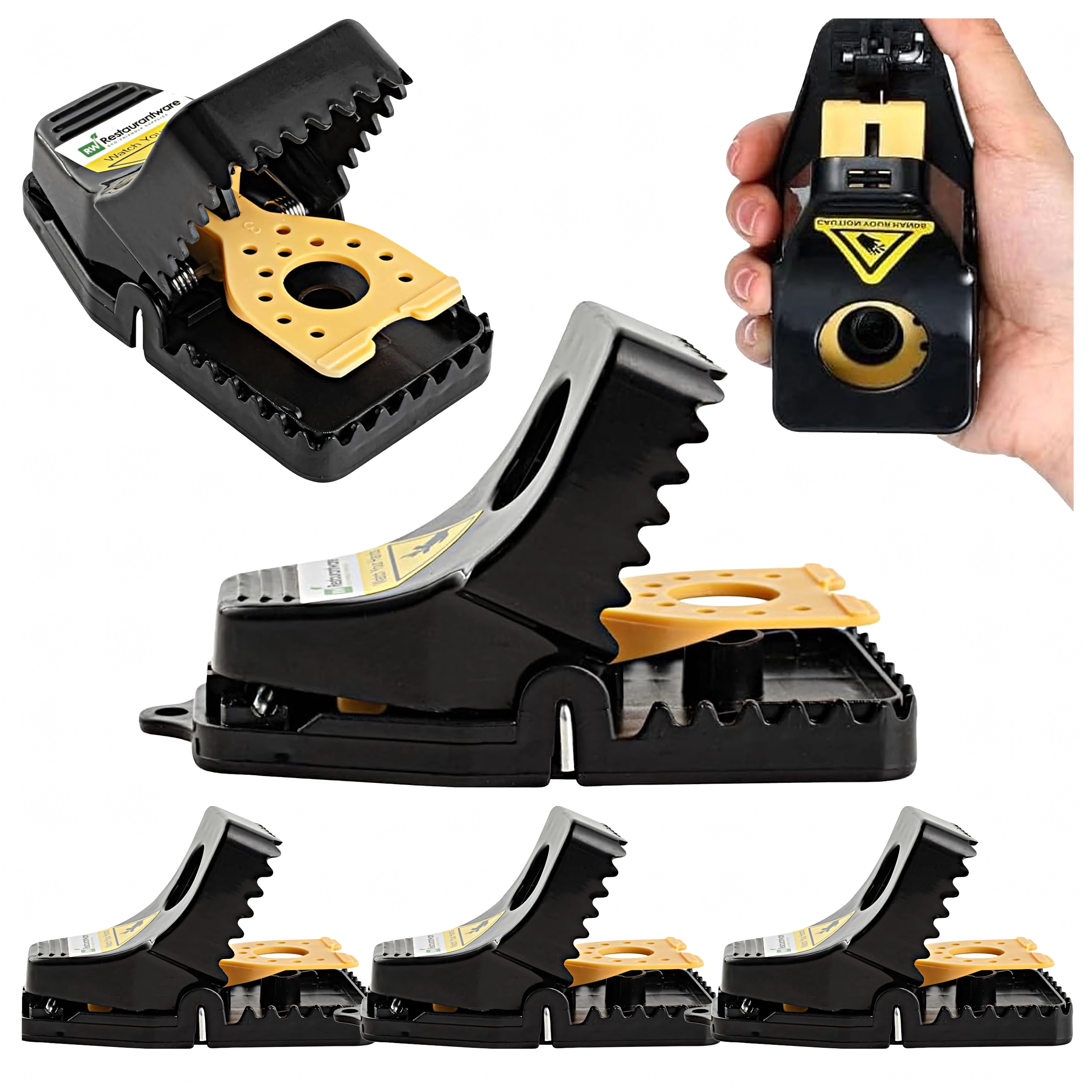 Praktická sada 4 plastových pascí na myši a potkany na rýchle a hygienické odstránenie škodcov v domácnosti. Pasca má silnú pružinu, jednoduché nastavenie pomocou páčky a zásobník na návnadu pre bezpečnú manipuláciu. Vďaka kompaktným rozmerom ju umiestnite do kuchyne, špajze, garáže aj pivnice. Opakovane použiteľná a odolná voči poveternostným vplyvom.