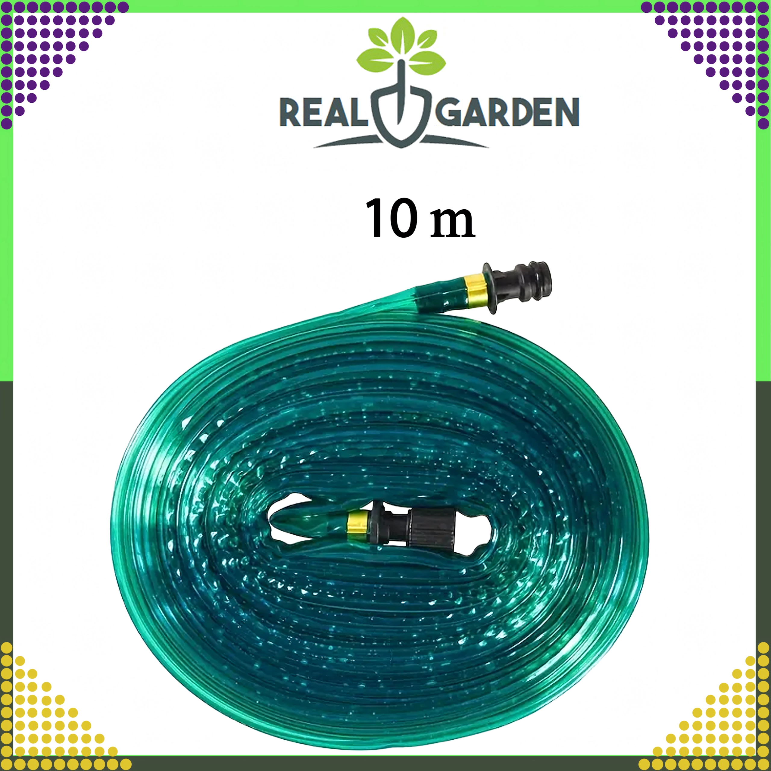 Praktická a pružná kvapková hadica s dĺžkou 10 m na efektívne zavlažovanie rastlín v záhradách, na záhonoch aj v skleníkoch. Zabezpečuje úsporné, rovnomerné a cielené dodávanie vody priamo ku koreňom, ľahko sa inštaluje a je kompatibilná s bežnými rýchlospojkami.