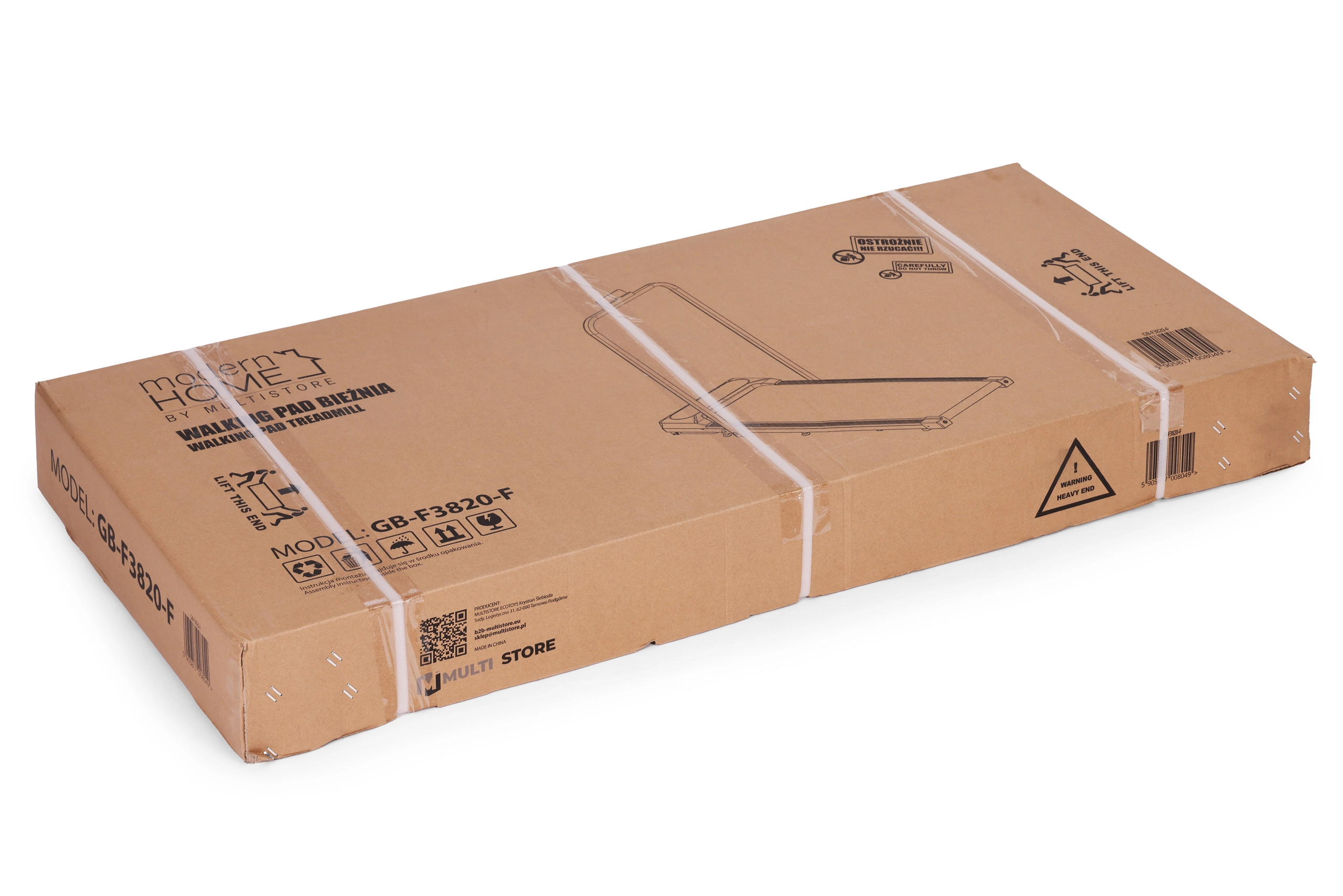 Odolná škatuľa so spevnenými páskami chráni chodiaci pás počas prepravy a skladovania.