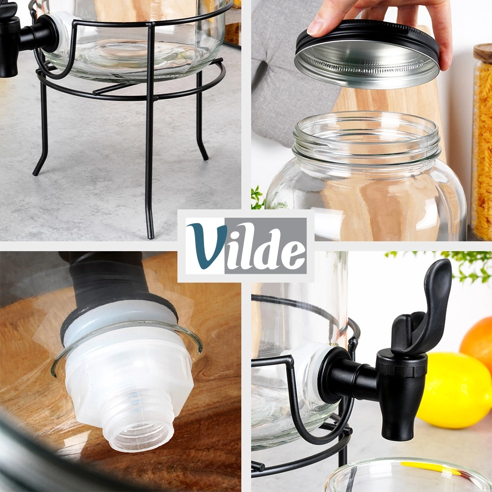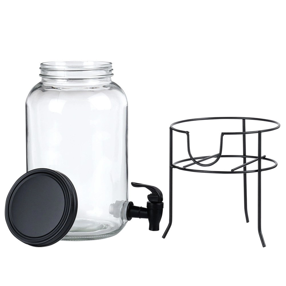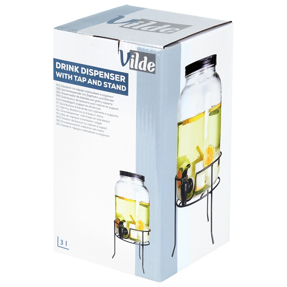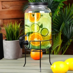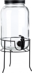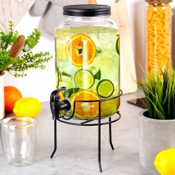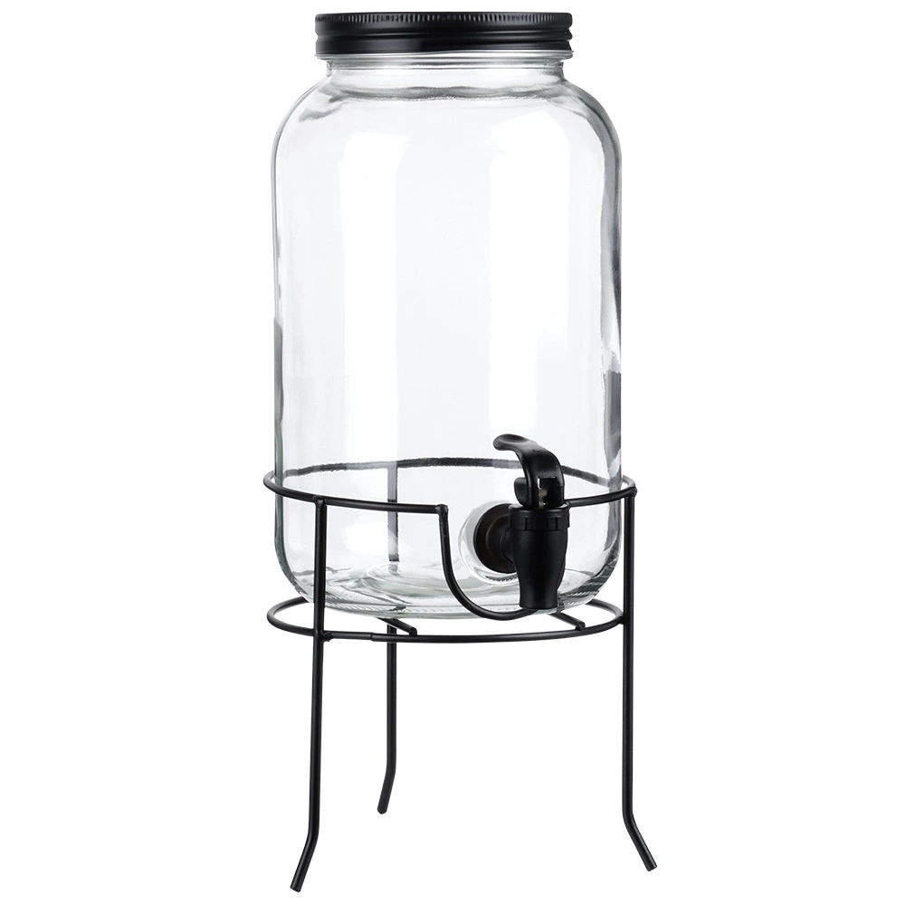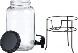 Praktický dávkovač nápojov z kvalitného silného skla s čiernym kohútikom a matným čiernym viečkom udrží vaše osviežujúce nápoje chránené pred hmyzom a nečistotami. Stabilný kovový stojan zdvihne nádobu do ideálnej výšky pre poháre, takže nalievanie je čisté a pohodlné.
