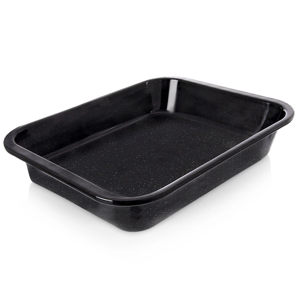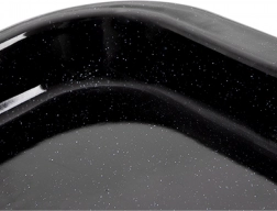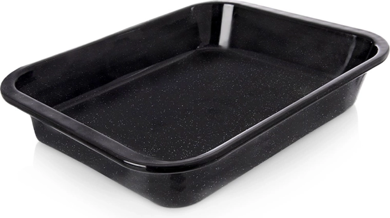 Tento hlboký obdĺžnikový plech je vyrobený z kvalitnej ocele s odolnou smaltovanou povrchovou úpravou, ktorá zaisťuje dlhú životnosť, odolnosť voči poškriabaniu a jednoduchú údržbu. Hladký povrch napomáha menšiemu pripaľovaniu a umožňuje ľahké uvoľnenie jedál.