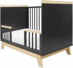 Postieľku ľahko prispôsobíte aktuálnym potrebám: má tri výškové úrovne roštu a tri vyberateľné priečky pre jednoduchší prístup. Len čo dieťa podrastie, možno odstrániť jednu bočnicu a nahradiť ju dodávanou bezpečnostnou zábranou, ktorá podporí samostatnosť a zároveň ochráni pred pádom.