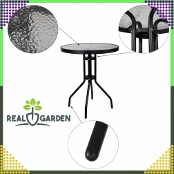 Vneste do svojho vonkajšieho posedenia štýl a funkčnosť. Okrúhly stolík s priemerom 60 cm sa skvele hodí k rannej káve, popoludňajšiemu čaju aj večernému relaxu. Tvrdené sklo je bezpečné, ľahko sa čistí a zaujme dekoratívnym efektom pripomínajúcim vlniacu sa vodu.