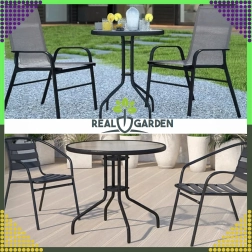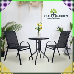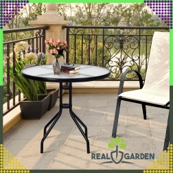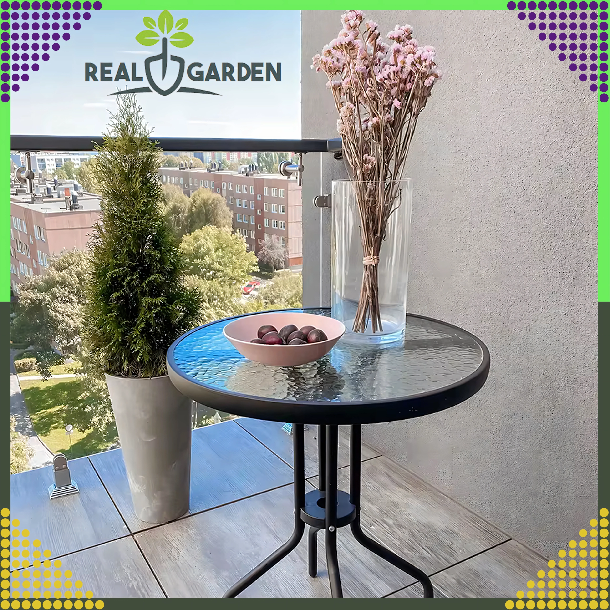 Robustný rám z ocele s práškovým lakovaním dodáva stabilitu a chráni proti korózii, takže je stolík ideálny do exteriéru – balkón, terasa, patio aj záhrada. Vďaka univerzálnej čiernej farbe ladí s väčšinou záhradného nábytku a pôsobí moderne a elegantne.