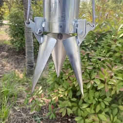 Bočná páka s pohodlným úchopom umožňuje kontrolované otvorenie čeľustí a presné umiestnenie rastliny do požadovanej hĺbky.
