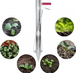 Tento univerzálny ručný sadzač uľahčí sadenie cibuľovín, zeleninových aj kvetinových sadeníc a pomôže aj s precíznym odstránením burín. Dlhá, pevná oceľová konštrukcia s ostrou špičkou sa bez námahy zareže do pôdy a pákový mechanizmus zaistí rýchle uvoľnenie pôdneho vývrtu aj jednoduché vloženie rastliny.