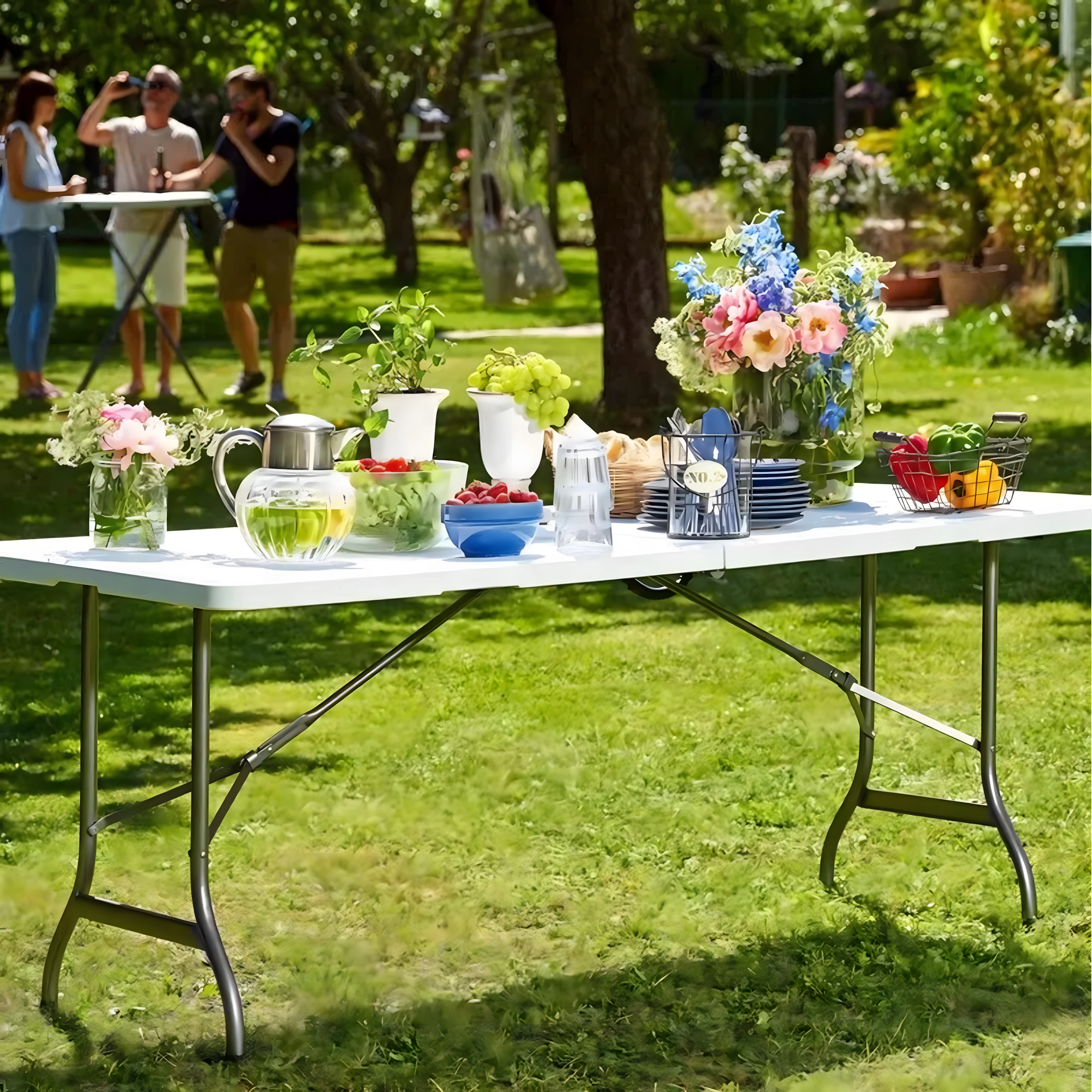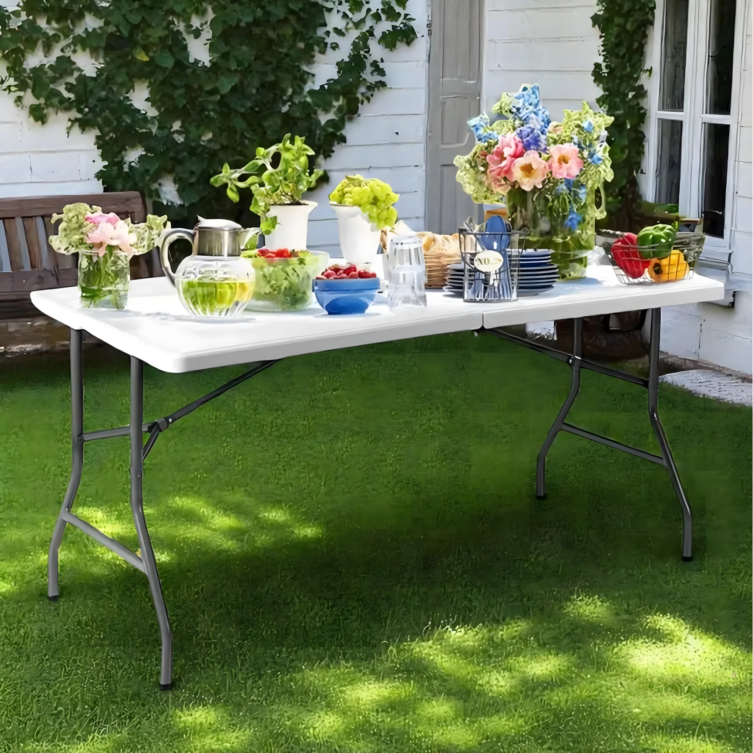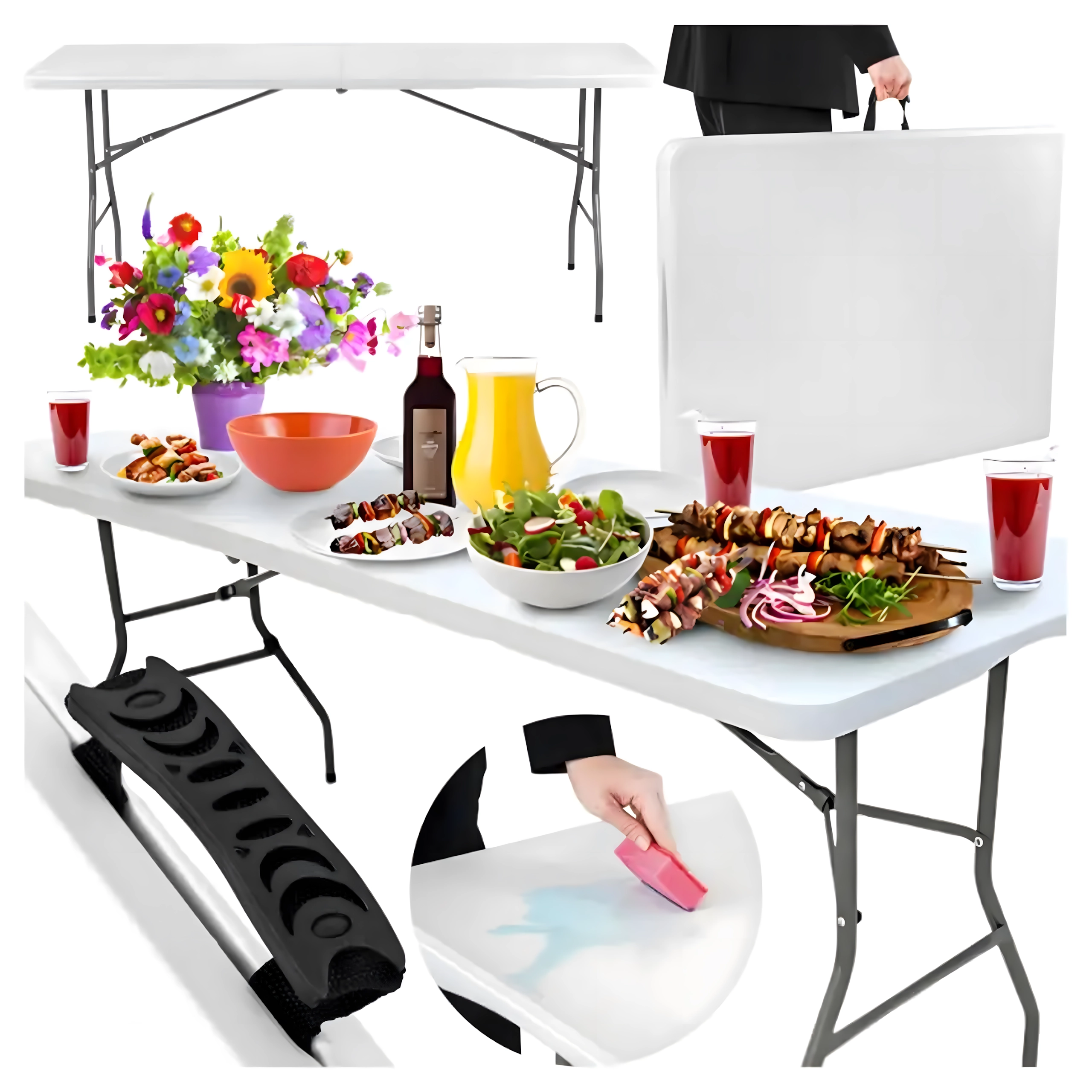 Veľký a stabilný skladací stôl poskytne spoľahlivú oporu pre občerstvenie, nápoje aj dekorácie. Hladký povrch z tvrdého plastu sa ľahko udržiava a je ideálny na vonkajšie použitie aj interiérové akcie.