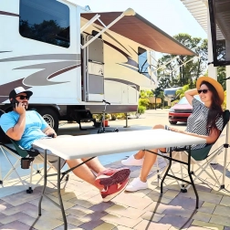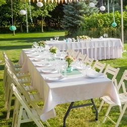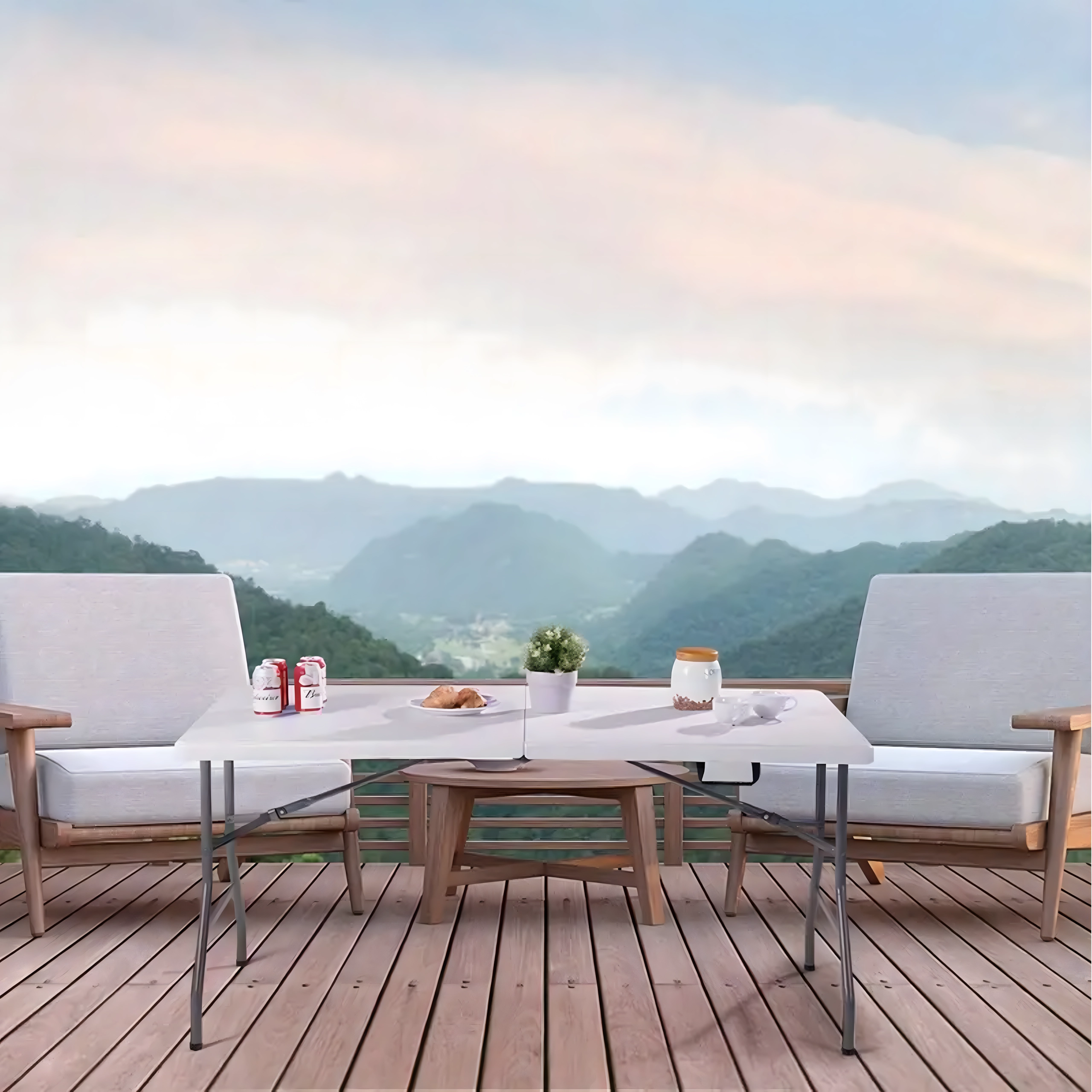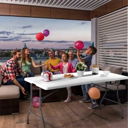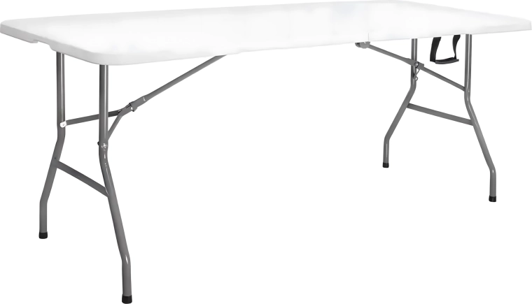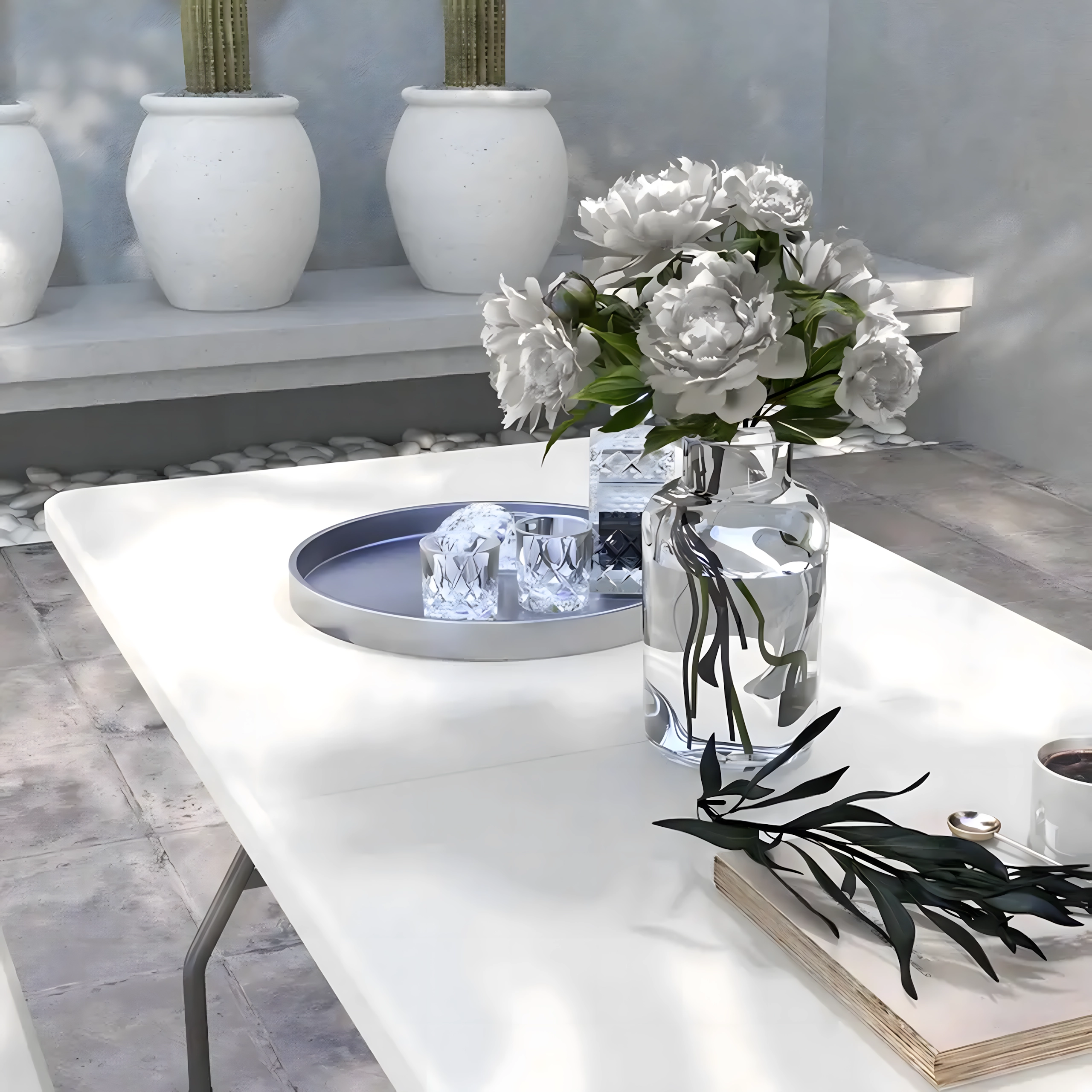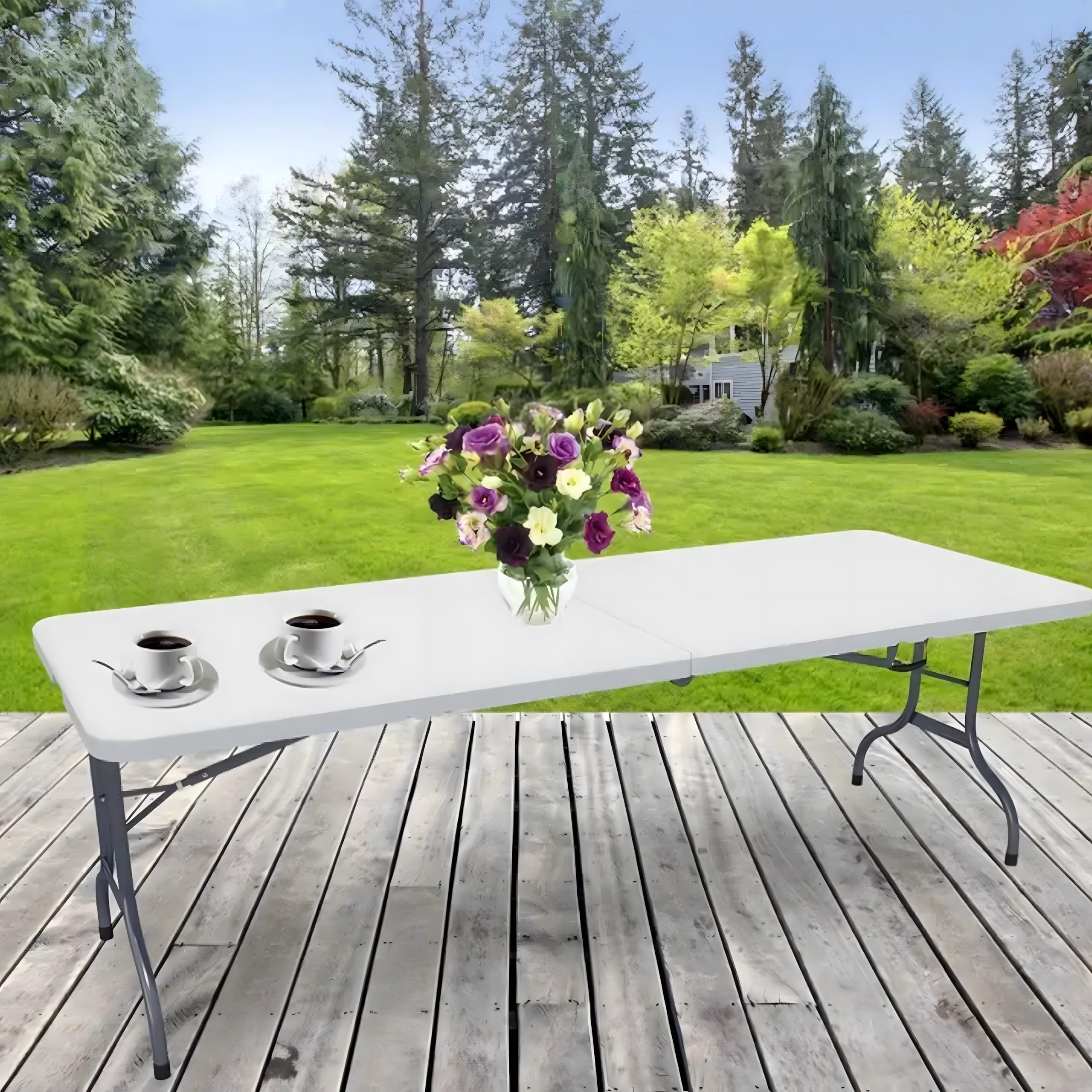 Veľký a stabilný skladací stôl poskytne spoľahlivú oporu pre občerstvenie, nápoje aj dekorácie. Hladký povrch z tvrdého plastu sa ľahko udržiava a je ideálny na vonkajšie použitie aj interiérové akcie.
