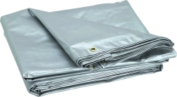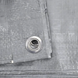 Po obvode sú rozmiestnené kovové oká na bezpečné vypnutie a priviazanie plachty k rámom, kolíkom či nákladu. Strieborná farba navyše pomáha odrážať slnečné lúče a znižovať prehrievanie zakrytých vecí.