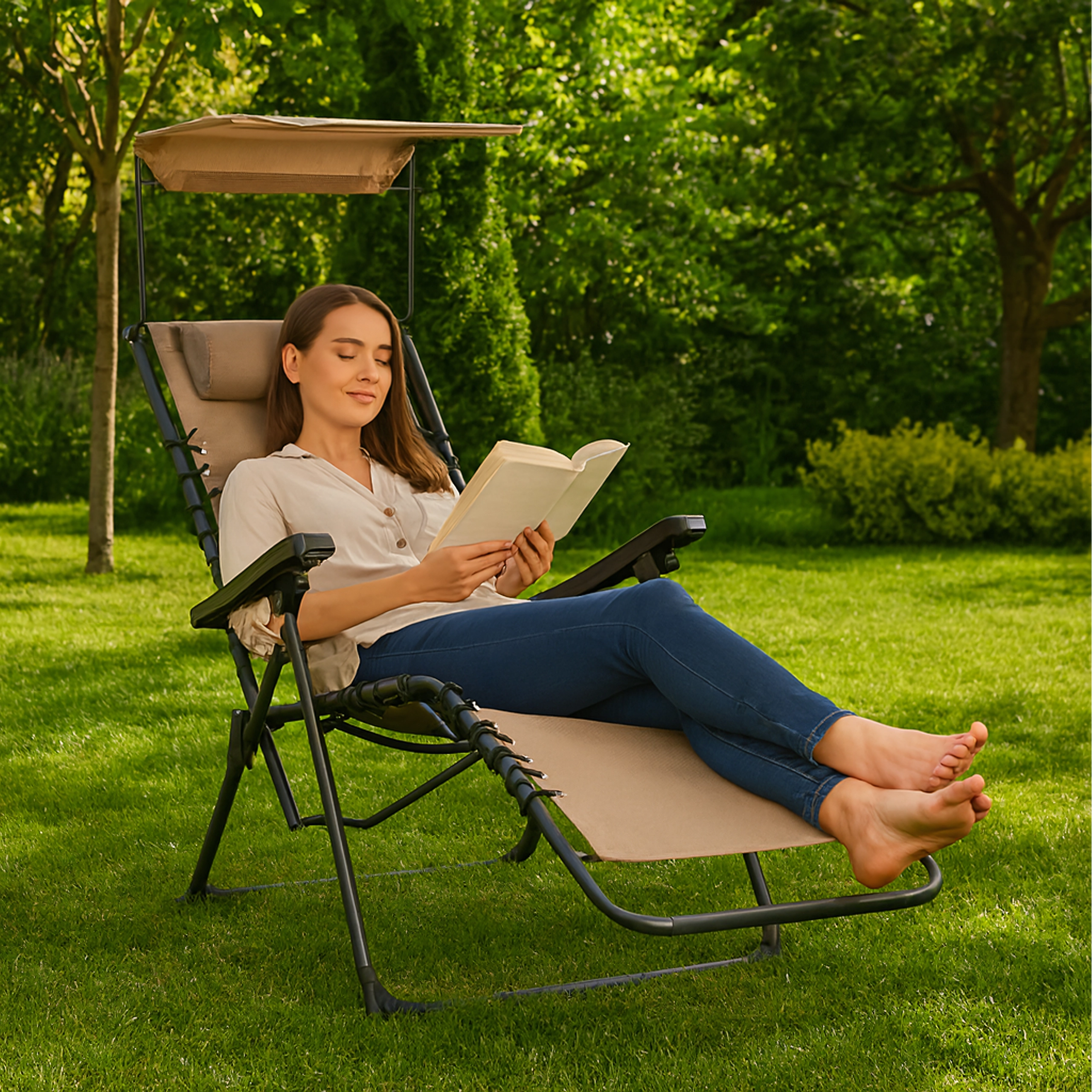 Integrovaný baldachýn si ľahko nastavíte podľa slnka – čítajte, oddychujte a relaxujte bez oslnenia.