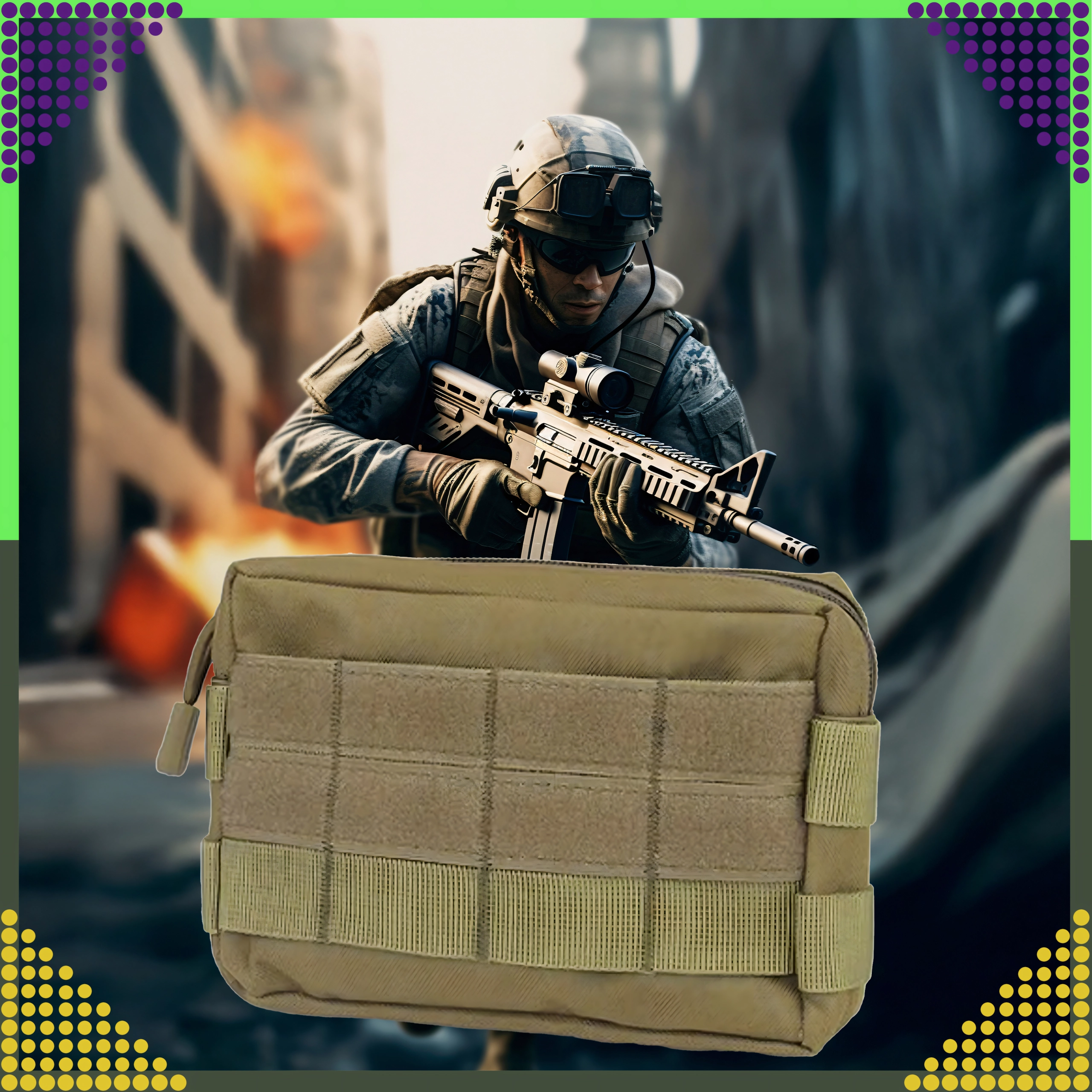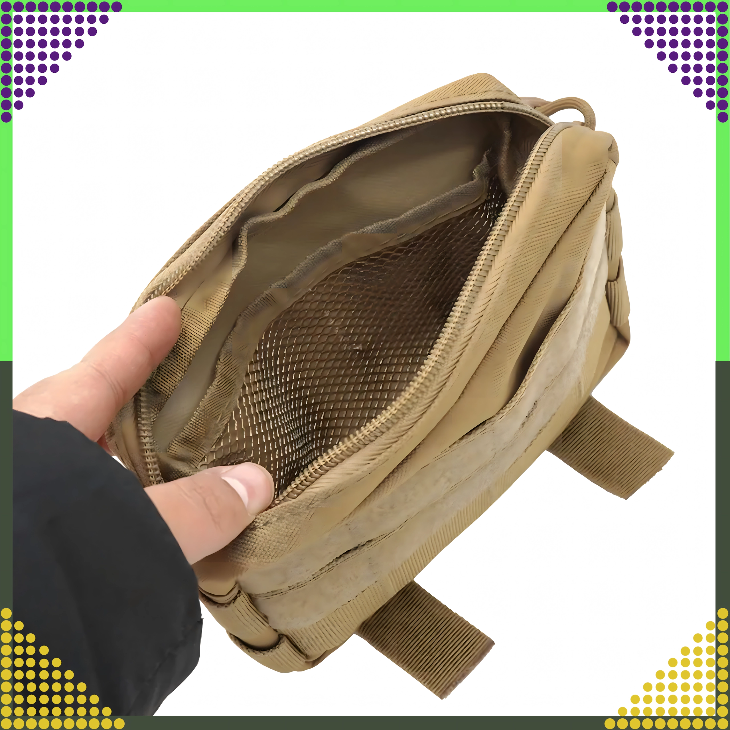 Kompaktná taktická kapsa z odolného nylonu 600D s vodoodolnou úpravou, MOLLE kompatibilitou a organizérom z elastickej sieťoviny. Hlavný priestor uzatvára zips s paracord tiahlami pre rýchle a isté otváranie. Ideálne ako EDC puzdro, mini lekárnička alebo puzdro na náradie na vestu, batoh či opasok.