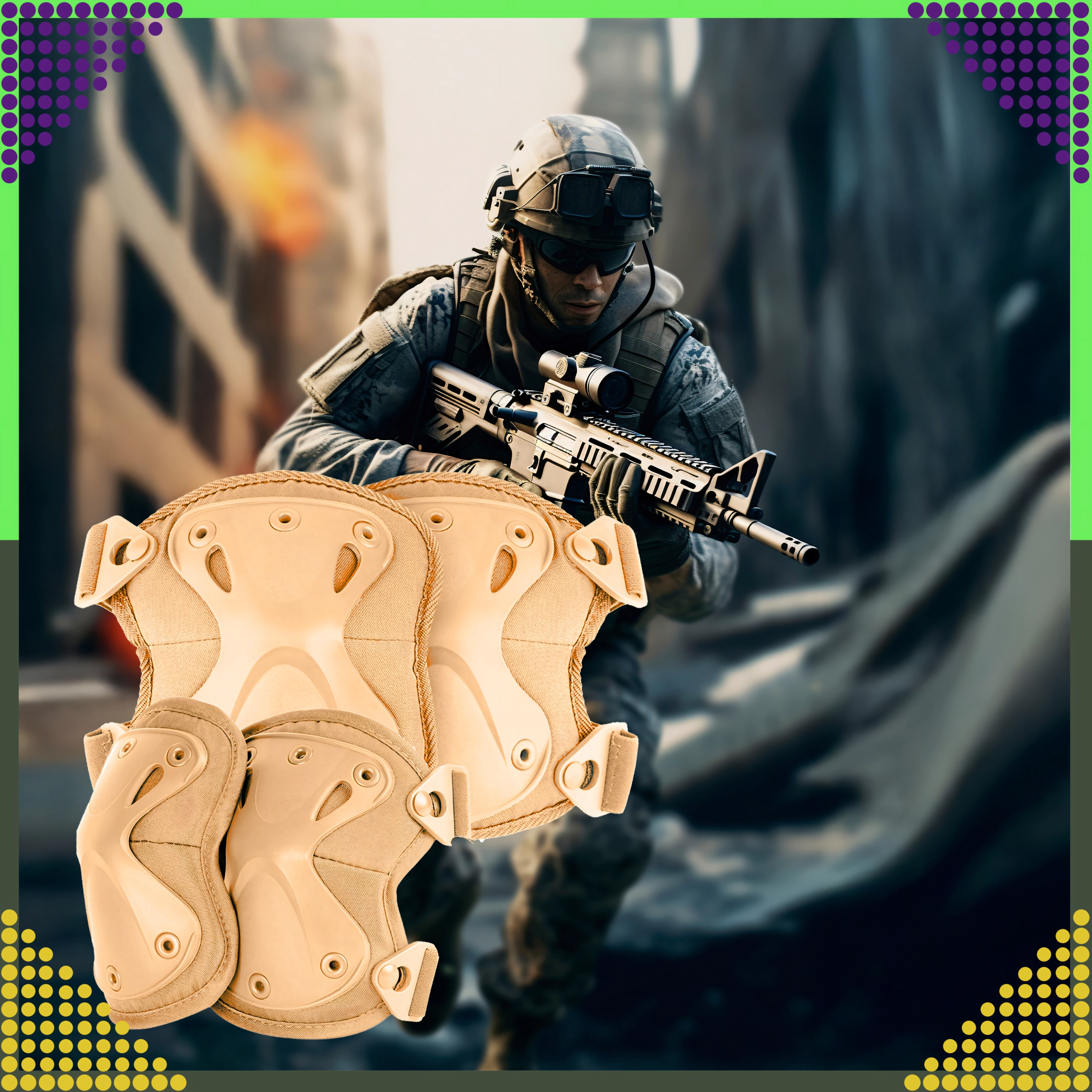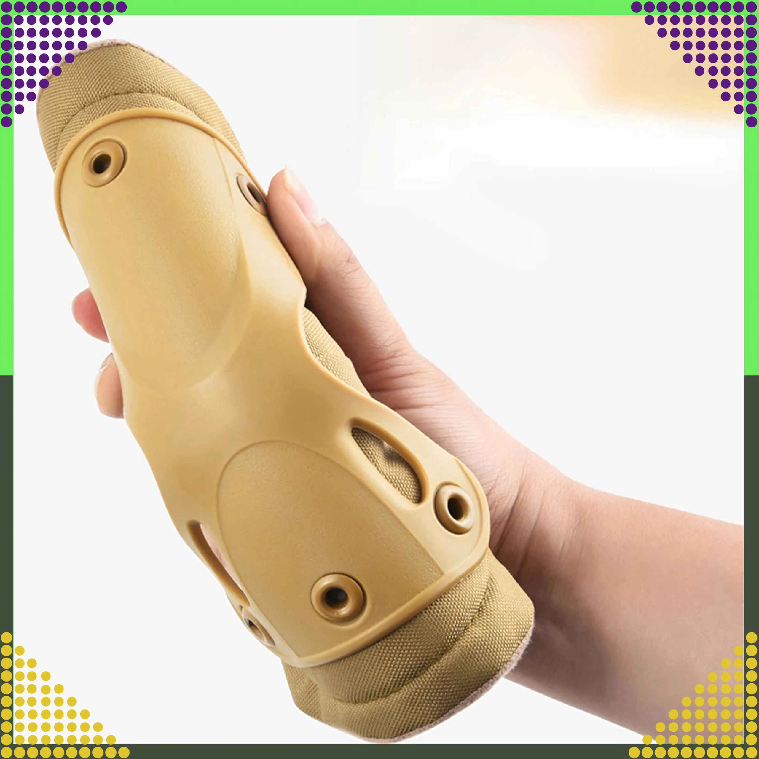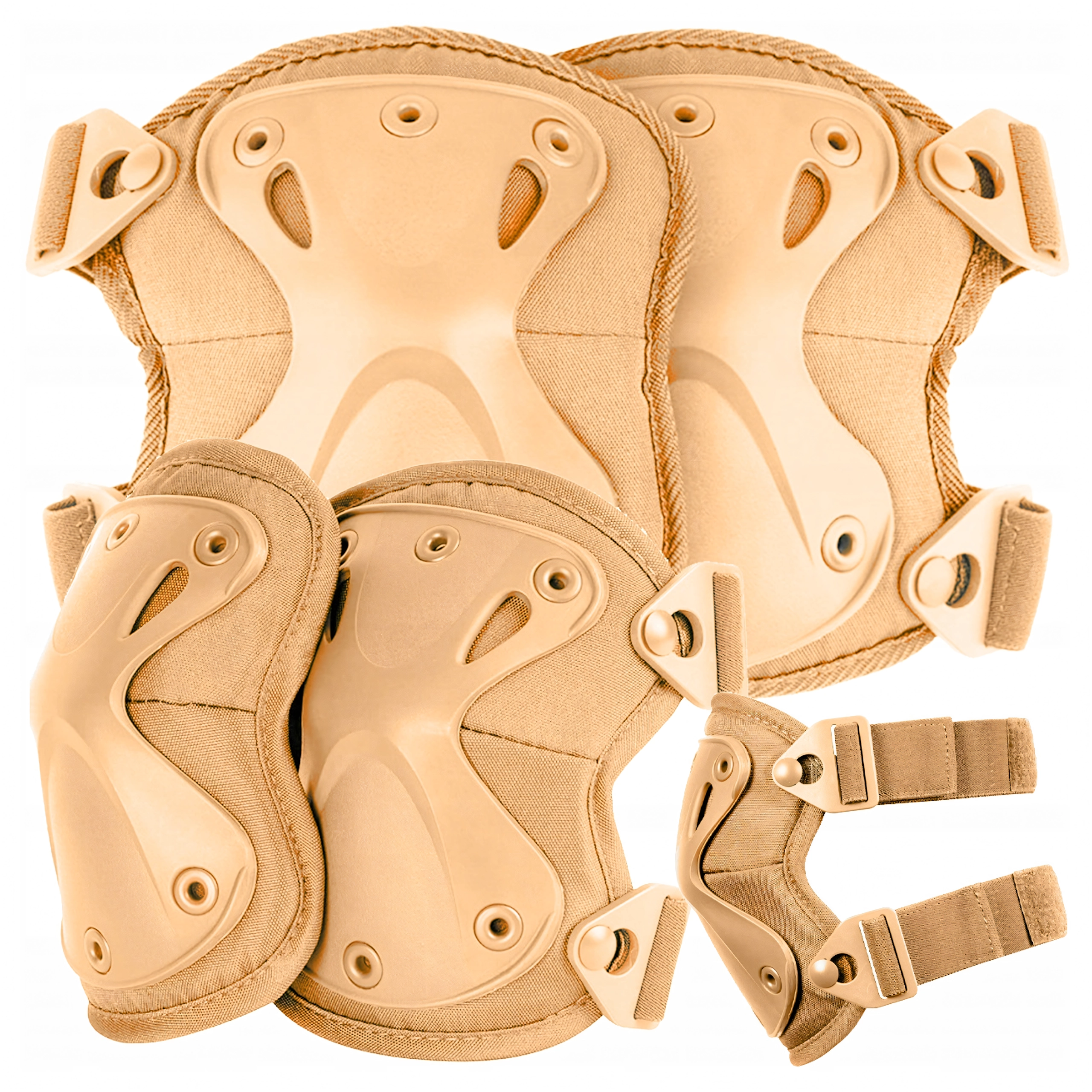 Súprava chráni kľúčové kĺby pri airsofte, paintballe, jazde na motorke či skateboarde. Odolná tkanina a nitované uchytenie zvyšujú životnosť.