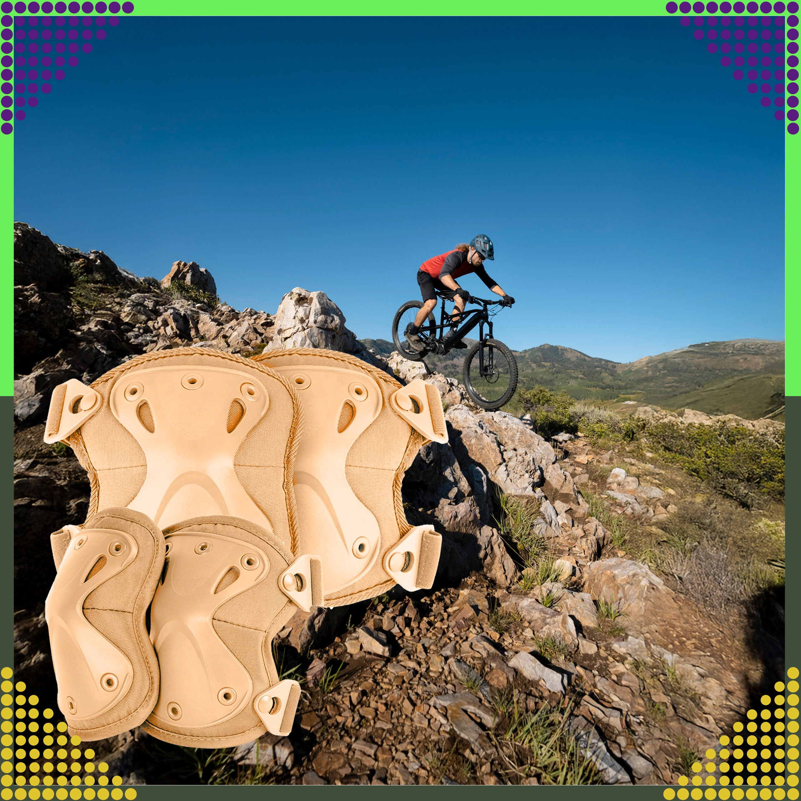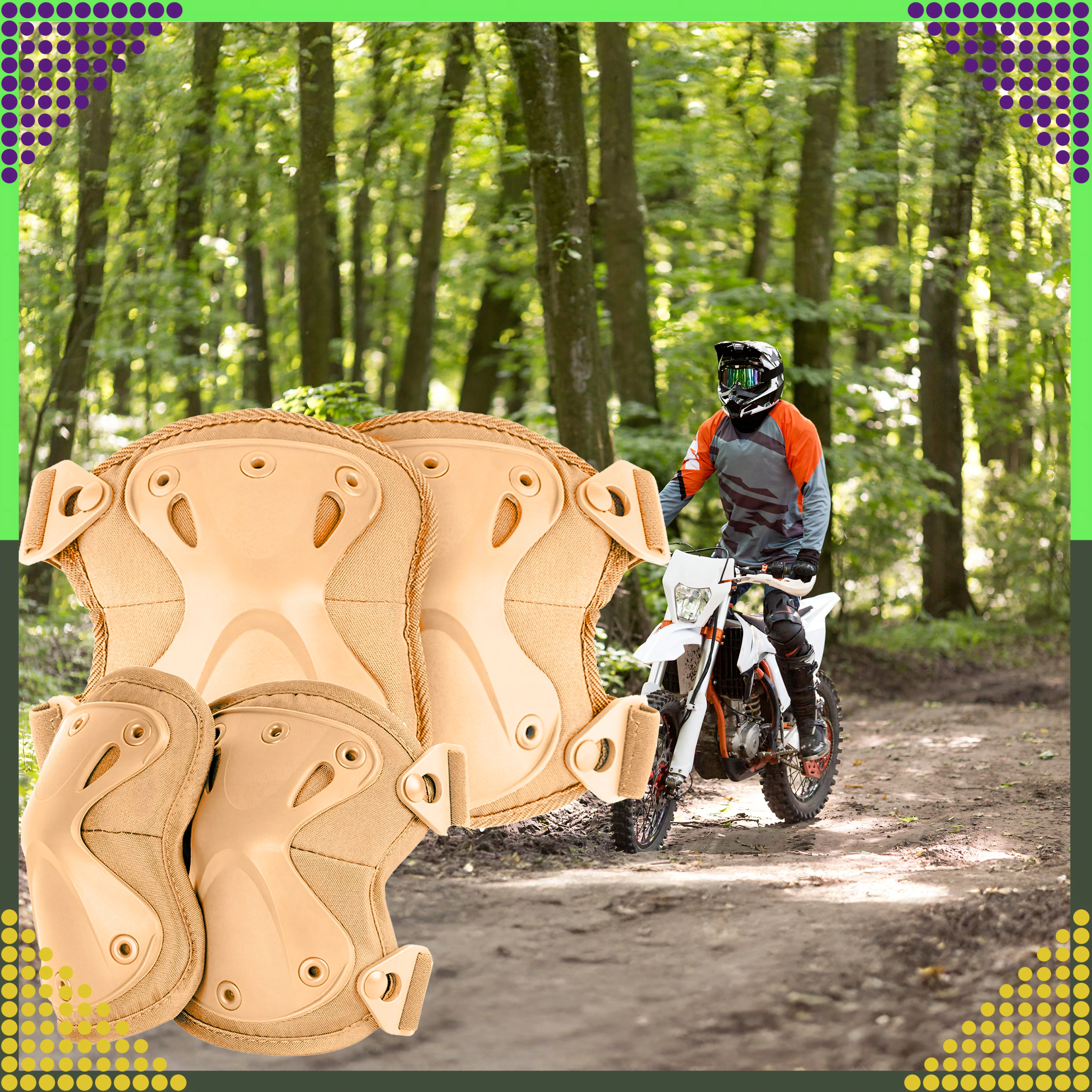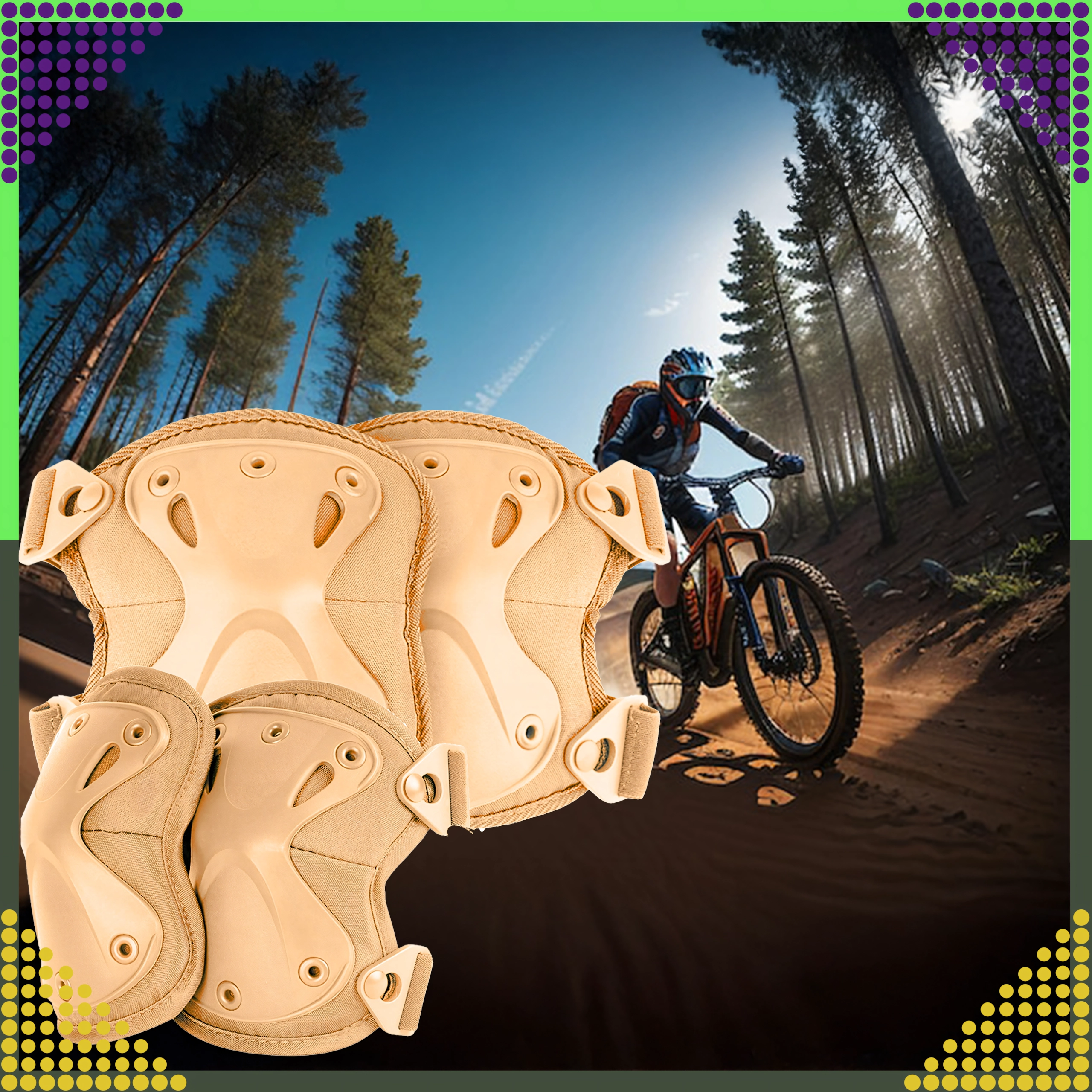 Súprava chráni kľúčové kĺby pri airsofte, paintballe, jazde na motorke či skateboarde. Odolná tkanina a nitované uchytenie zvyšujú životnosť.